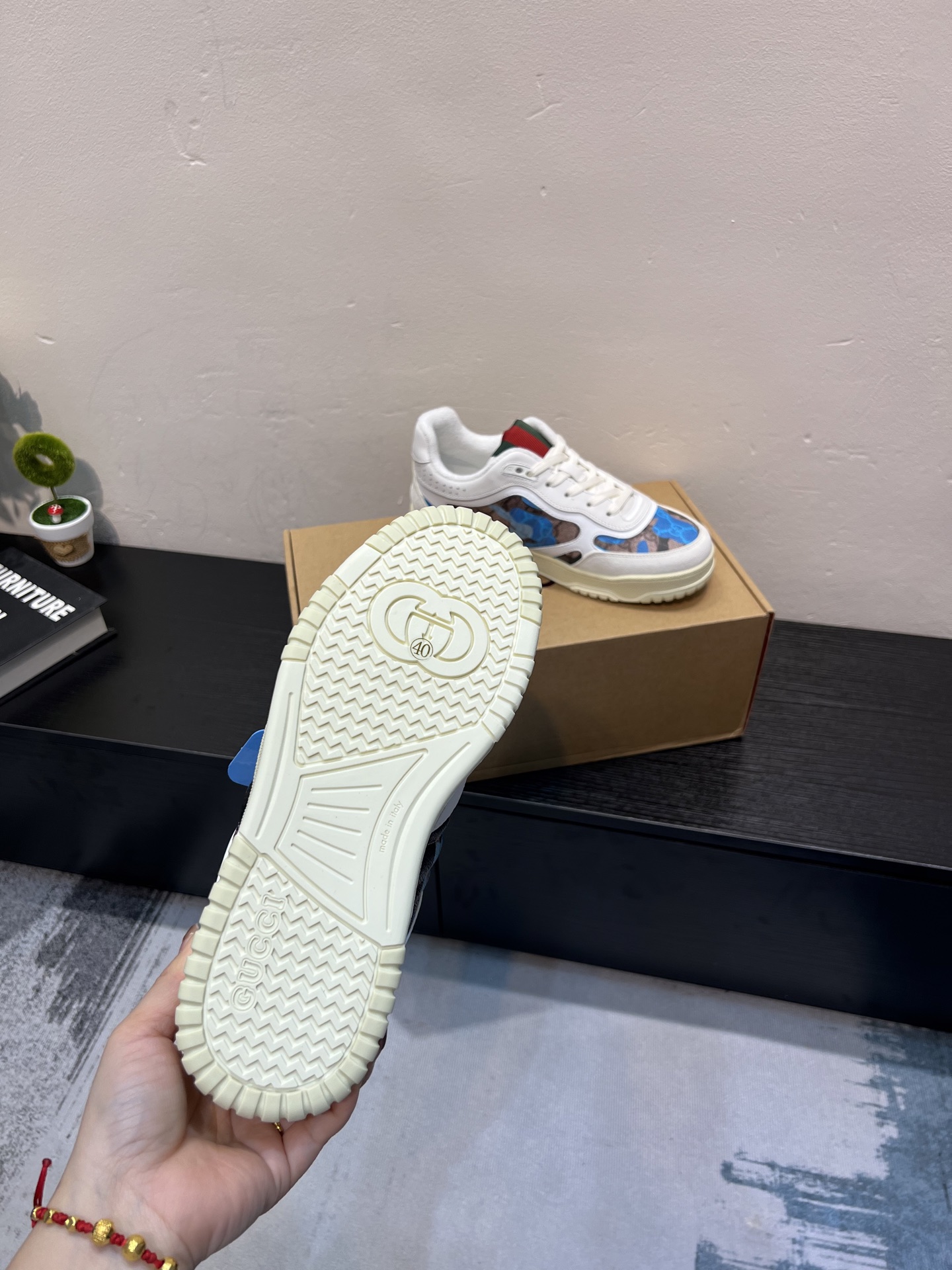 这款鞋子是AAAAA 1:1 质量 (非常棒). 使用了和原版一模一样的材料. 商标部分也保持了和古奇/Gucci一样. 图片拍摄是实物鞋子拍摄, 您所收到的实物保证和我们图片一模一样.