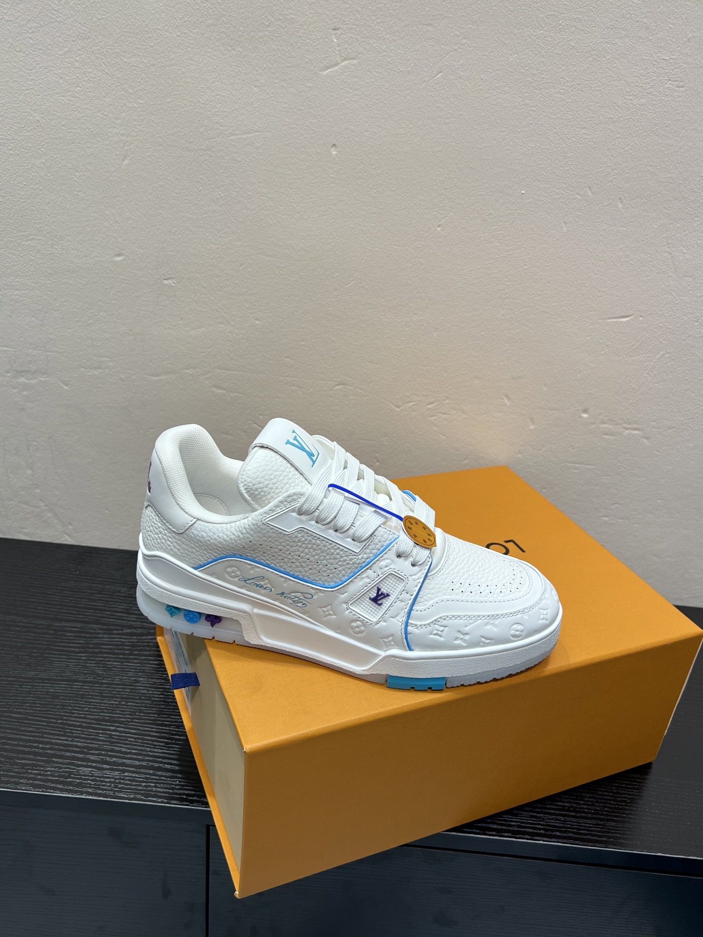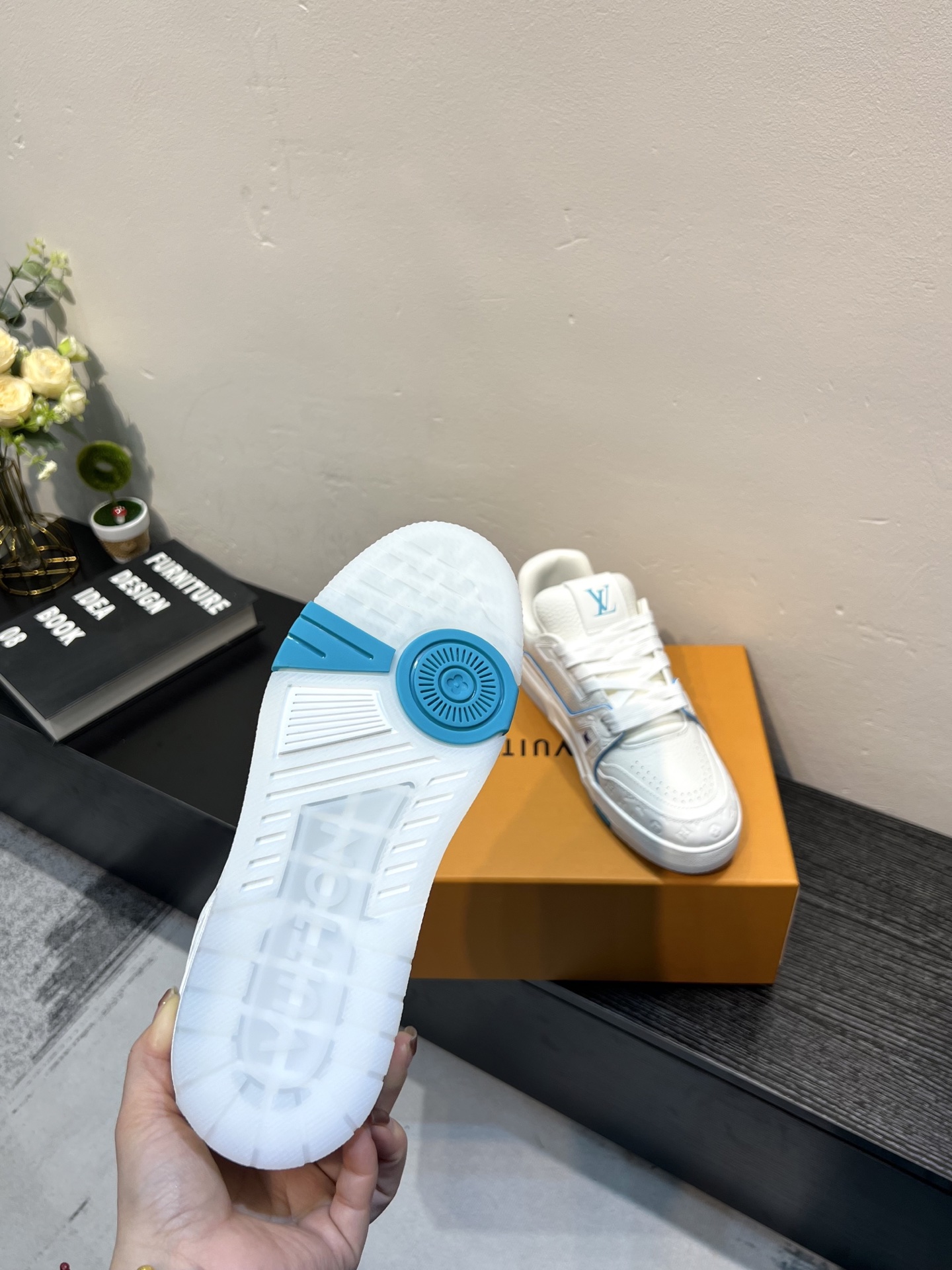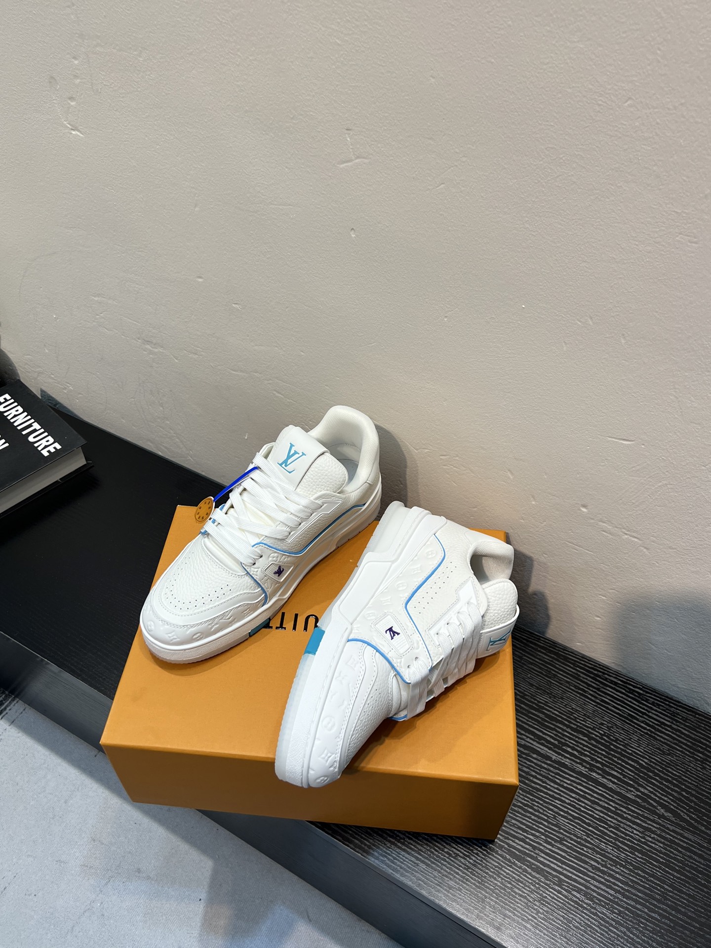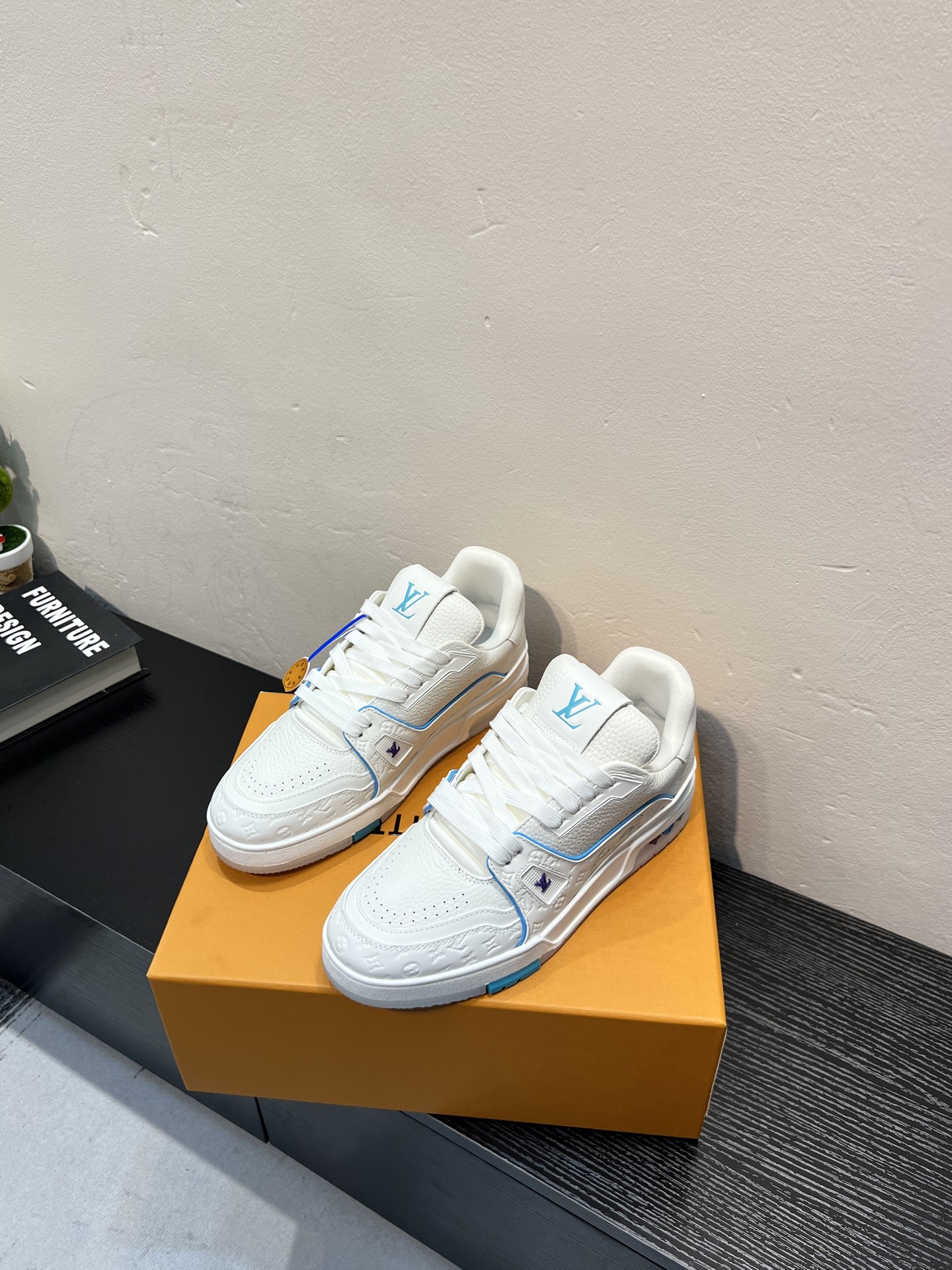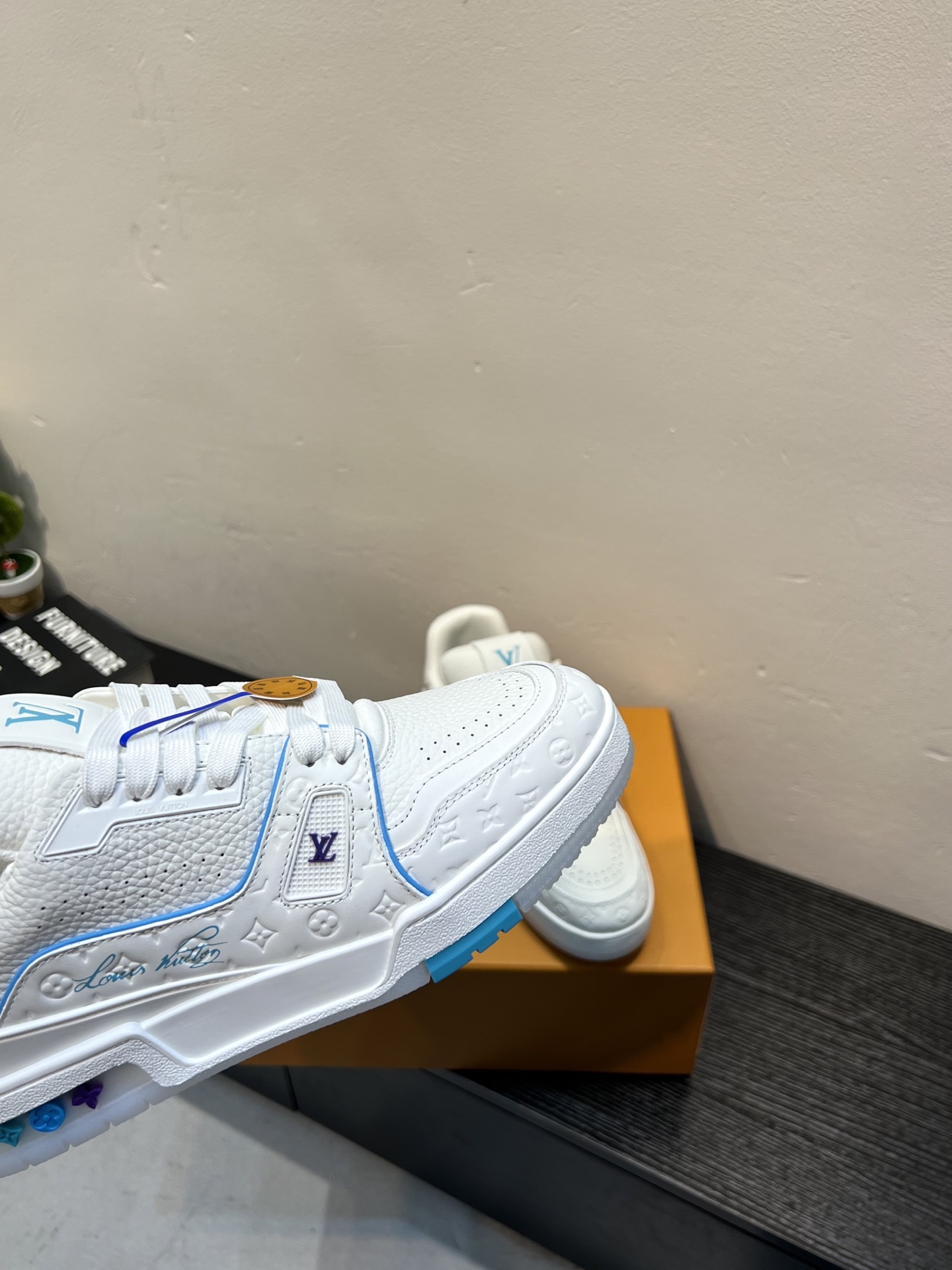 这款鞋子是AAAAA 1:1 质量 (非常棒). 使用了和原版一模一样的材料. 商标部分也保持了和路易威登/Louis Vuitton一样. 图片拍摄是实物鞋子拍摄, 您所收到的实物保证和我们图片一模一样.
