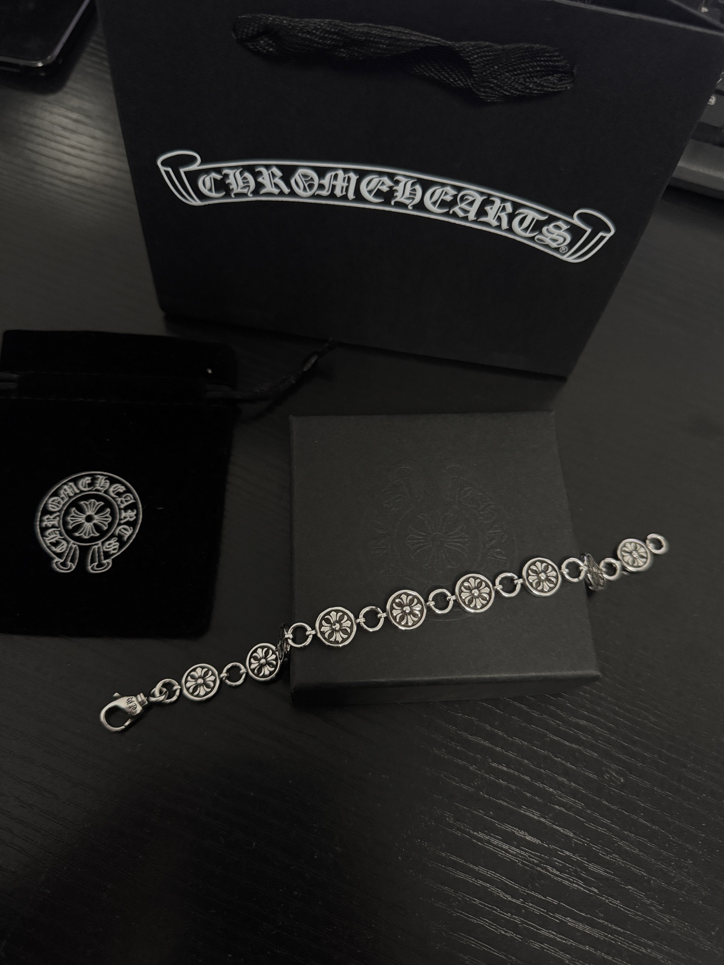 这款首饰是AAAAA 1:1 质量 (非常棒). 使用了和原版一模一样的材料. 商标部分也保持了和克罗心/Chrome Hearts一样. 图片拍摄是实物首饰拍摄, 您所收到的实物保证和我们图片一模一样.