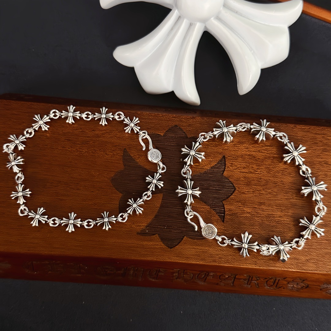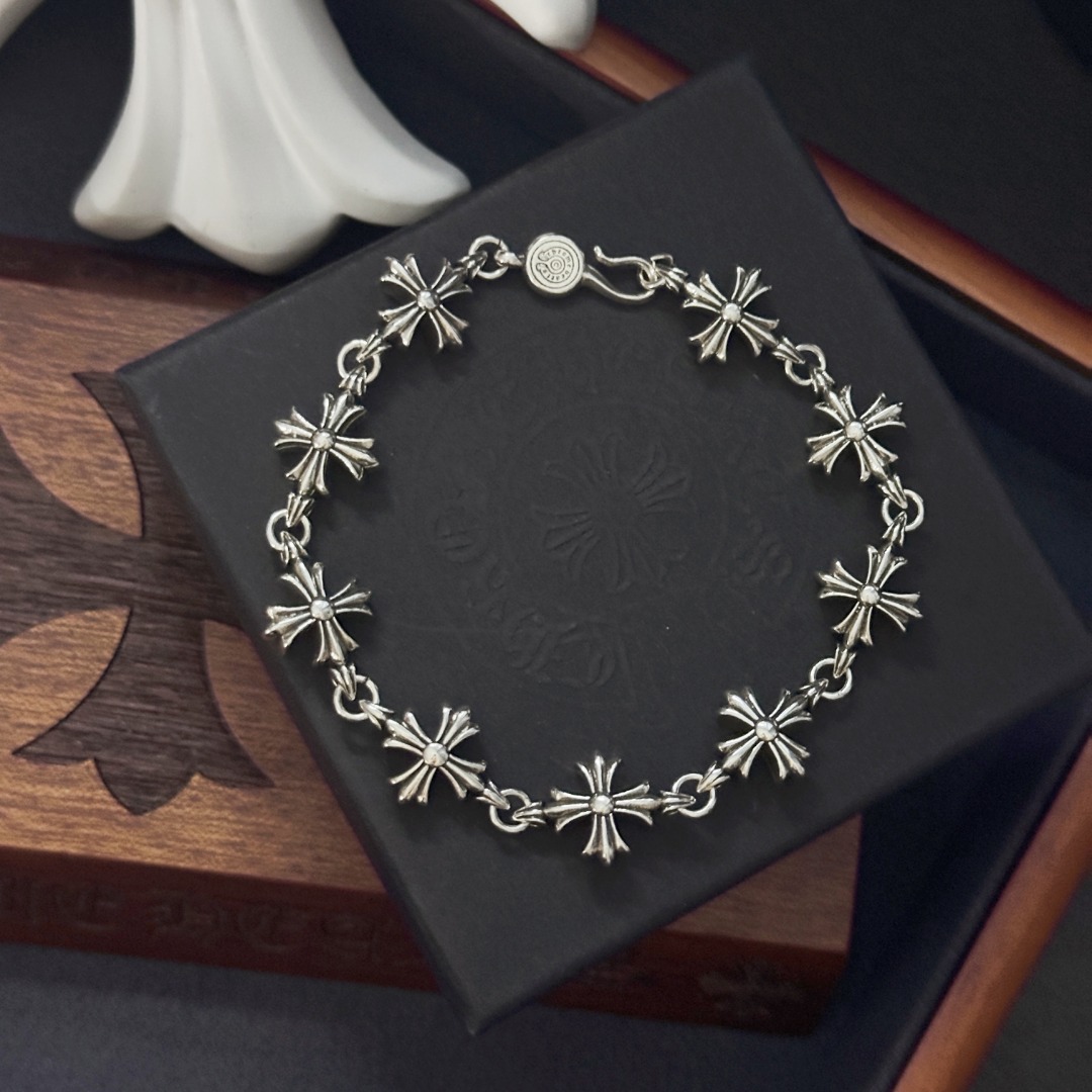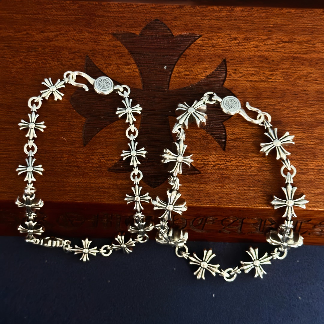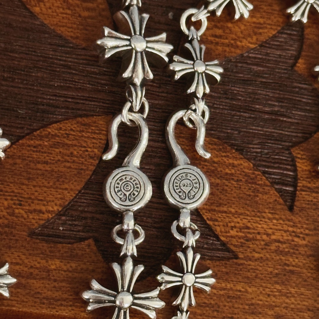 这款首饰是AAAAA 1:1 质量 (非常棒). 使用了和原版一模一样的材料. 商标部分也保持了和克罗心/Chrome Hearts一样. 图片拍摄是实物首饰拍摄, 您所收到的实物保证和我们图片一模一样.
