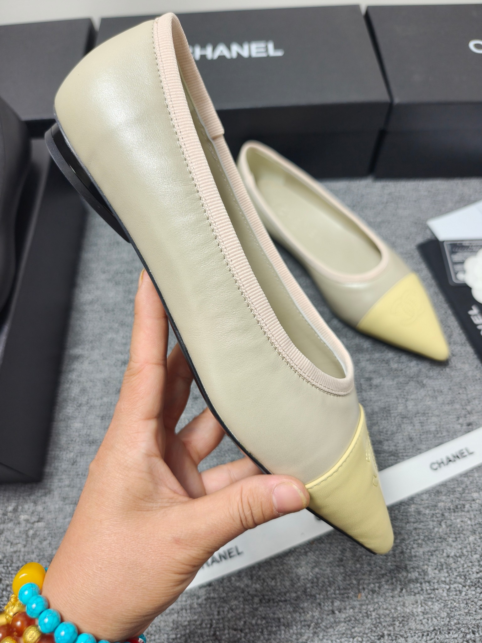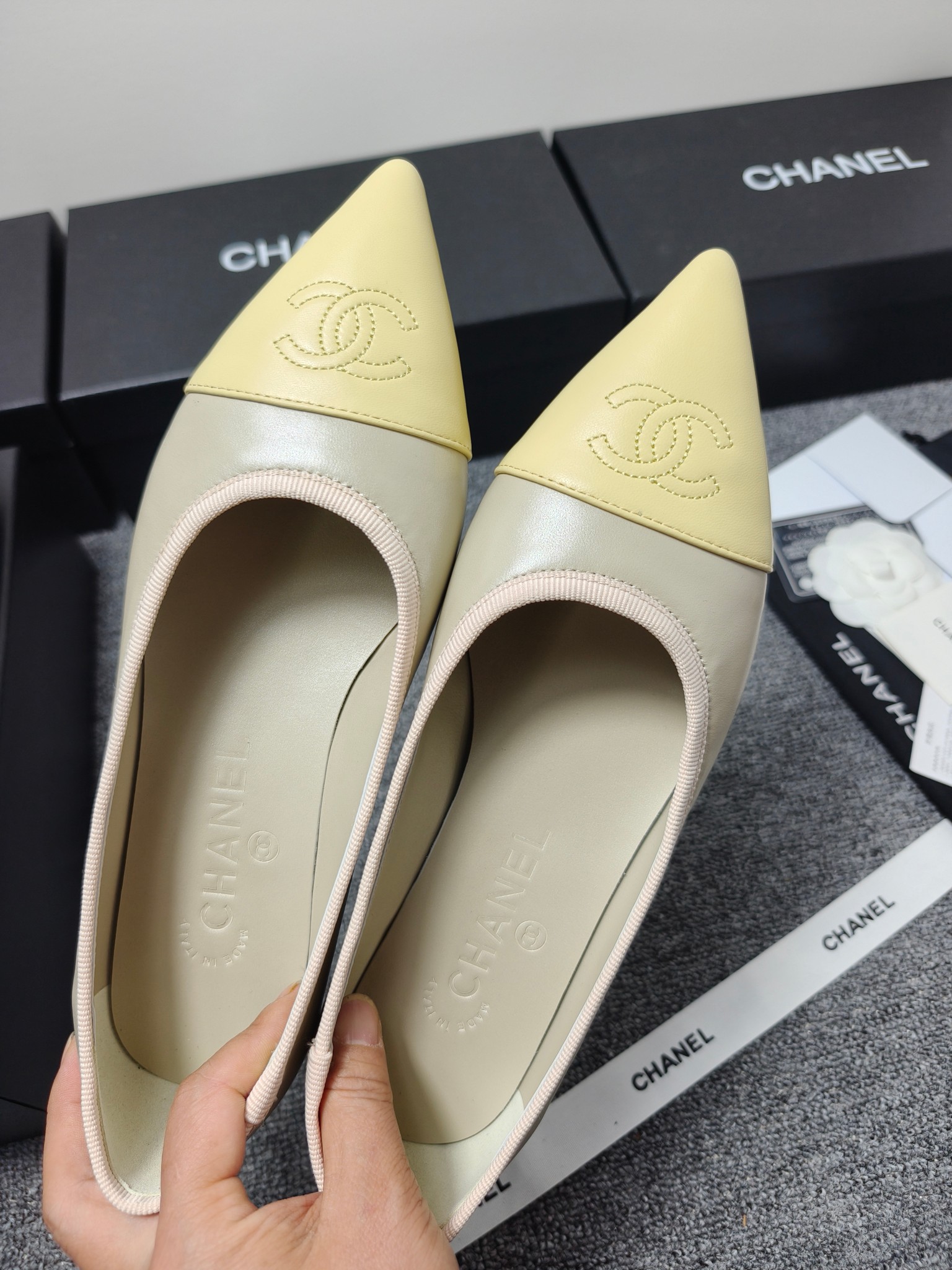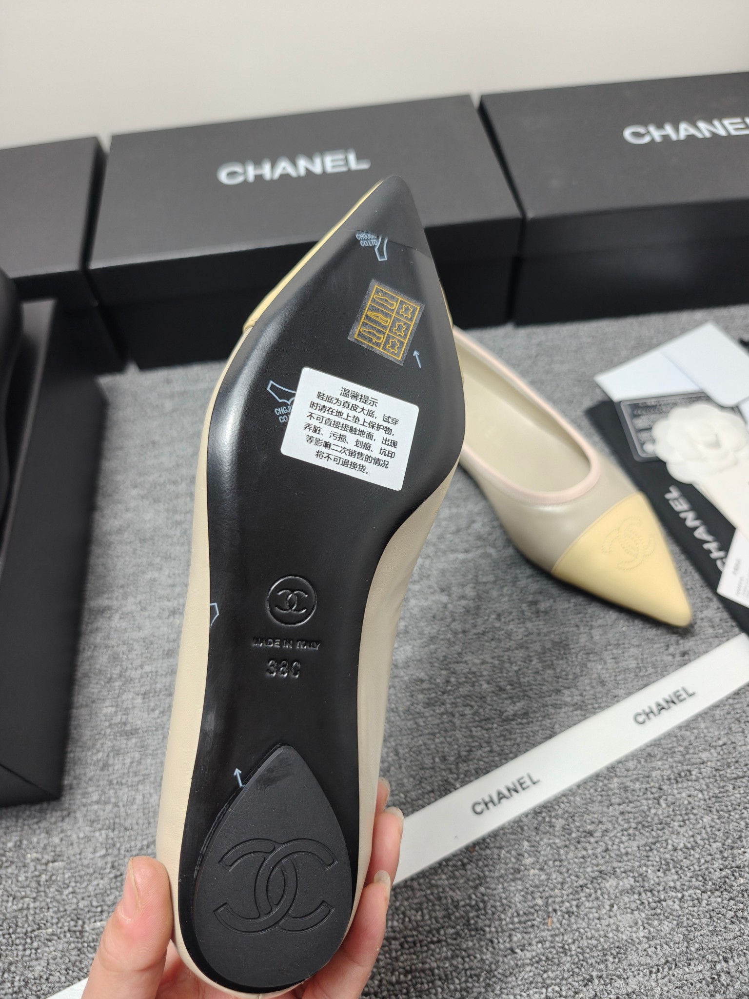 这款鞋子是AAAAA 1:1 质量 (非常棒). 使用了和原版一模一样的材料. 商标部分也保持了和香奈儿/Chanel一样. 图片拍摄是实物鞋子拍摄, 您所收到的实物保证和我们图片一模一样.