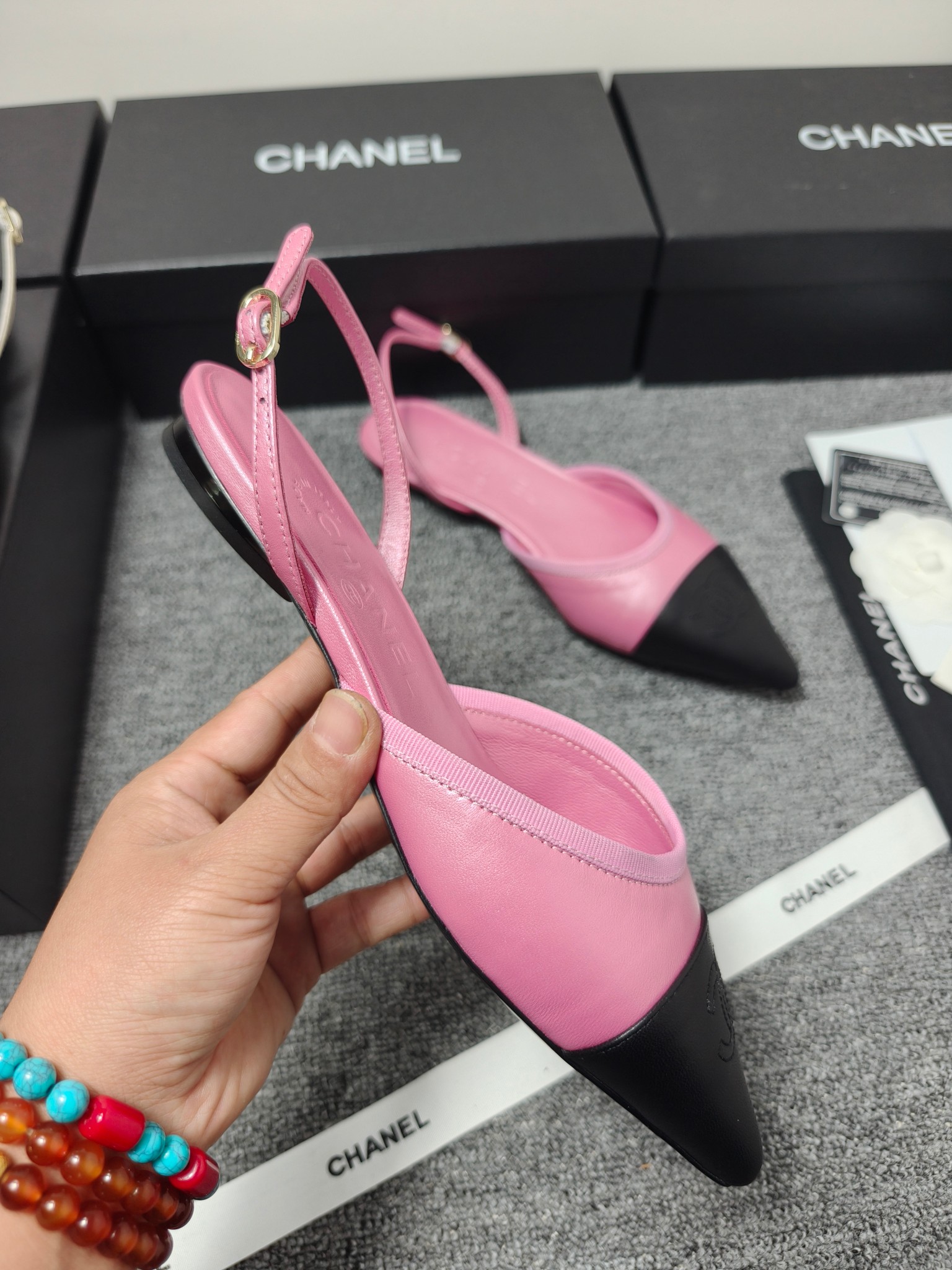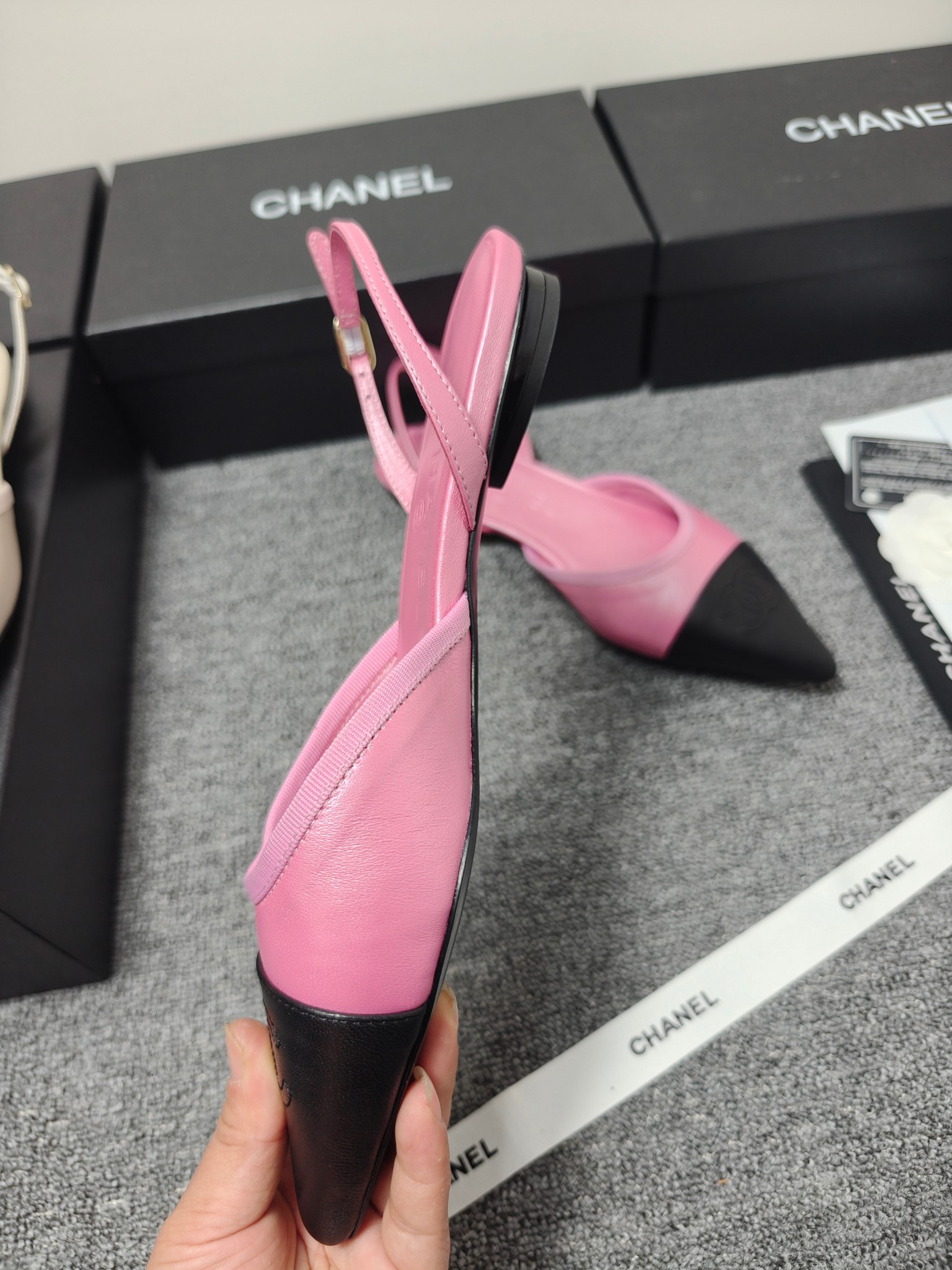 这款鞋子是AAAAA 1:1 质量 (非常棒). 使用了和原版一模一样的材料. 商标部分也保持了和香奈儿/Chanel一样. 图片拍摄是实物鞋子拍摄, 您所收到的实物保证和我们图片一模一样.
