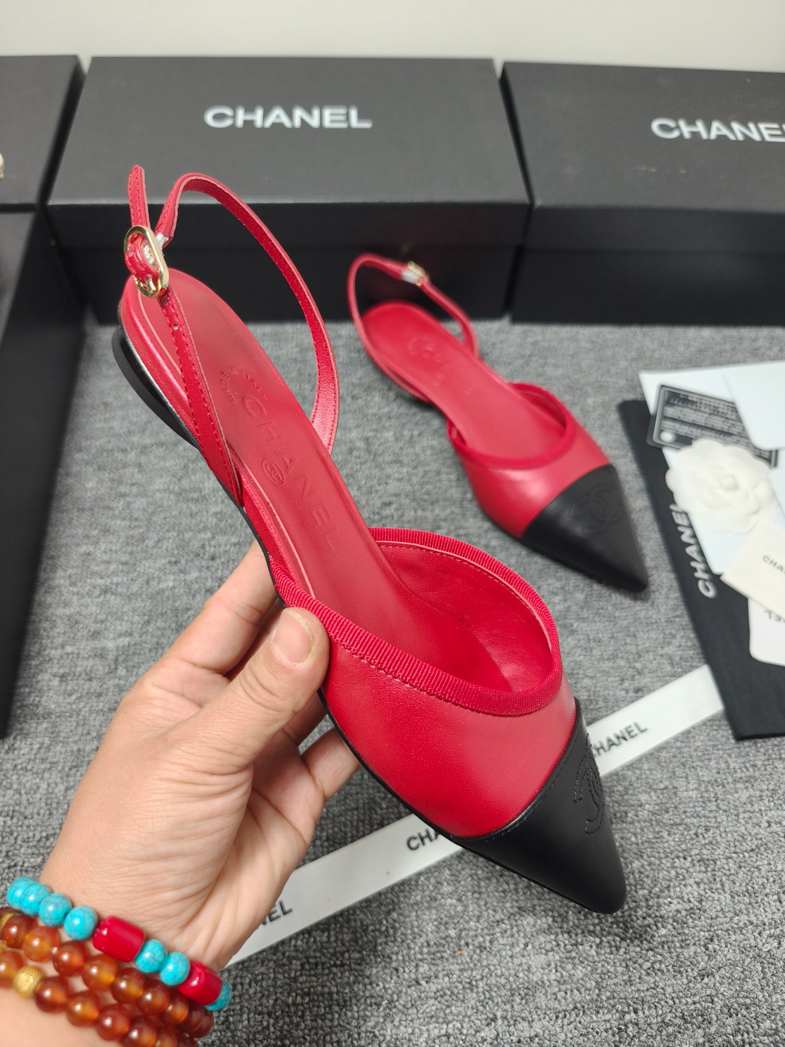 这款鞋子是AAAAA 1:1 质量 (非常棒). 使用了和原版一模一样的材料. 商标部分也保持了和香奈儿/Chanel一样. 图片拍摄是实物鞋子拍摄, 您所收到的实物保证和我们图片一模一样.