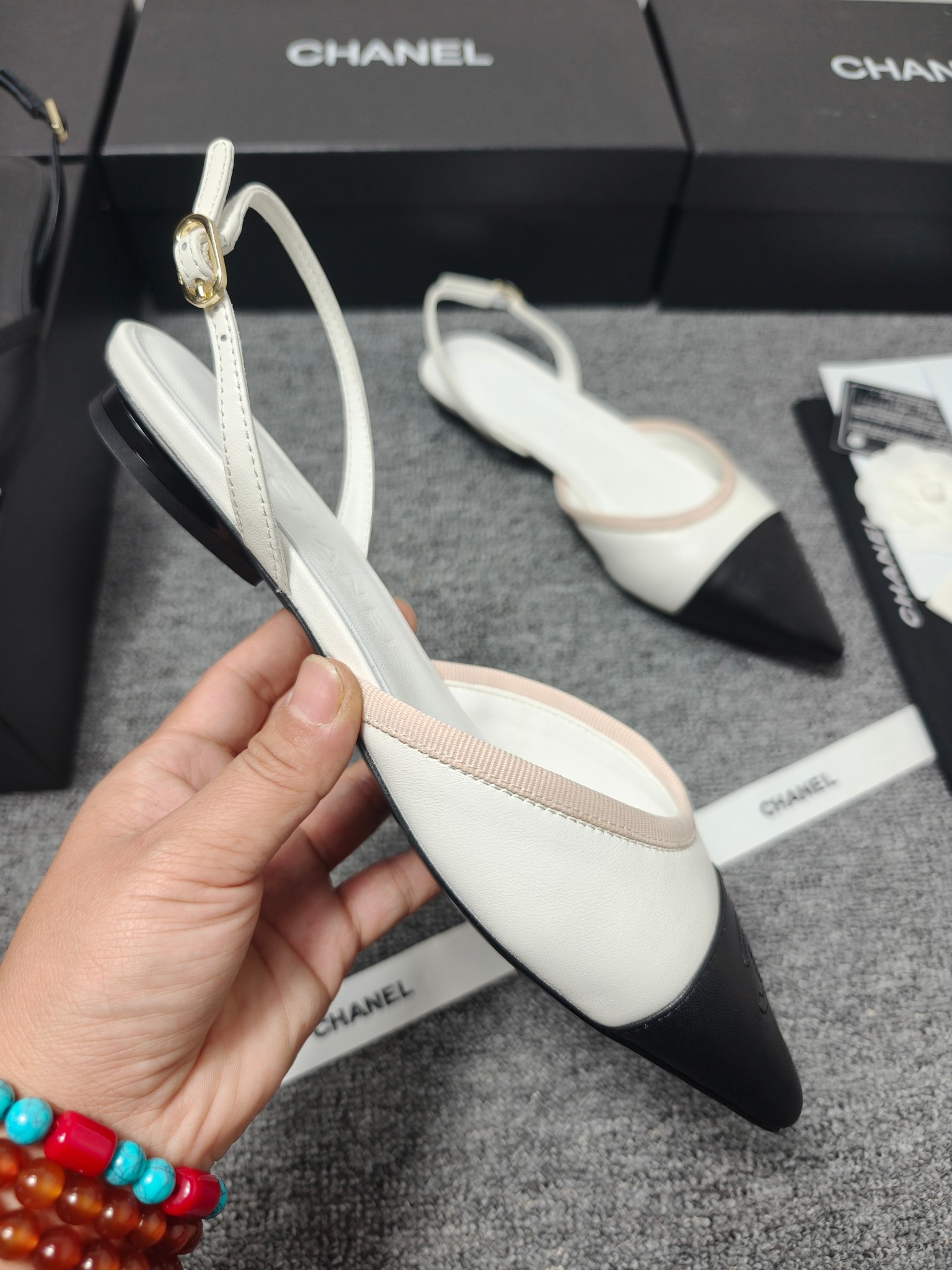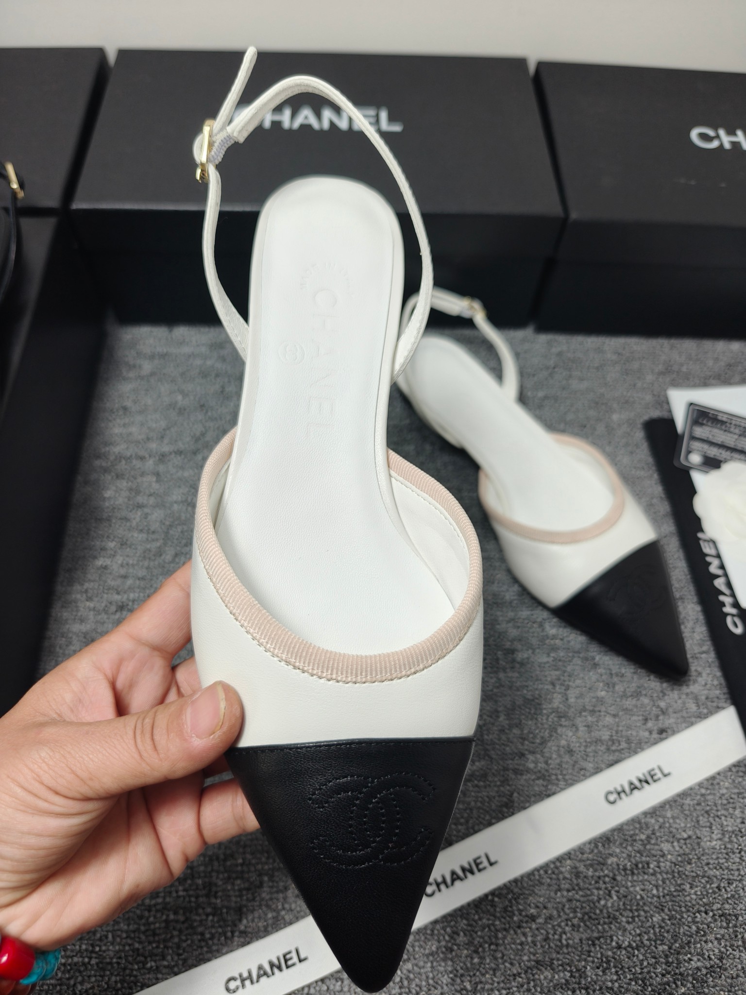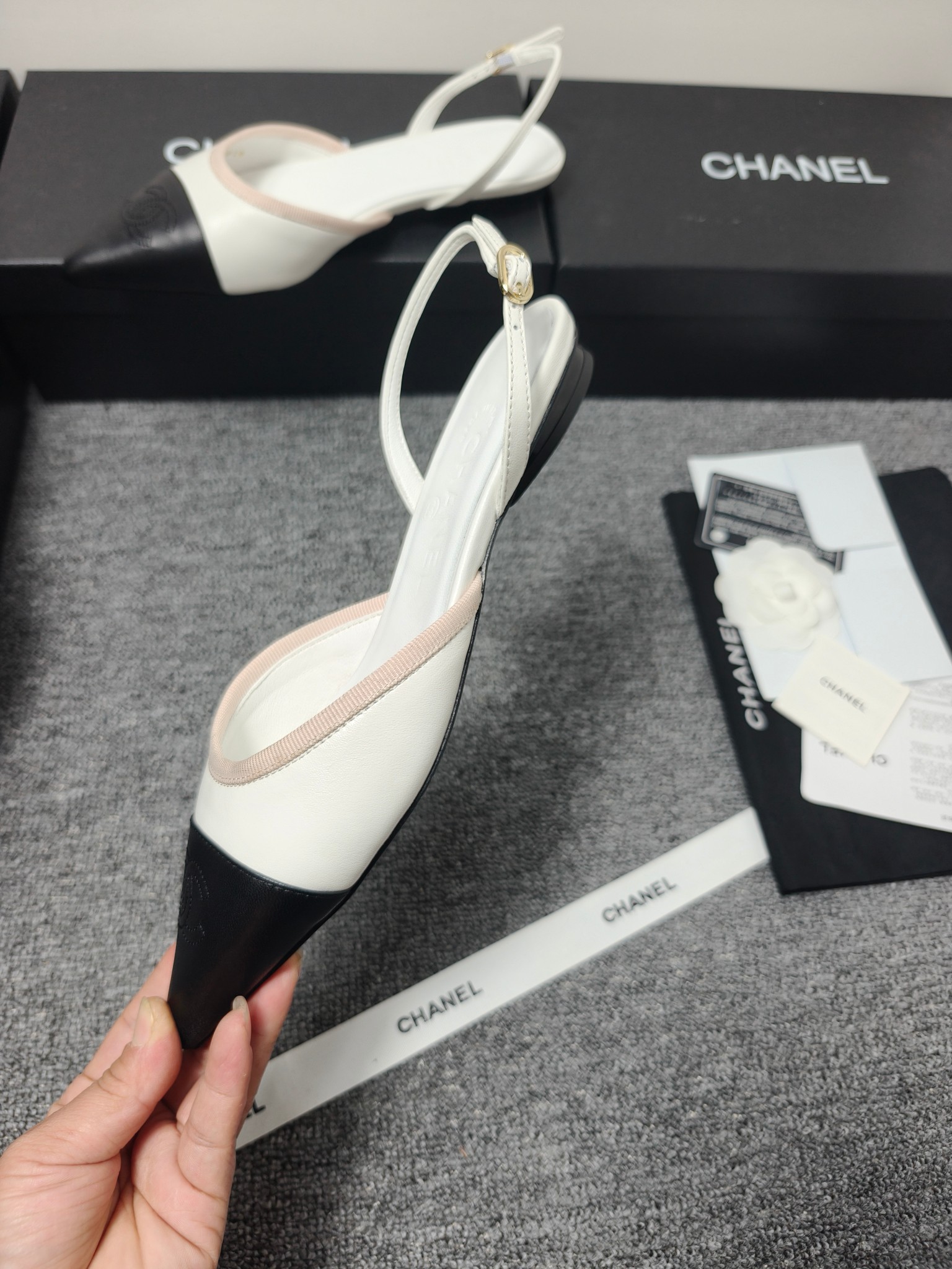 这款鞋子是AAAAA 1:1 质量 (非常棒). 使用了和原版一模一样的材料. 商标部分也保持了和香奈儿/Chanel一样. 图片拍摄是实物鞋子拍摄, 您所收到的实物保证和我们图片一模一样.