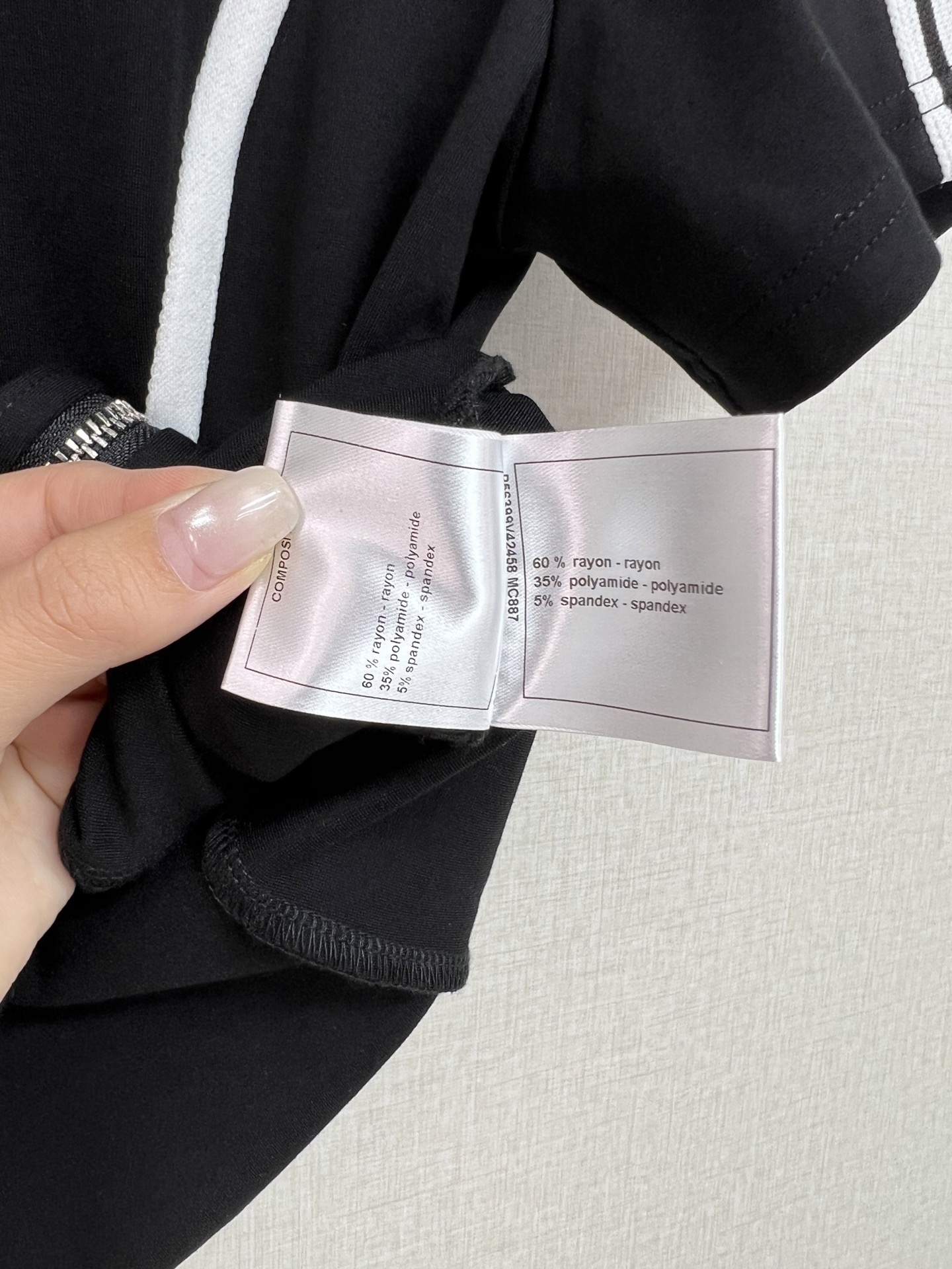 这款衣服是AAAAA 1:1 质量 (非常棒). 使用了和原版一模一样的材料. 商标部分也保持了和香奈儿/Chanel一样. 图片拍摄是实物衣服拍摄, 您所收到的实物保证和我们图片一模一样.