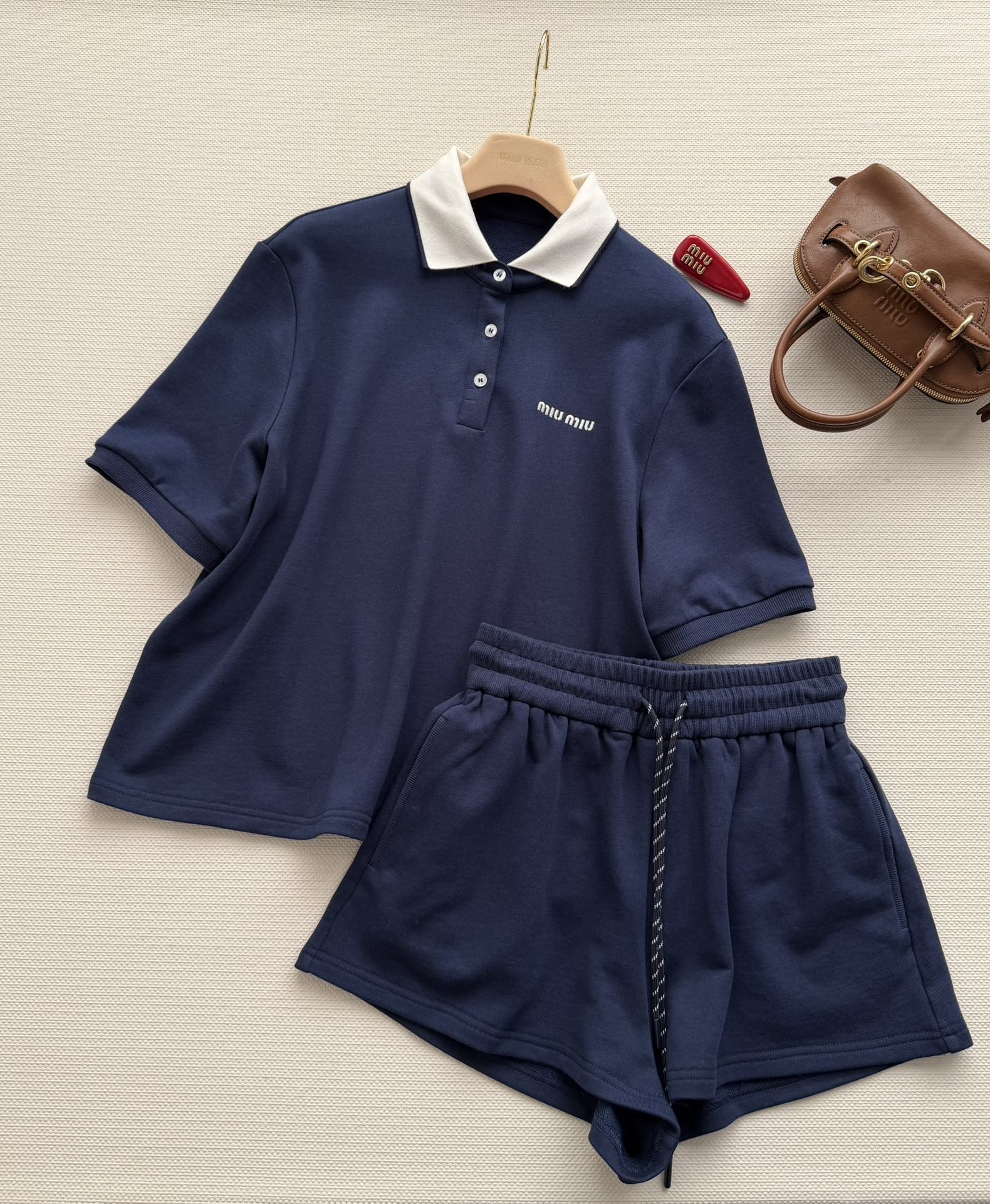 这款衣服是AAAAA 1:1 质量 (非常棒). 使用了和原版一模一样的材料. 商标部分也保持了和缪缪/Miu Miu一样. 图片拍摄是实物衣服拍摄, 您所收到的实物保证和我们图片一模一样.