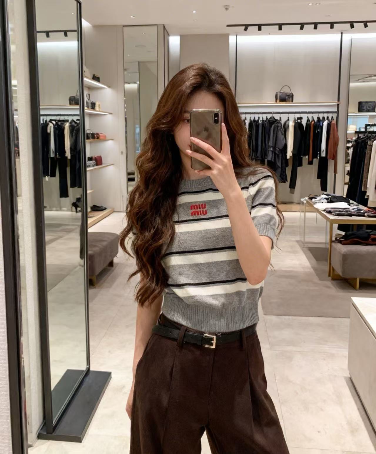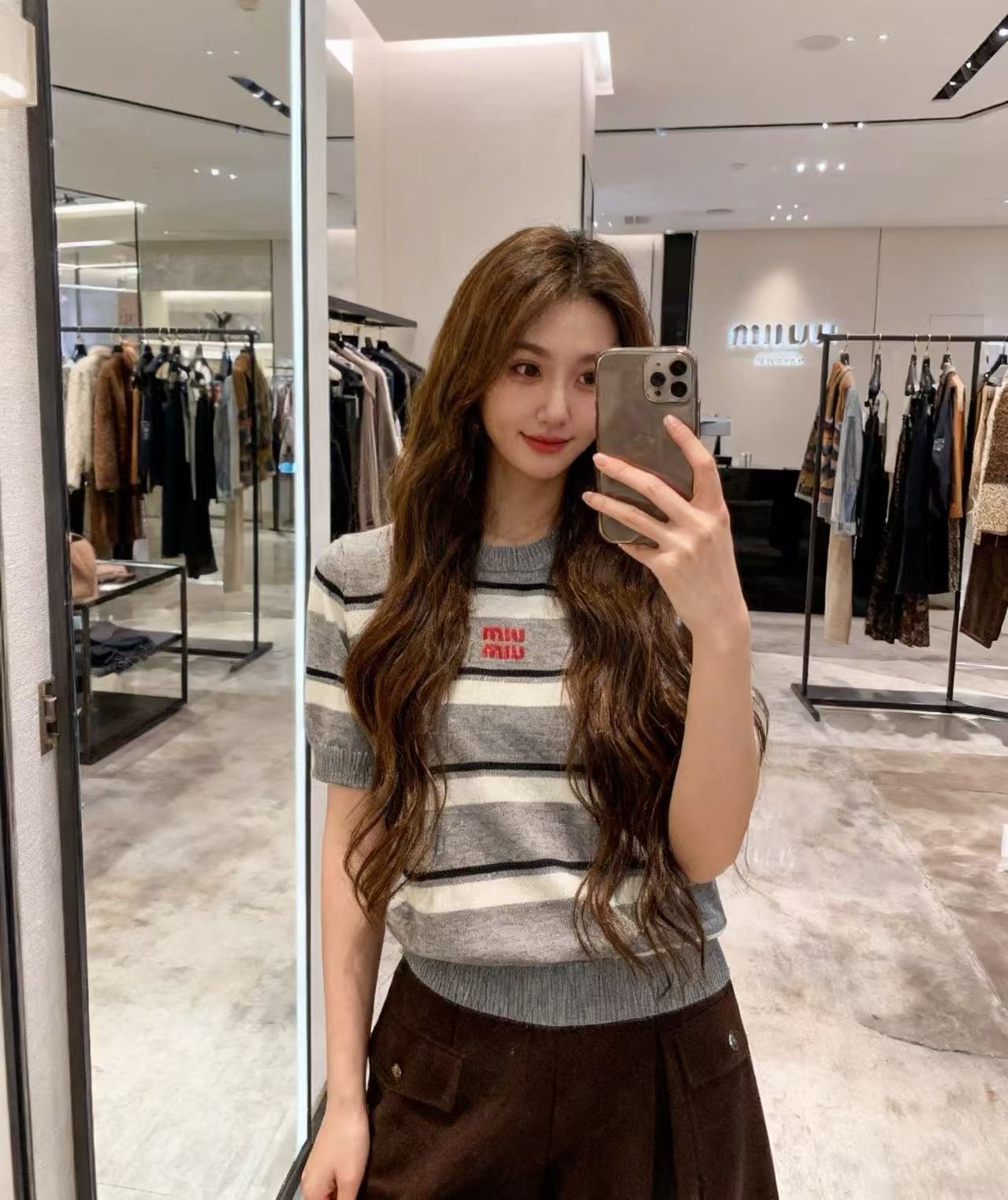 这款衣服是AAAAA 1:1 质量 (非常棒). 使用了和原版一模一样的材料. 商标部分也保持了和缪缪/Miu Miu一样. 图片拍摄是实物衣服拍摄, 您所收到的实物保证和我们图片一模一样.