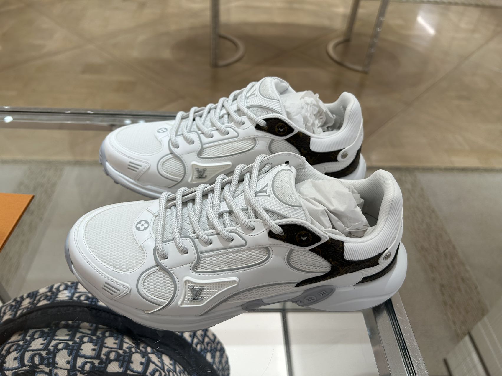 这款鞋子是AAAAA 1:1 质量 (非常棒). 使用了和原版一模一样的材料. 商标部分也保持了和路易威登/Louis Vuitton一样. 图片拍摄是实物鞋子拍摄, 您所收到的实物保证和我们图片一模一样.