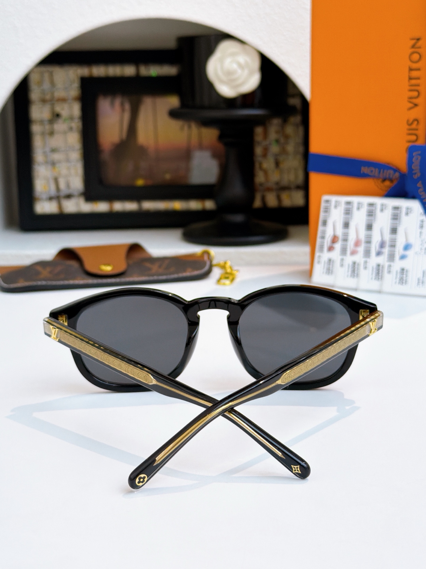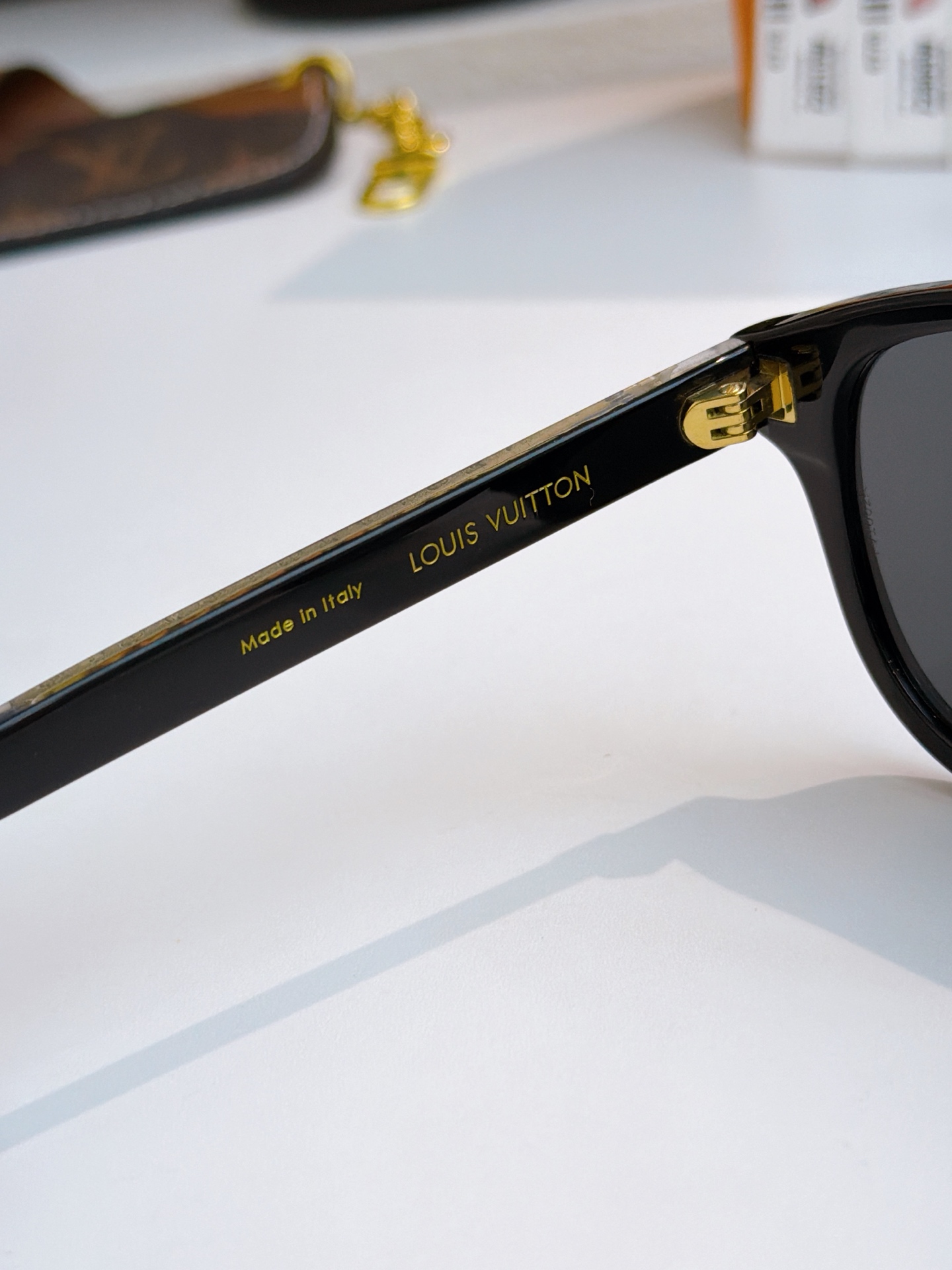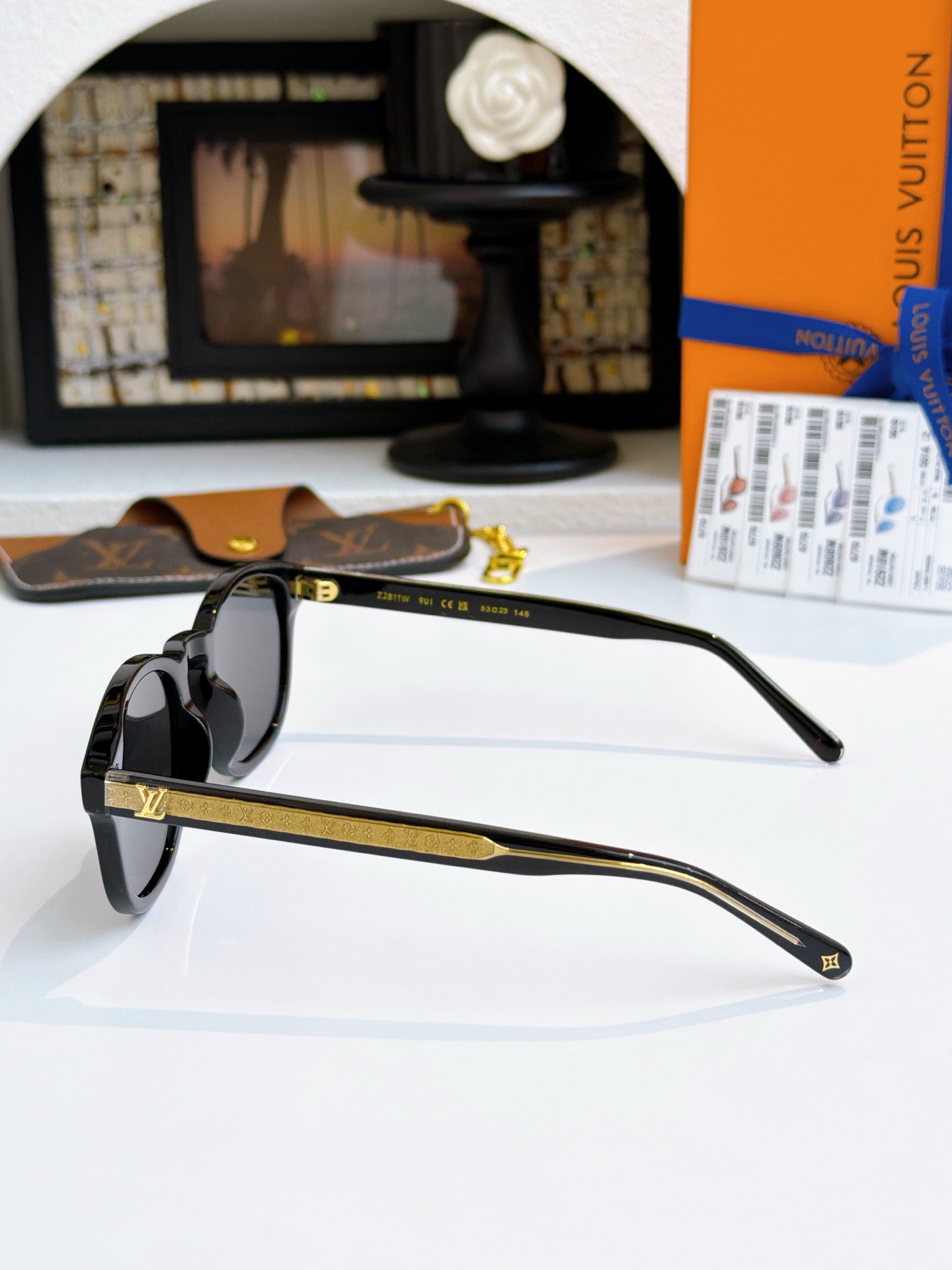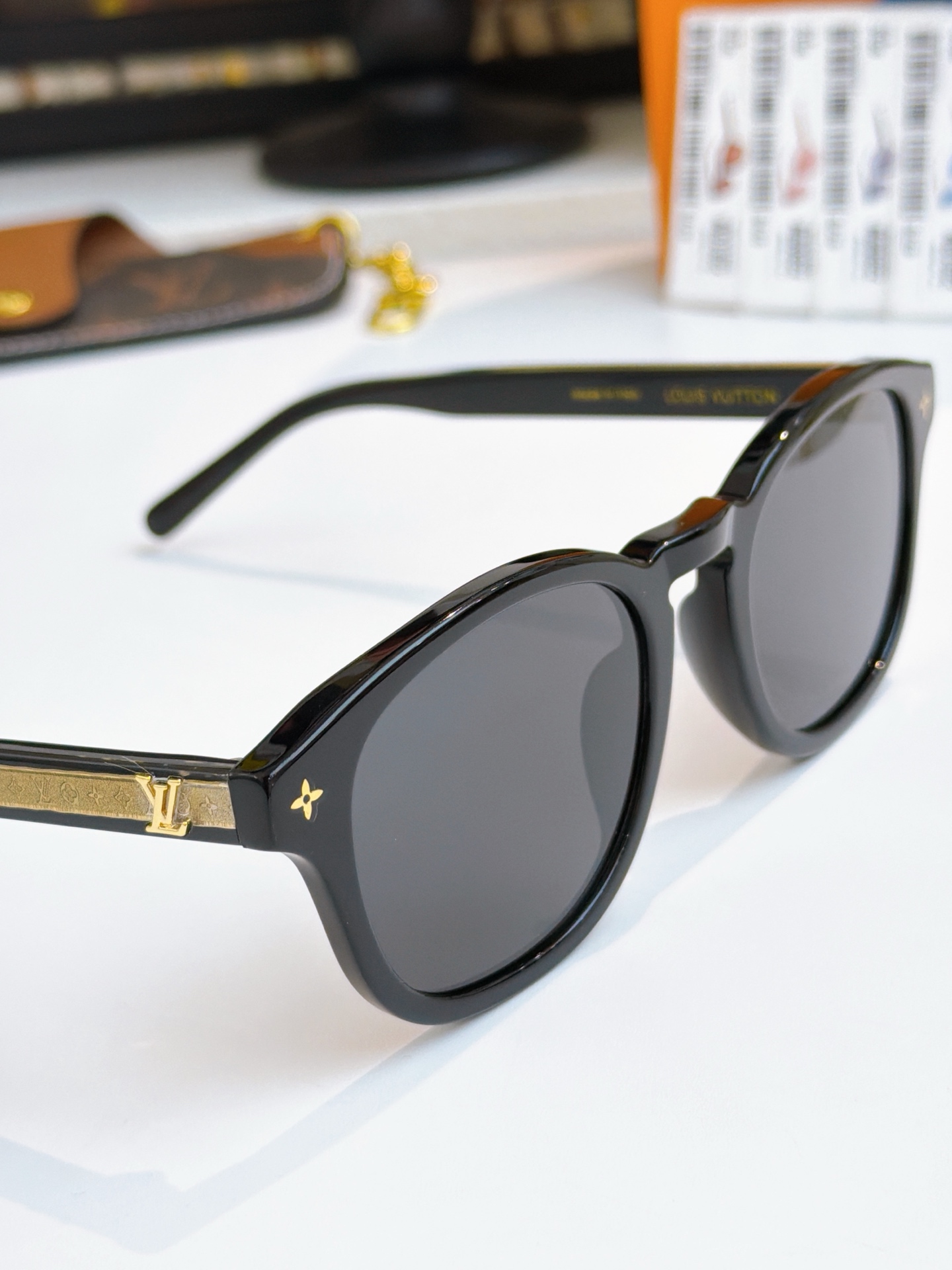 这款太阳眼镜是AAAAA 1:1 质量 (非常棒). 使用了和原版一模一样的材料. 商标部分也保持了和路易威登/Louis Vuitton一样. 图片拍摄是实物太阳眼镜拍摄, 您所收到的实物保证和我们图片一模一样.