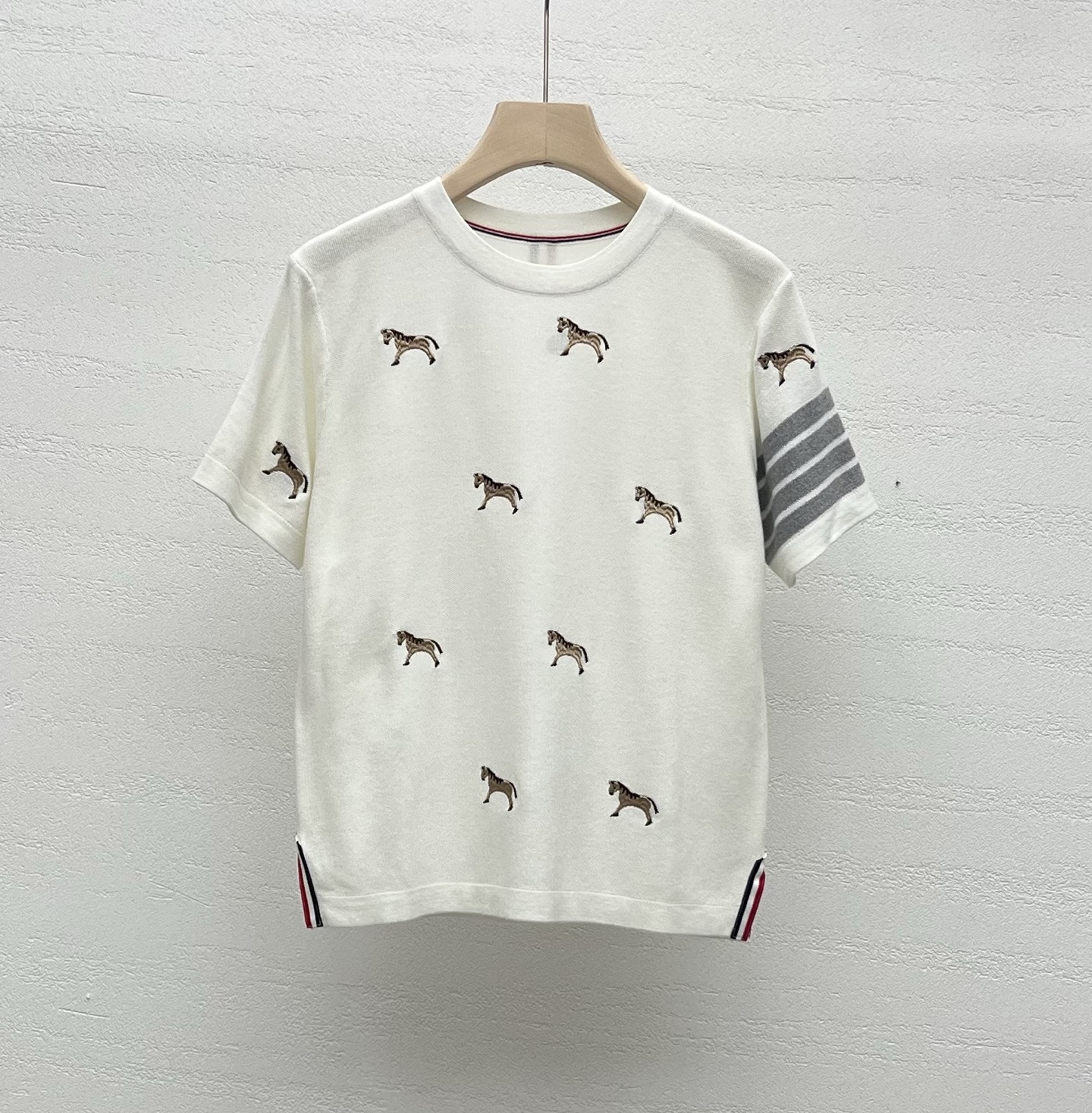 这款衣服是AAAAA 1:1 质量 (非常棒). 使用了和原版一模一样的材料. 商标部分也保持了和汤姆布朗/Thom Browne一样. 图片拍摄是实物衣服拍摄, 您所收到的实物保证和我们图片一模一样.