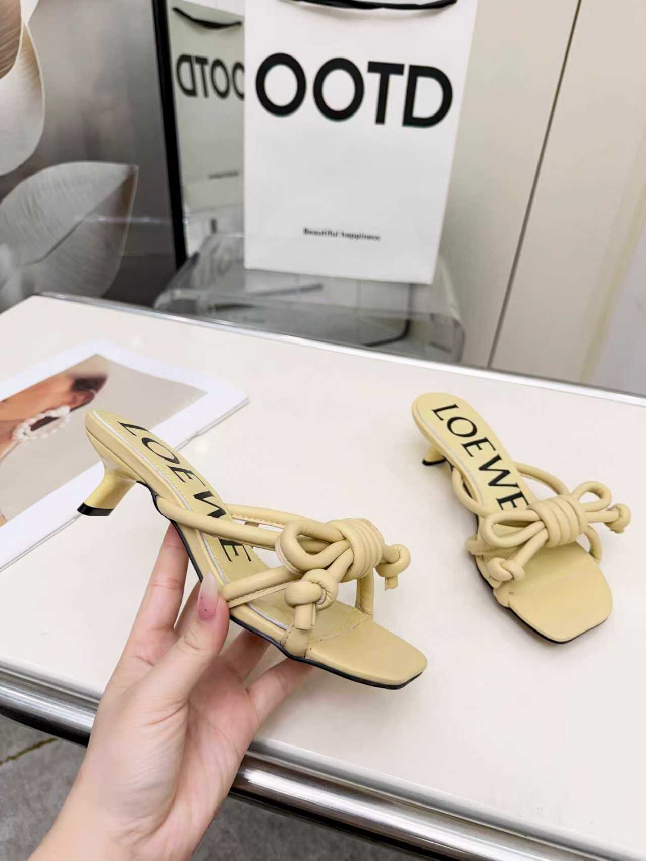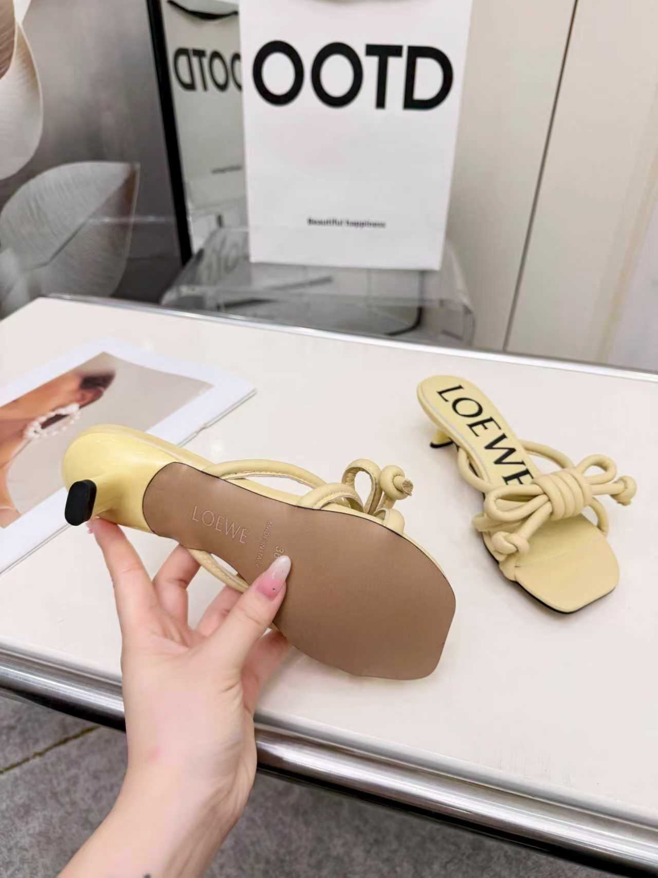 这款鞋子是AAAAA 1:1 质量 (非常棒). 使用了和原版一模一样的材料. 商标部分也保持了和罗意威/Loewe一样. 图片拍摄是实物鞋子拍摄, 您所收到的实物保证和我们图片一模一样.