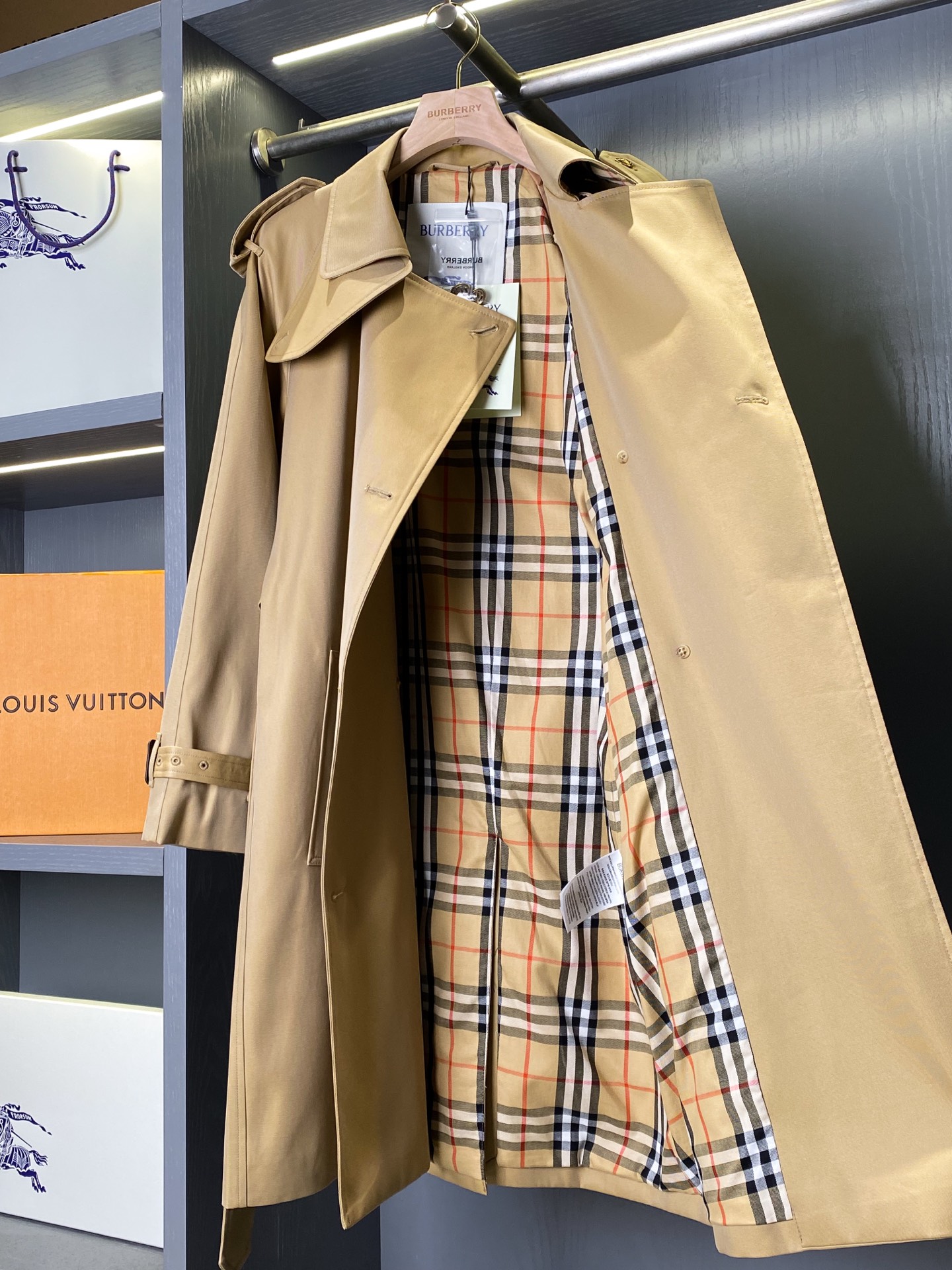 这款衣服是AAAAA 1:1 质量 (非常棒). 使用了和原版一模一样的材料. 商标部分也保持了和巴宝莉/Burberry一样. 图片拍摄是实物衣服拍摄, 您所收到的实物保证和我们图片一模一样.
