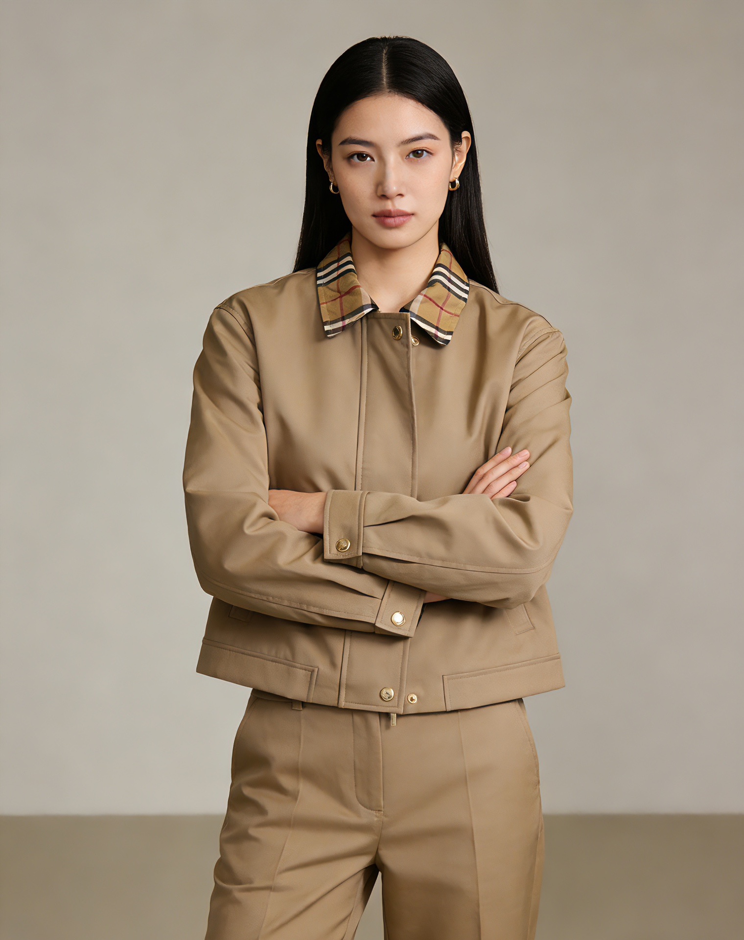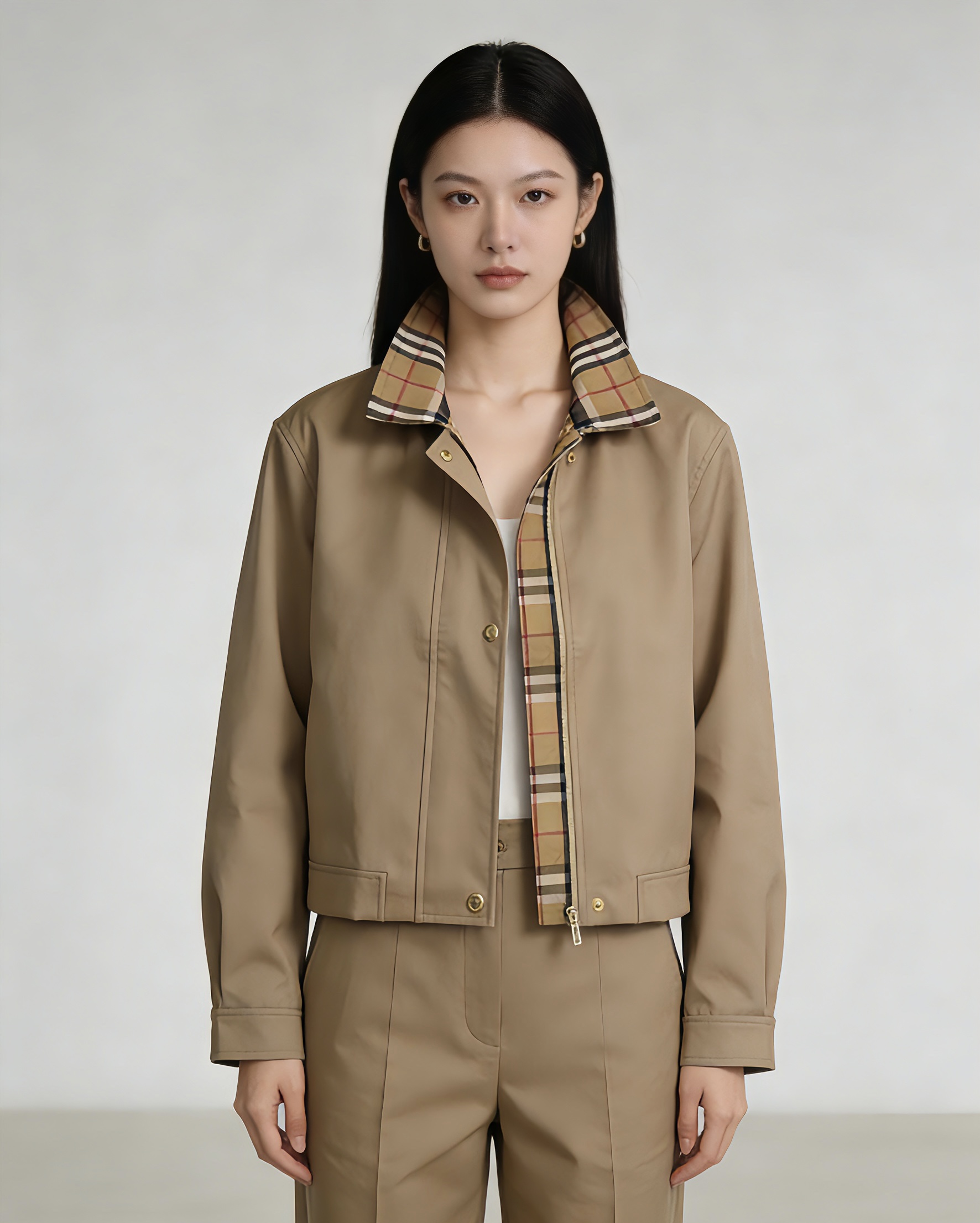 这款衣服是AAAAA 1:1 质量 (非常棒). 使用了和原版一模一样的材料. 商标部分也保持了和巴宝莉/Burberry一样. 图片拍摄是实物衣服拍摄, 您所收到的实物保证和我们图片一模一样.