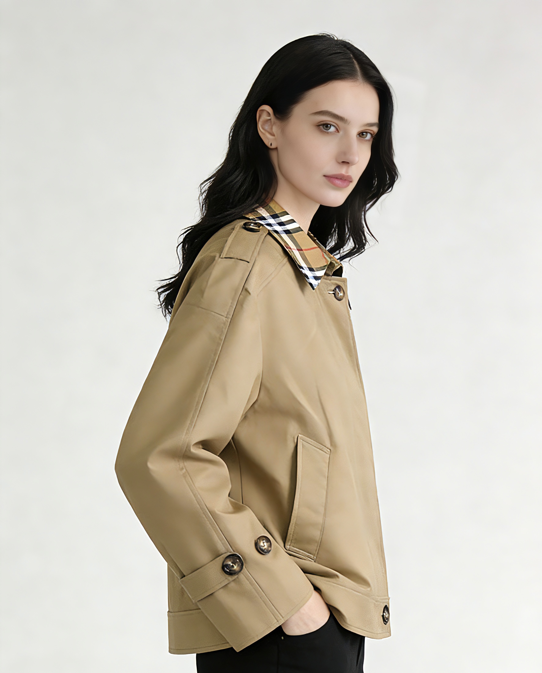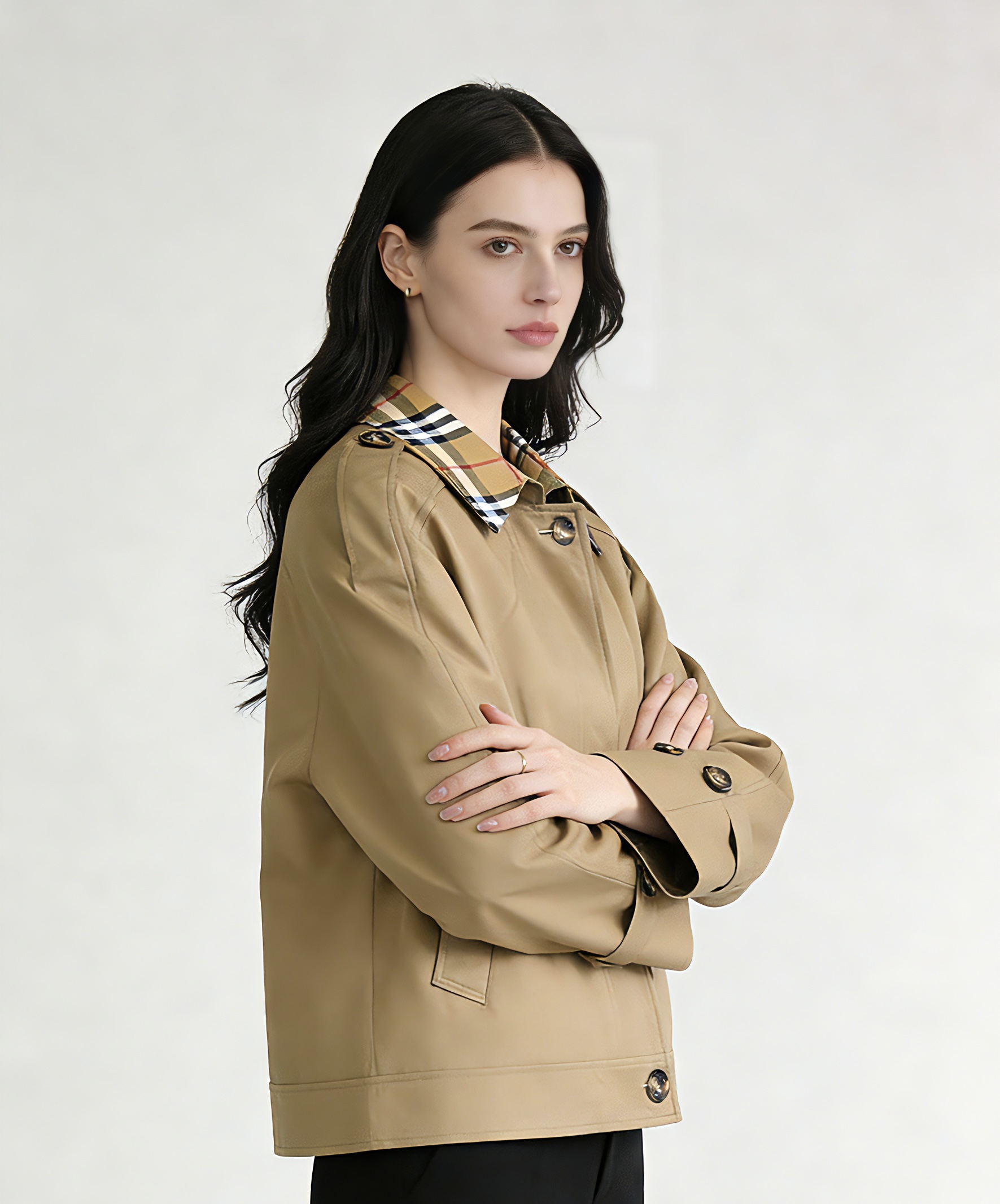 这款衣服是AAAAA 1:1 质量 (非常棒). 使用了和原版一模一样的材料. 商标部分也保持了和巴宝莉/Burberry一样. 图片拍摄是实物衣服拍摄, 您所收到的实物保证和我们图片一模一样.