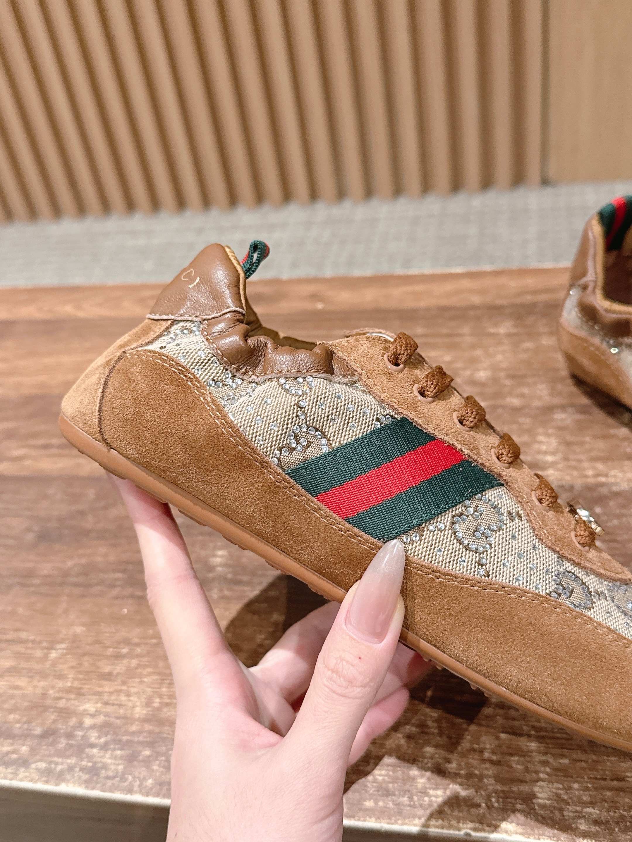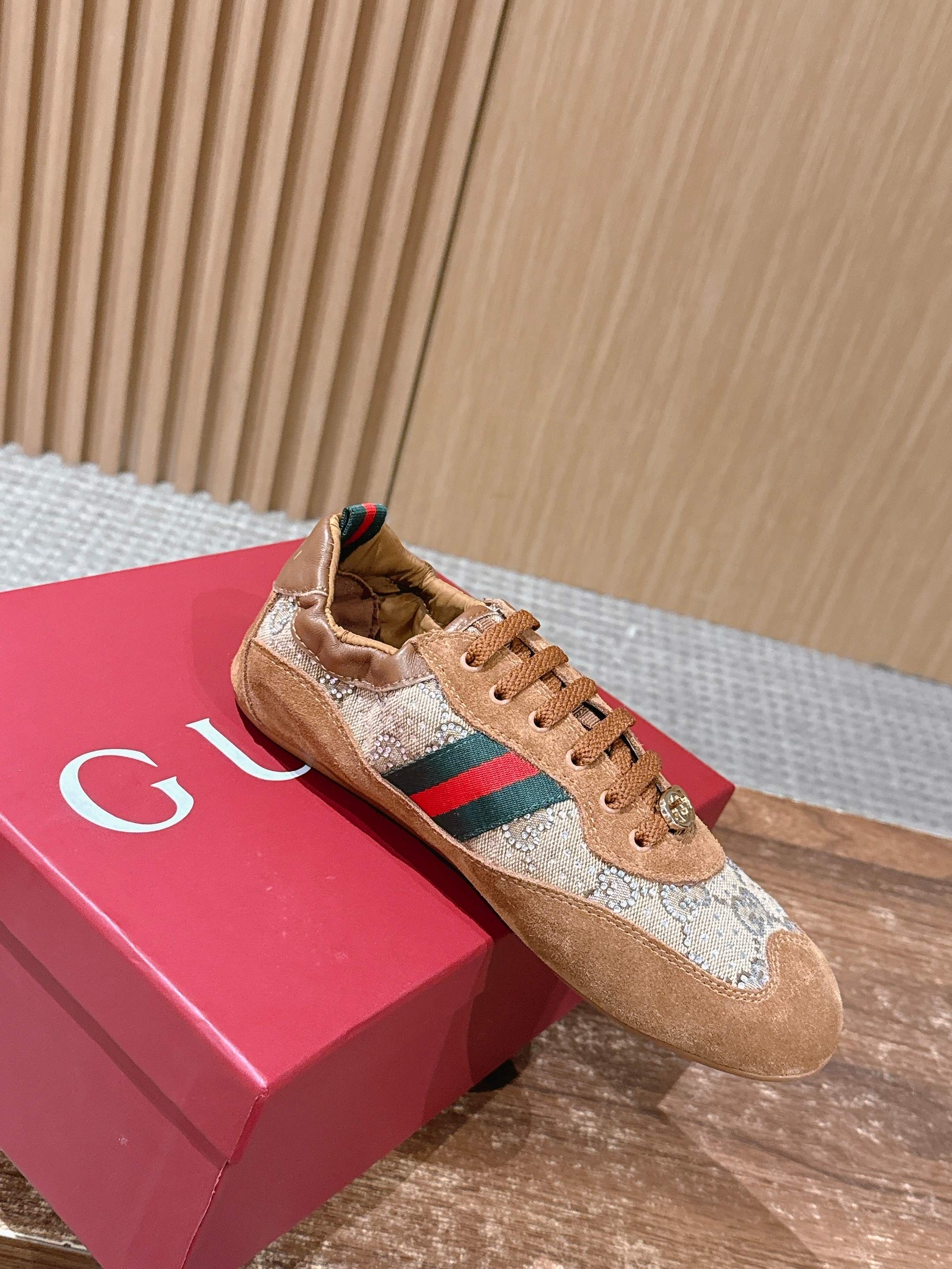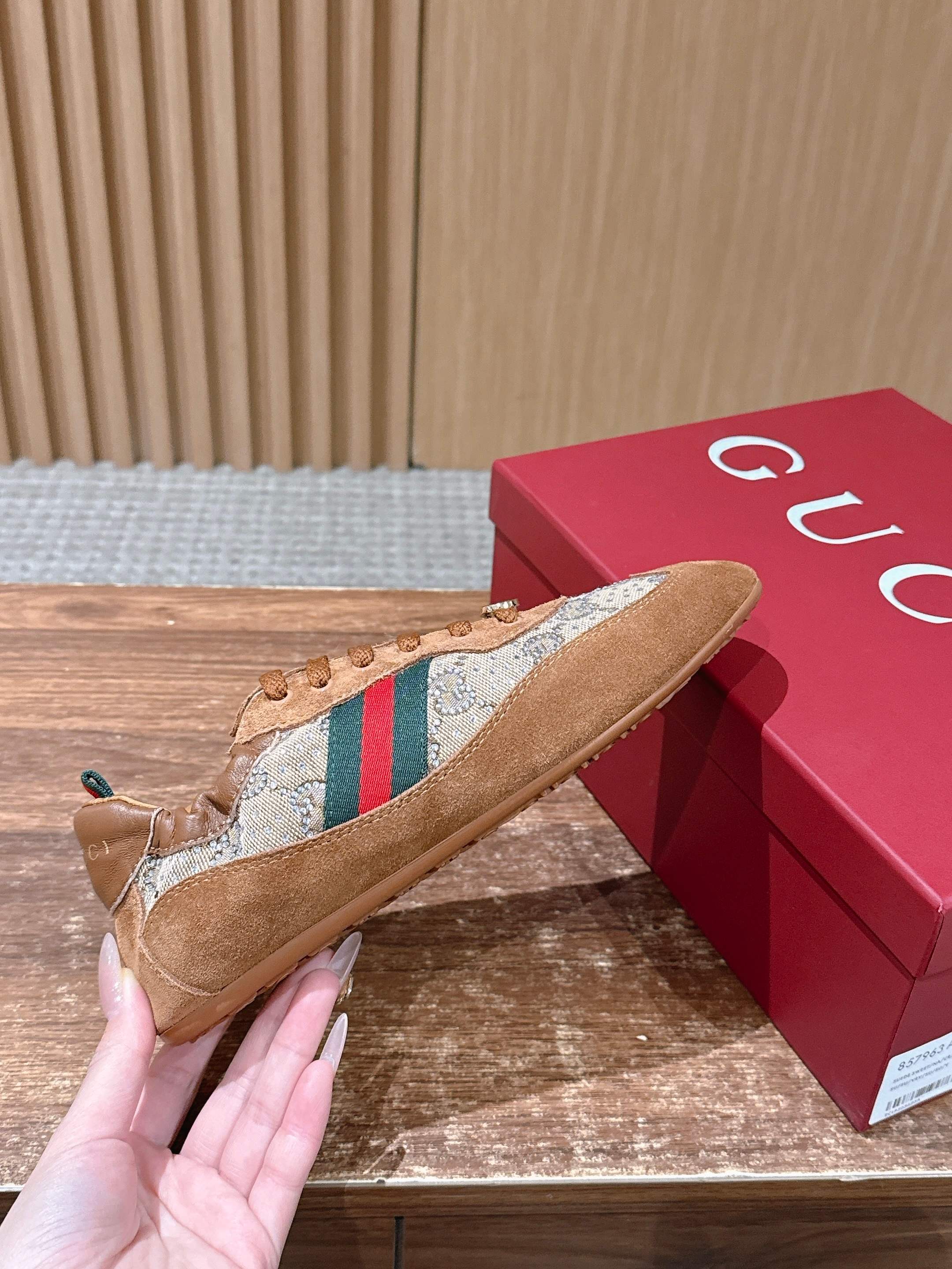 这款鞋子是AAAAA 1:1 质量 (非常棒). 使用了和原版一模一样的材料. 商标部分也保持了和古奇/Gucci一样. 图片拍摄是实物鞋子拍摄, 您所收到的实物保证和我们图片一模一样.