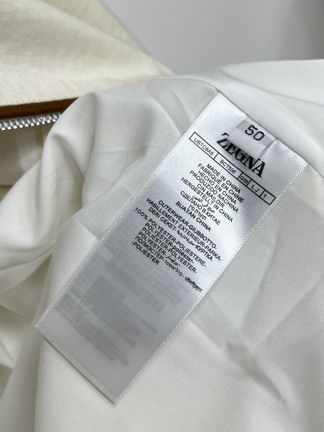 这款衣服是AAAAA 1:1 质量 (非常棒). 使用了和原版一模一样的材料. 商标部分也保持了和杰尼亚/Zegna一样. 图片拍摄是实物衣服拍摄, 您所收到的实物保证和我们图片一模一样.