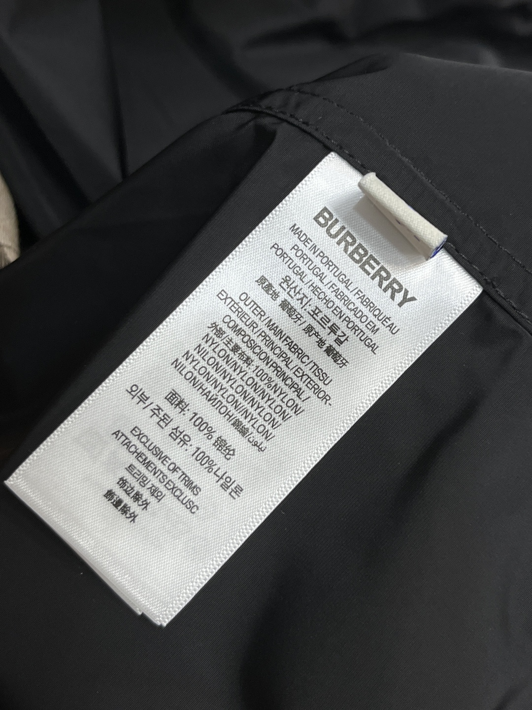 这款衣服是AAAAA 1:1 质量 (非常棒). 使用了和原版一模一样的材料. 商标部分也保持了和巴宝莉/Burberry一样. 图片拍摄是实物衣服拍摄, 您所收到的实物保证和我们图片一模一样.