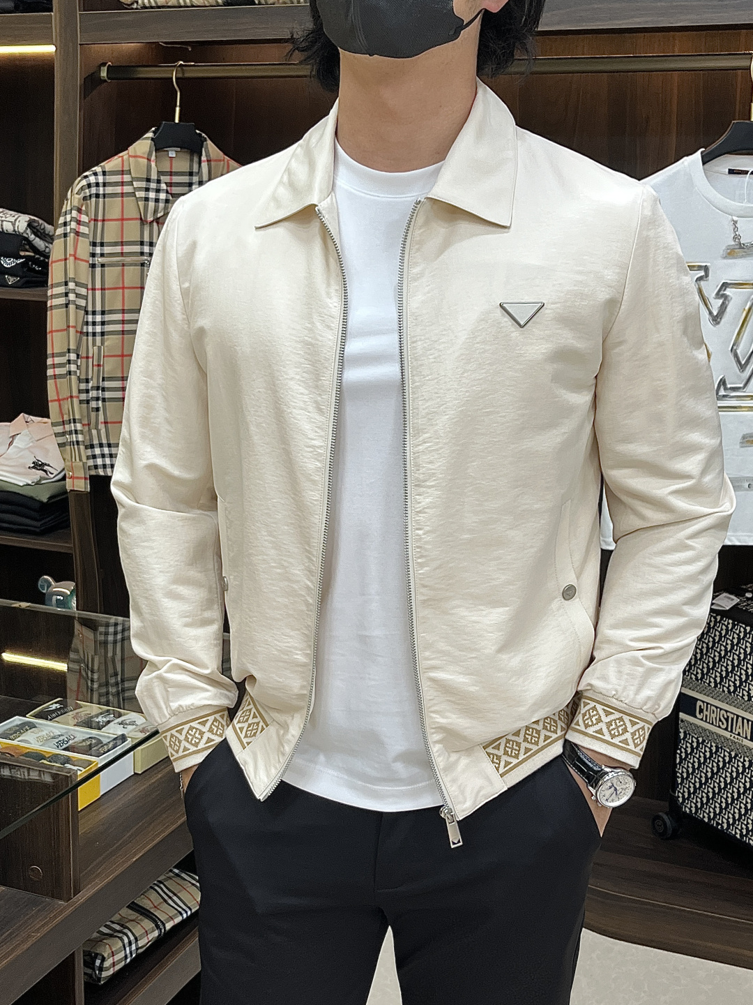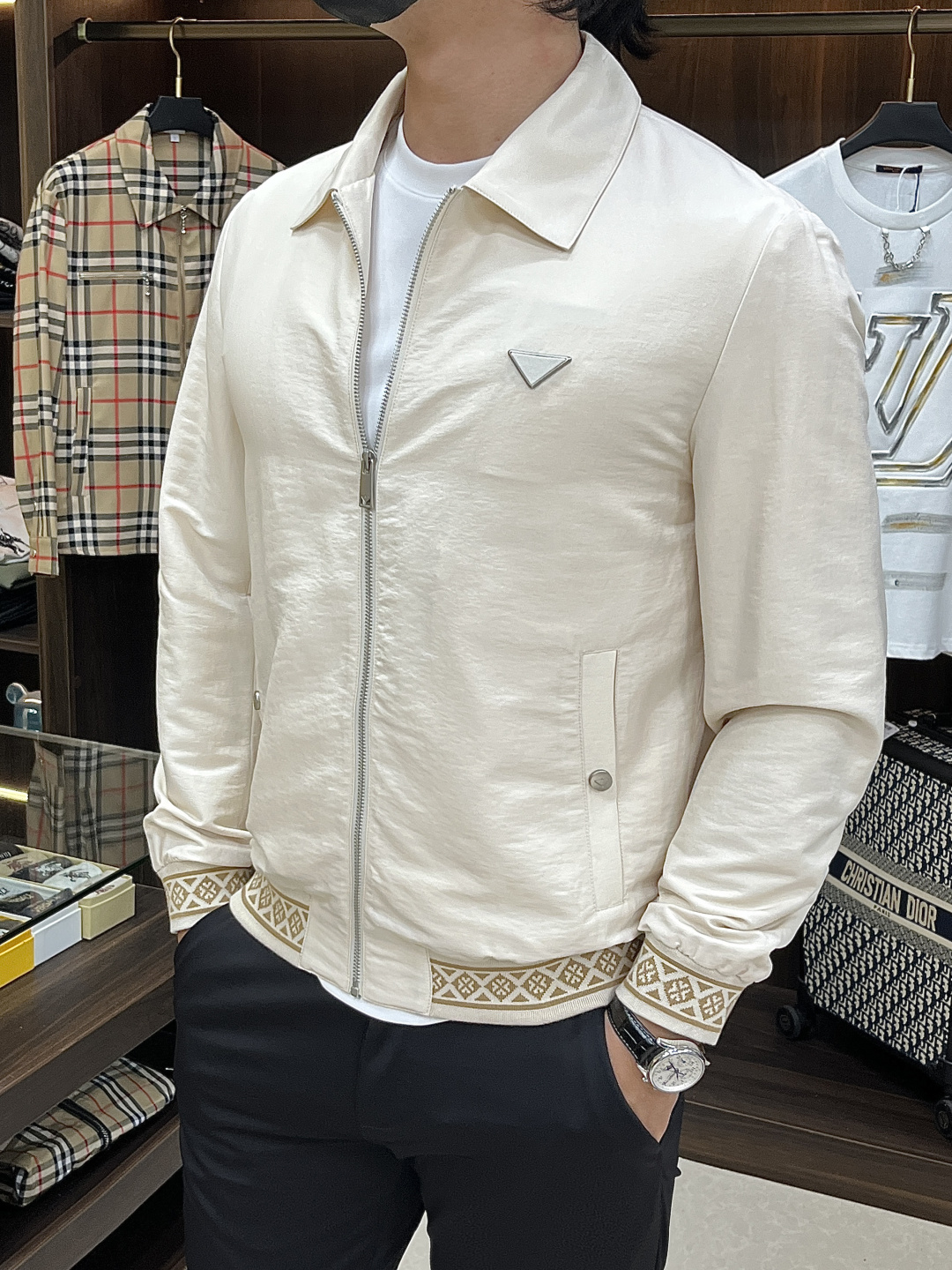 这款衣服是AAAAA 1:1 质量 (非常棒). 使用了和原版一模一样的材料. 商标部分也保持了和普拉达/Prada一样. 图片拍摄是实物衣服拍摄, 您所收到的实物保证和我们图片一模一样.