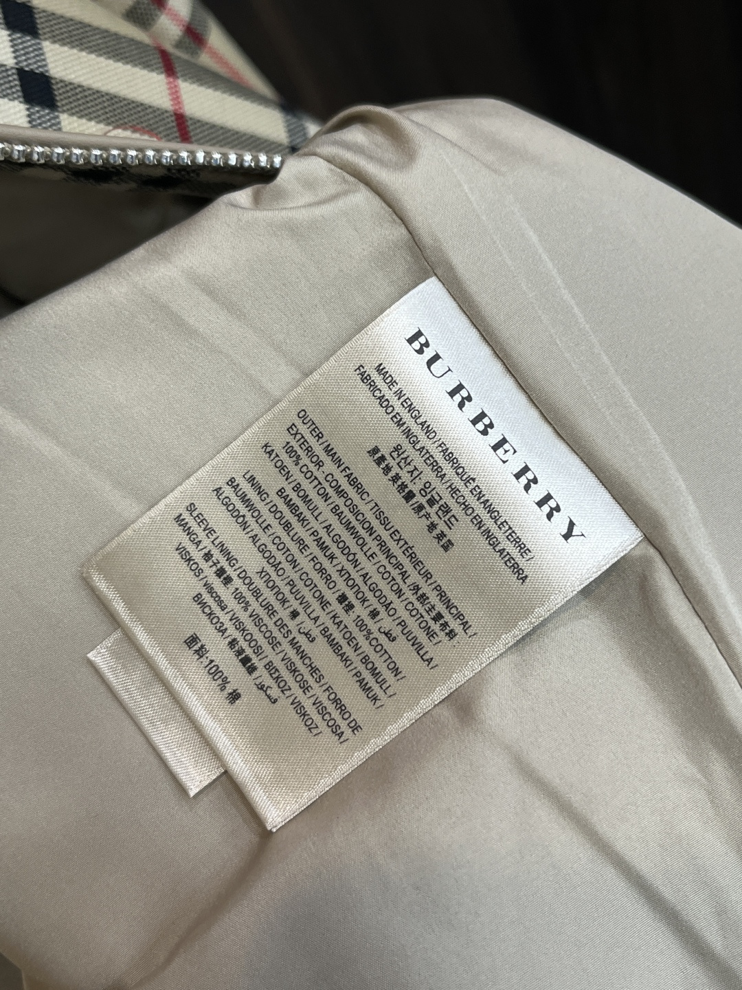 这款衣服是AAAAA 1:1 质量 (非常棒). 使用了和原版一模一样的材料. 商标部分也保持了和巴宝莉/Burberry一样. 图片拍摄是实物衣服拍摄, 您所收到的实物保证和我们图片一模一样.