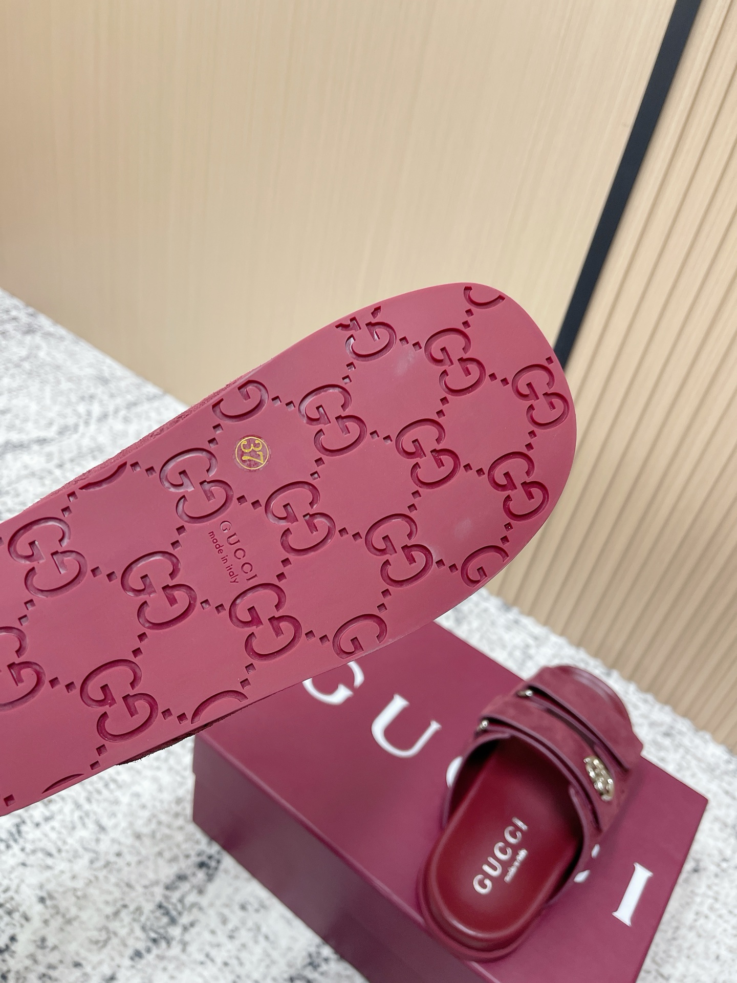 这款鞋子是AAAAA 1:1 质量 (非常棒). 使用了和原版一模一样的材料. 商标部分也保持了和古奇/Gucci一样. 图片拍摄是实物鞋子拍摄, 您所收到的实物保证和我们图片一模一样.