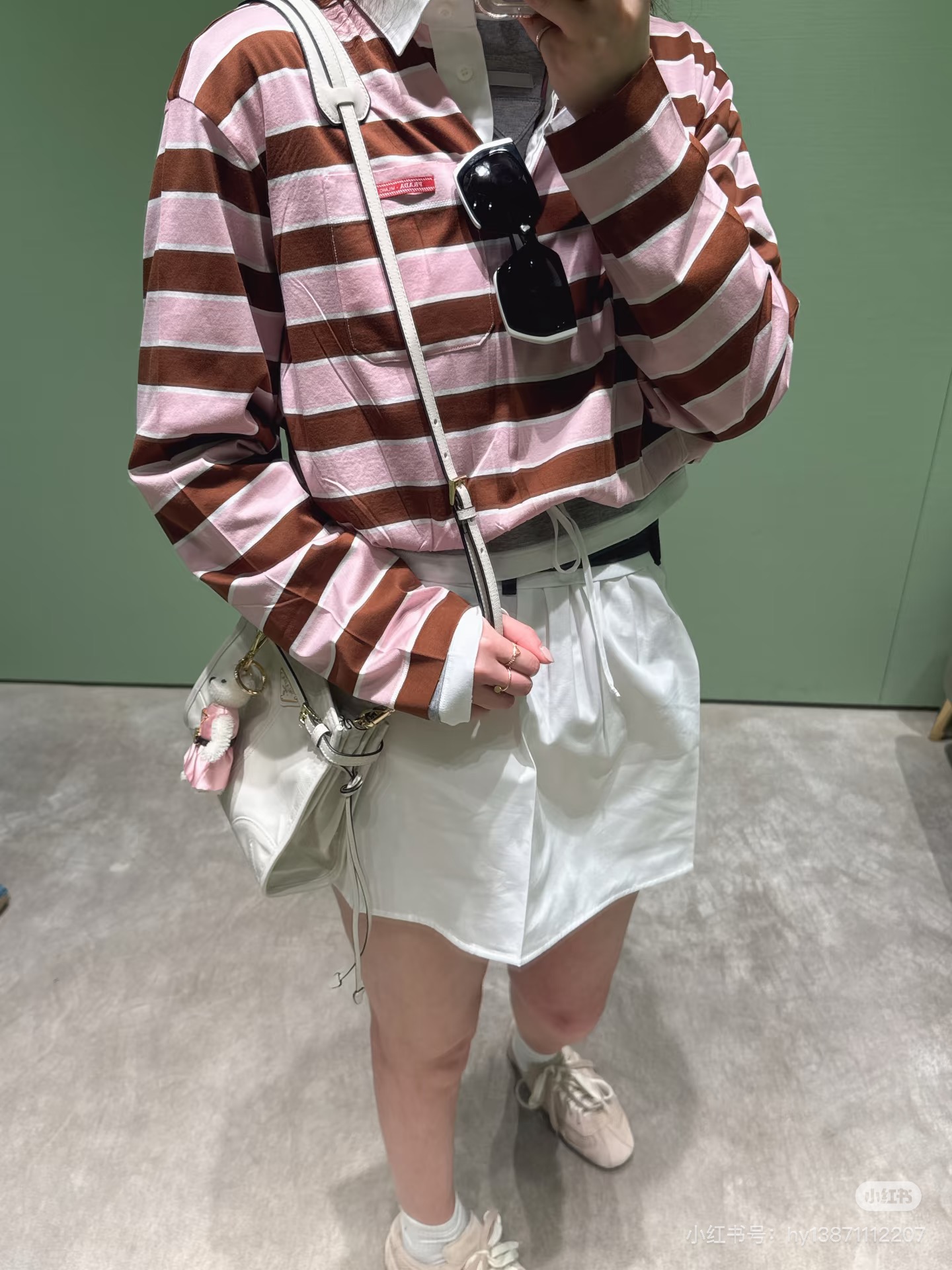 这款衣服是AAAAA 1:1 质量 (非常棒). 使用了和原版一模一样的材料. 商标部分也保持了和普拉达/Prada一样. 图片拍摄是实物衣服拍摄, 您所收到的实物保证和我们图片一模一样.