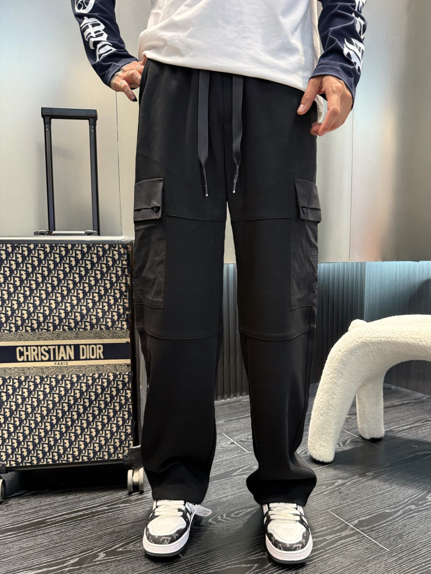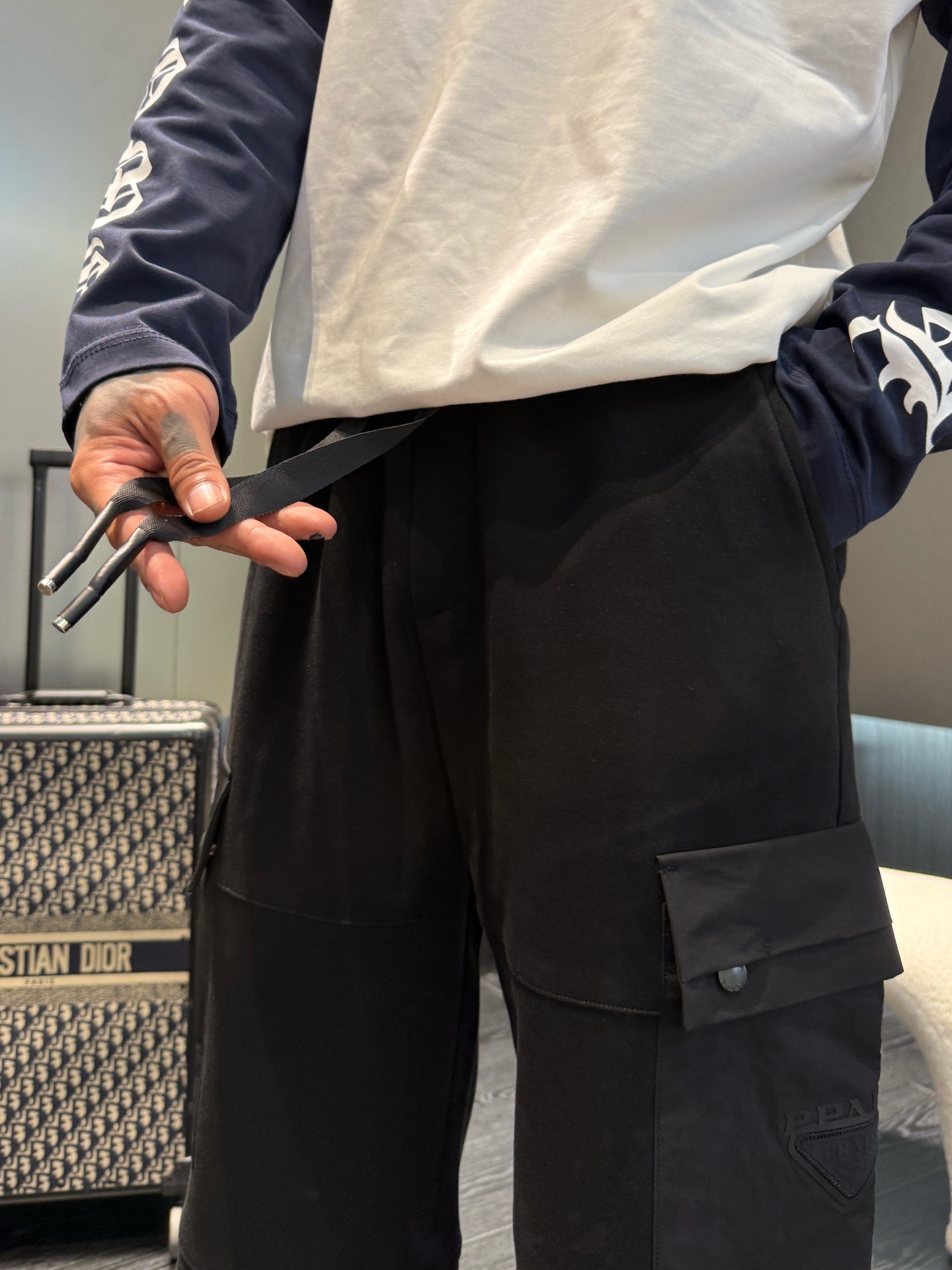 这款衣服是AAAAA 1:1 质量 (非常棒). 使用了和原版一模一样的材料. 商标部分也保持了和普拉达/Prada一样. 图片拍摄是实物衣服拍摄, 您所收到的实物保证和我们图片一模一样.