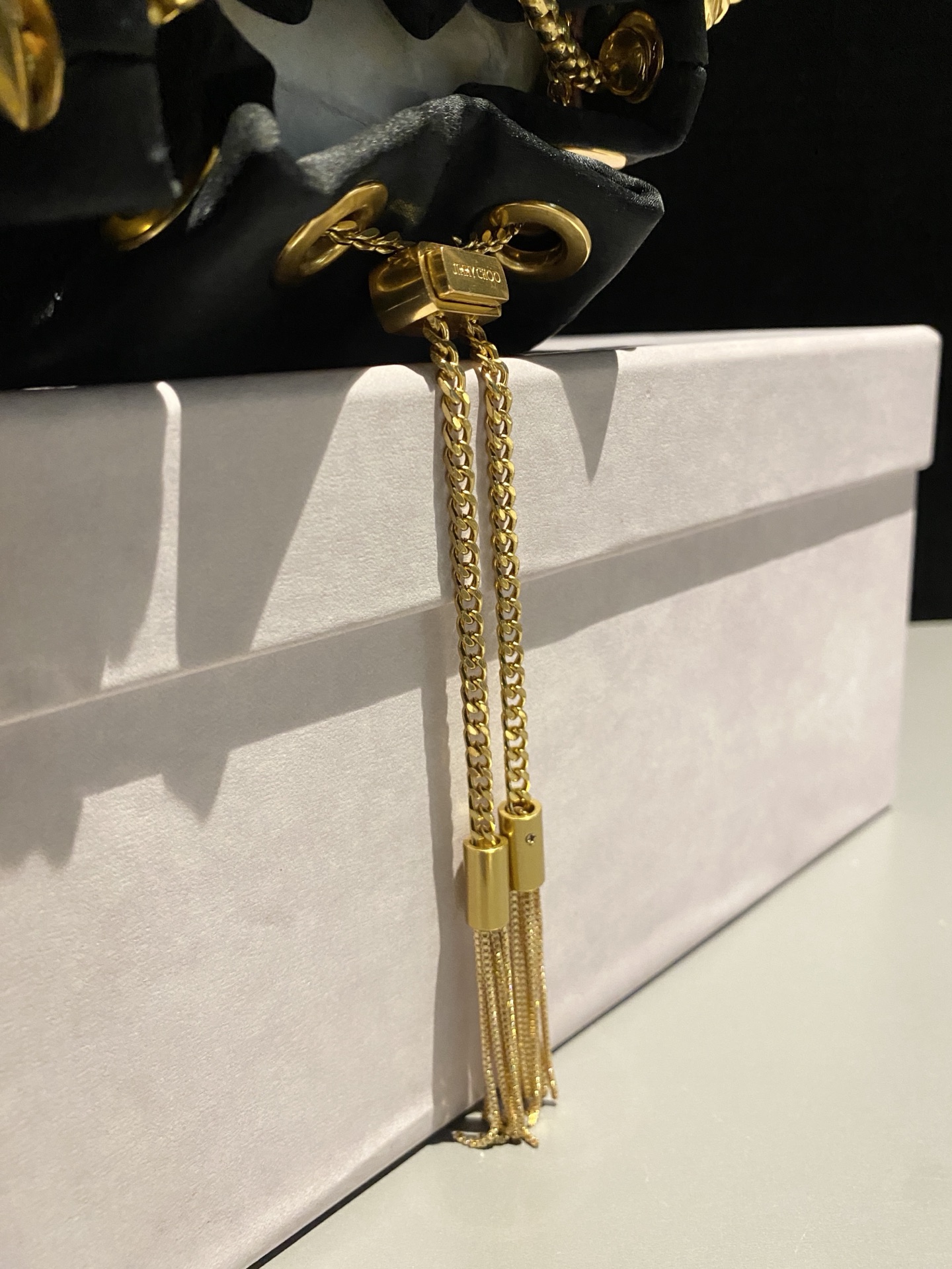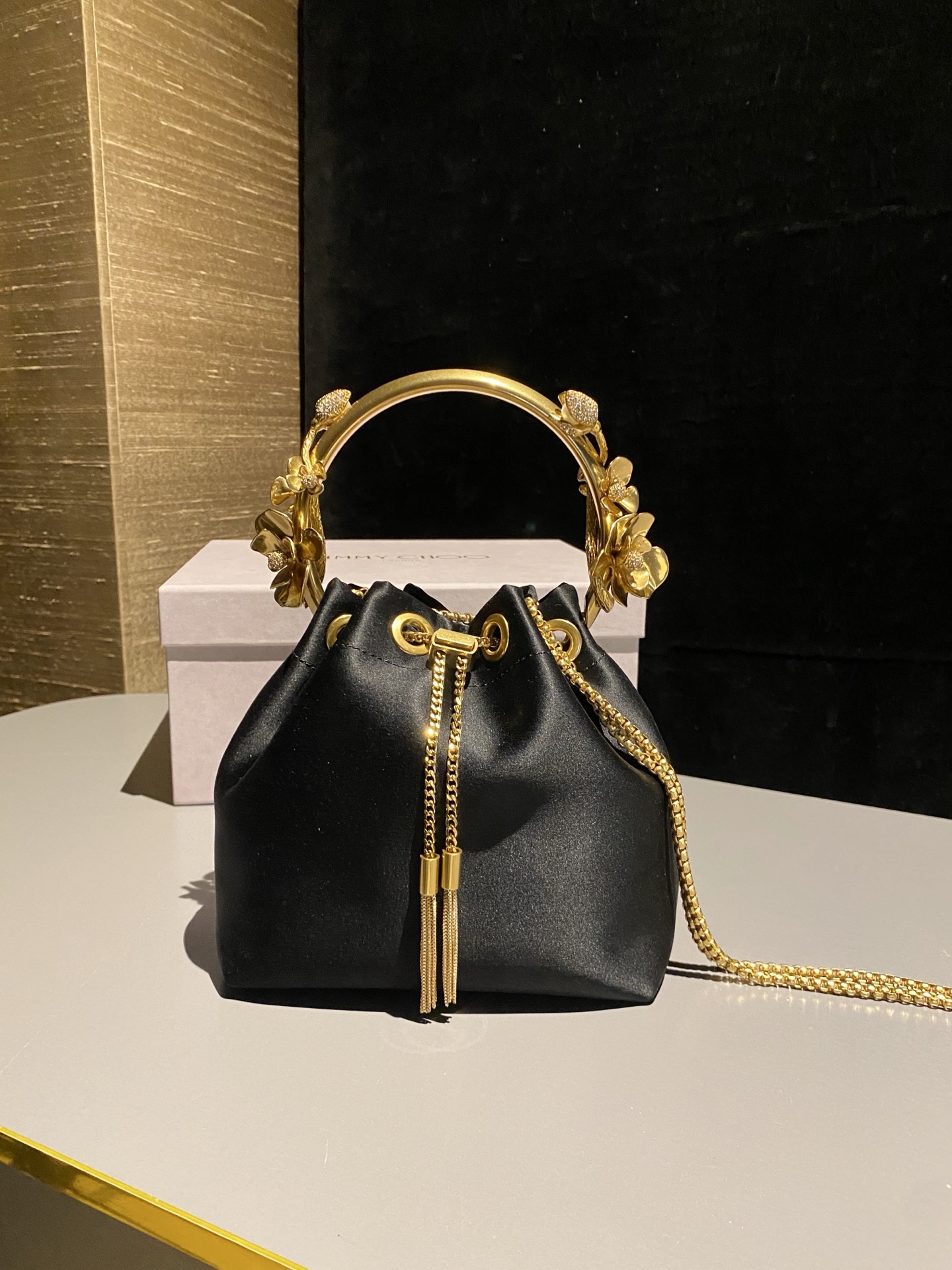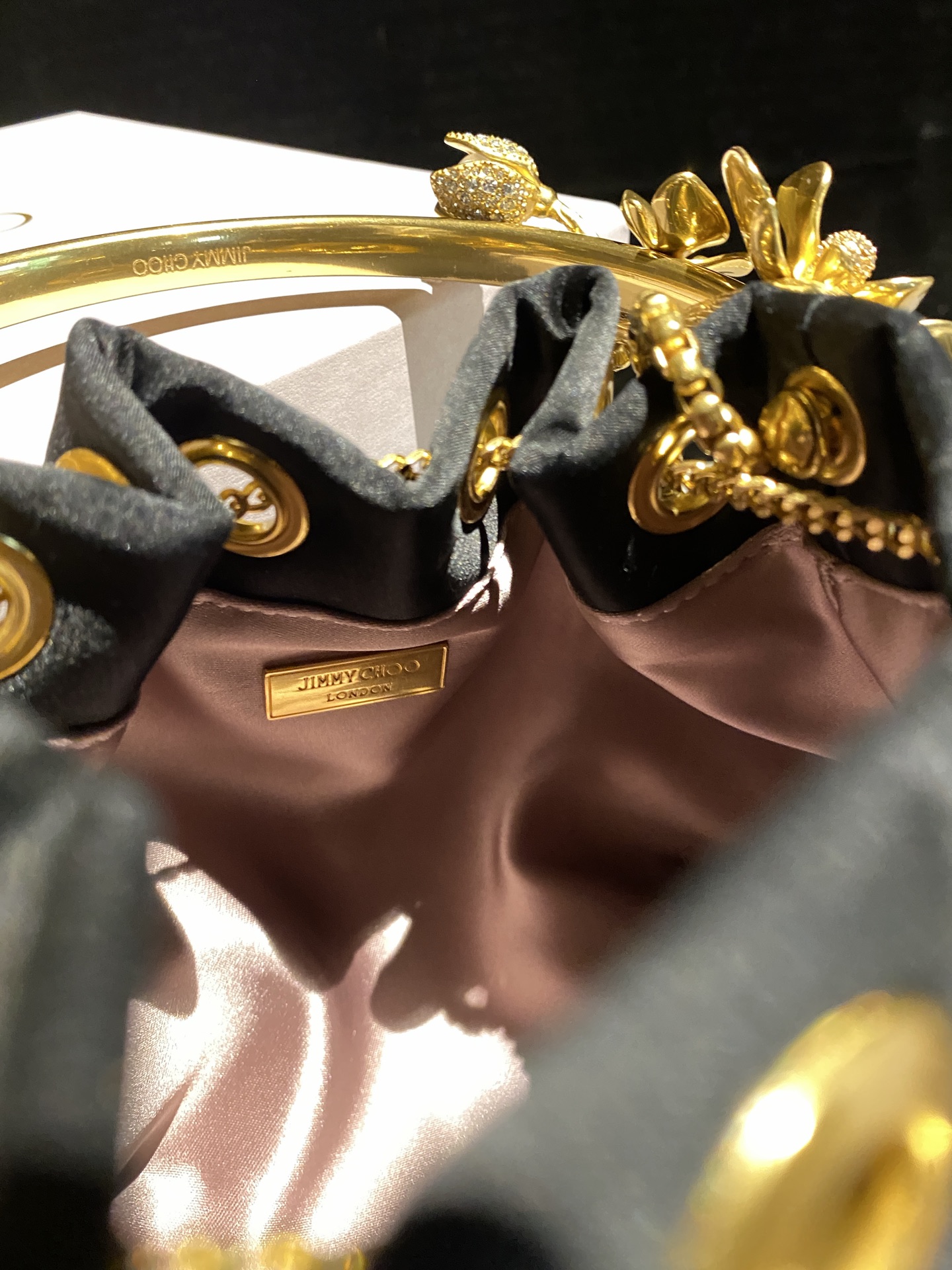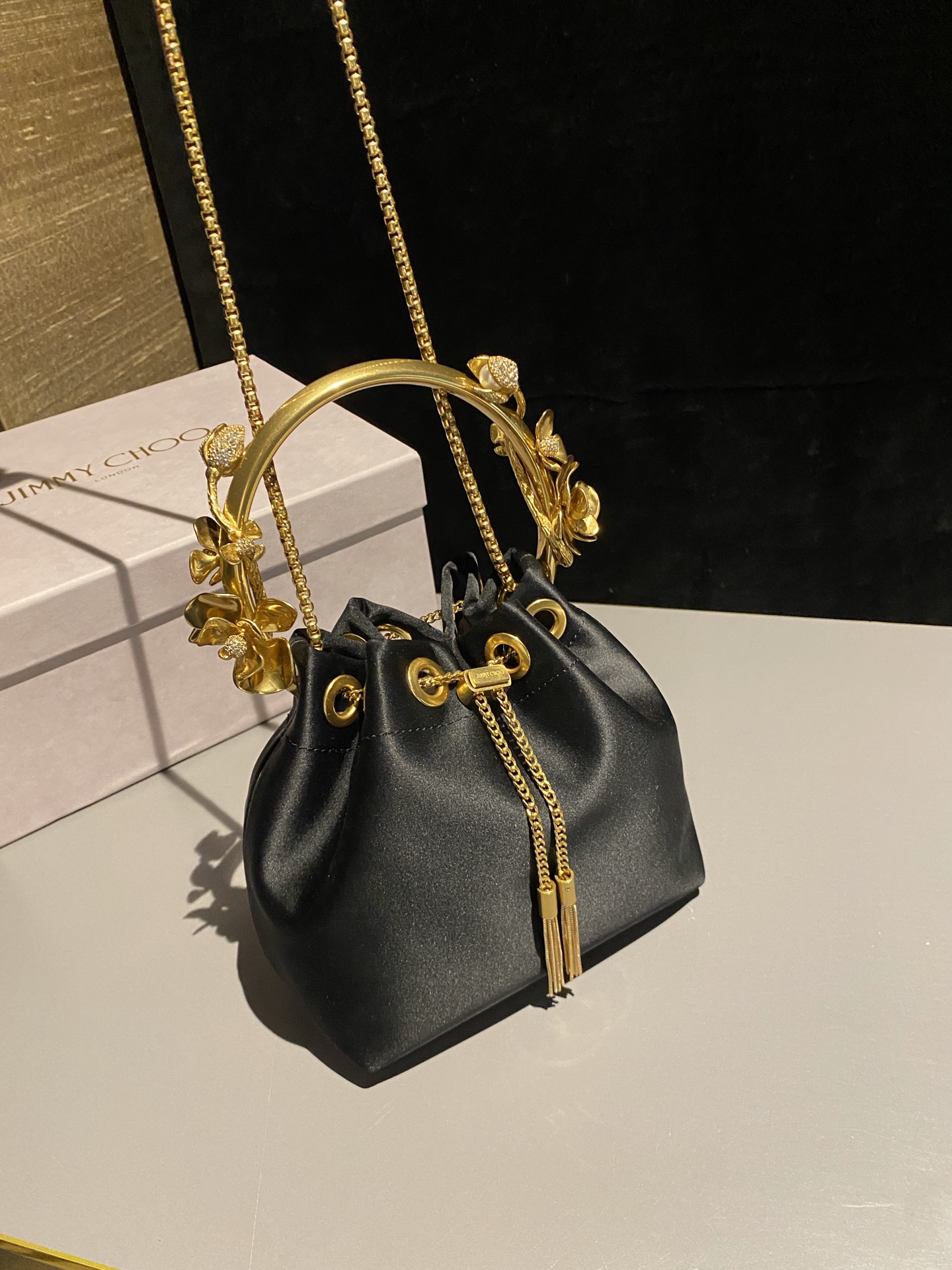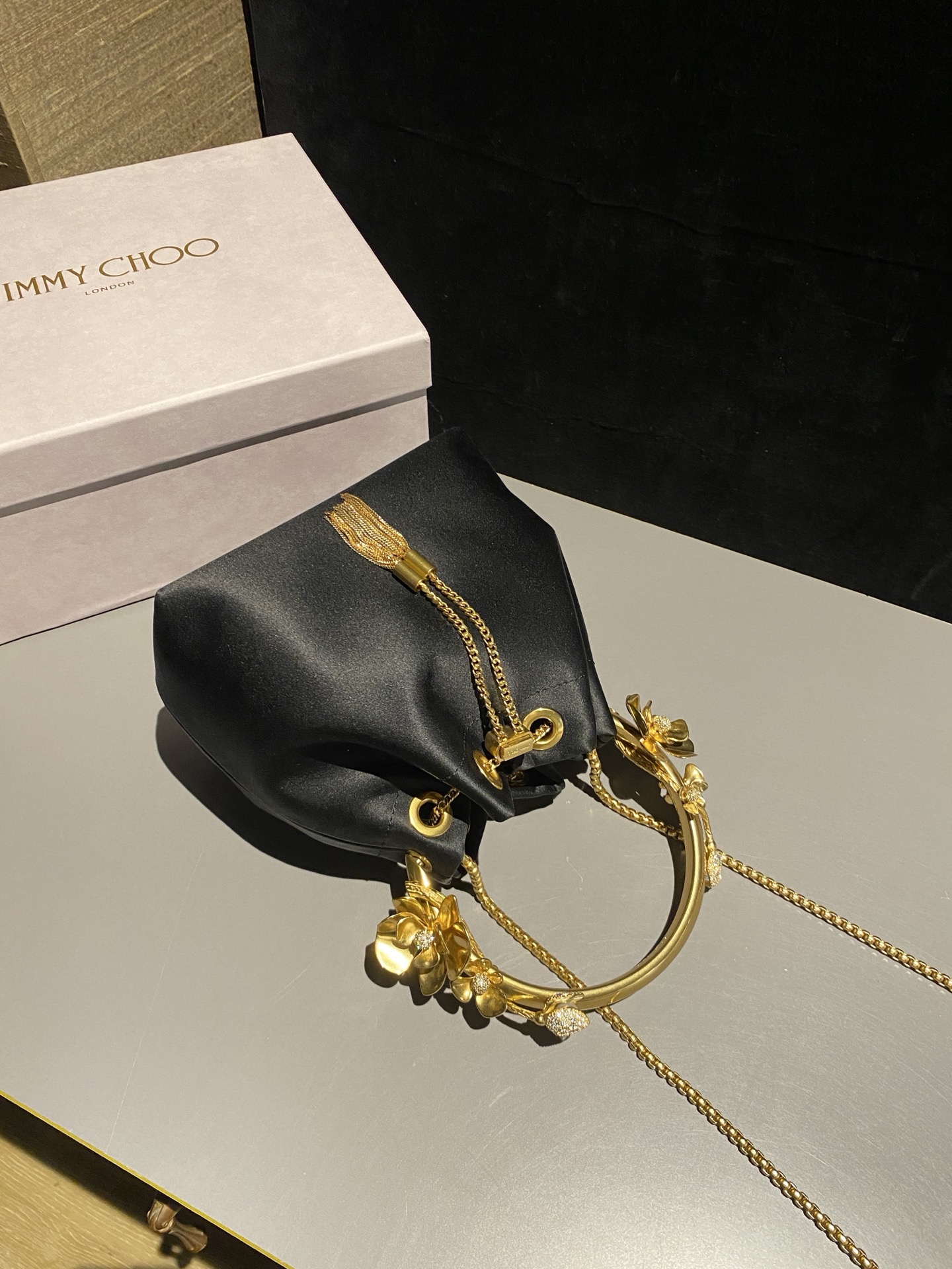 这款包包是AAAAA 1:1 质量 (非常棒). 使用了和原版一模一样的材料. 商标部分也保持了和吉米乔/JIMMY CHOO一样. 图片拍摄是实物包包拍摄, 您所收到的实物保证和我们图片一模一样.