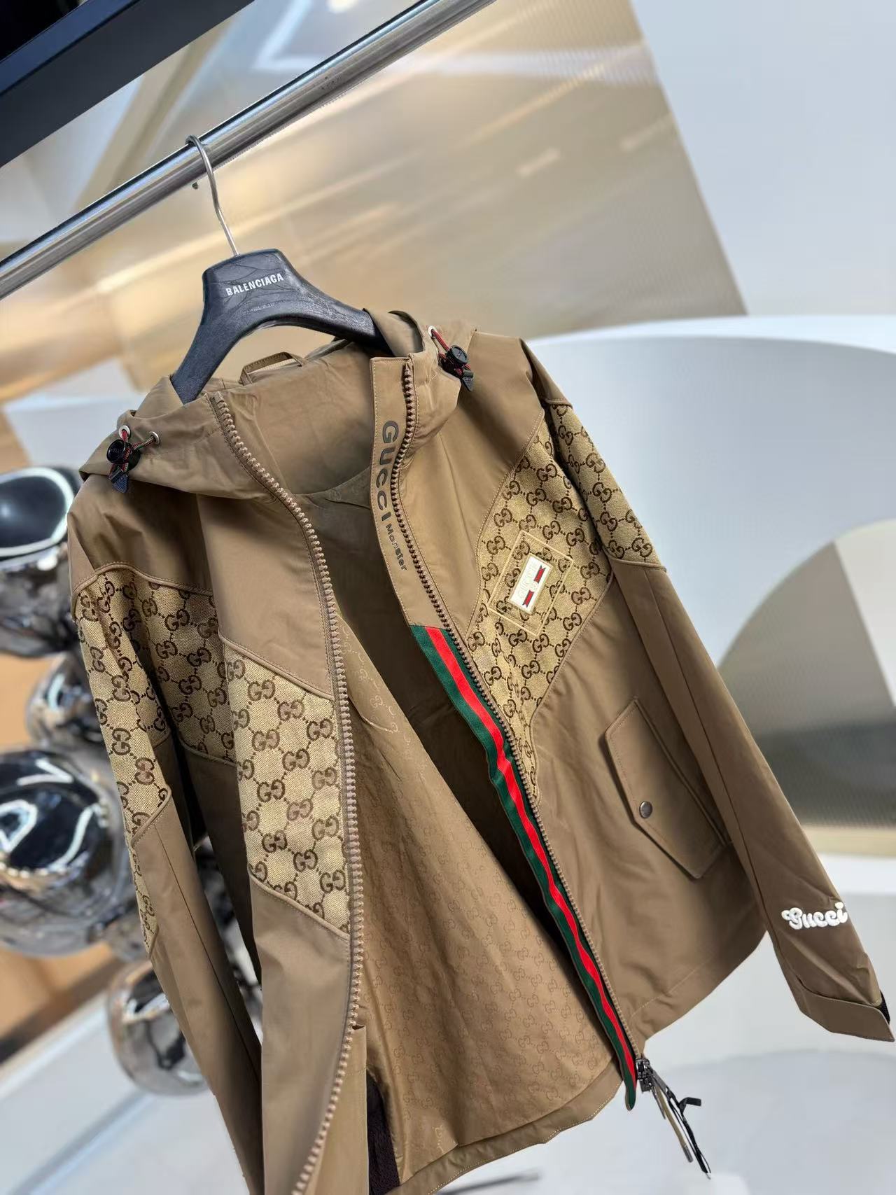 这款衣服是AAAAA 1:1 质量 (非常棒). 使用了和原版一模一样的材料. 商标部分也保持了和古奇/Gucci一样. 图片拍摄是实物衣服拍摄, 您所收到的实物保证和我们图片一模一样.