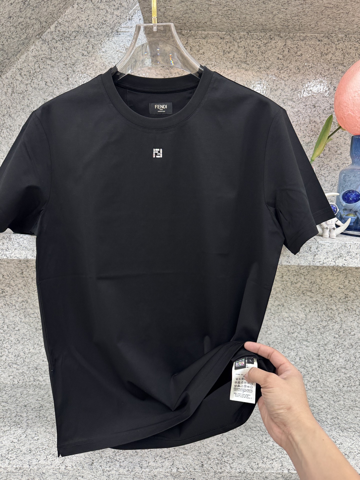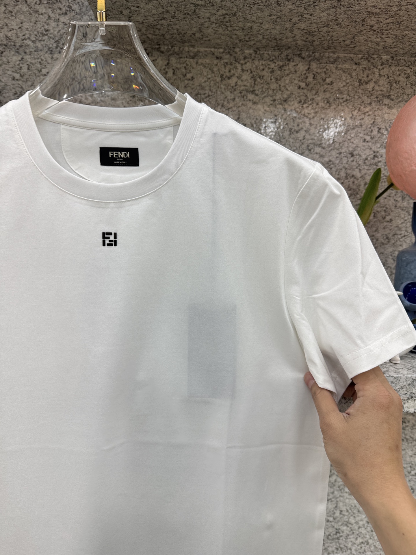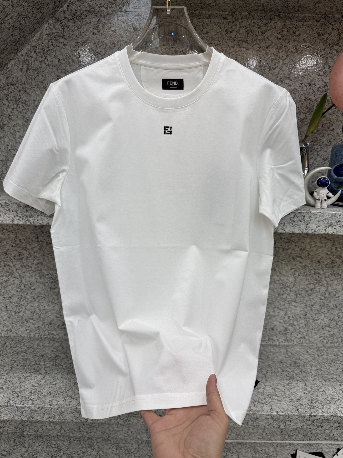 这款衣服是AAAAA 1:1 质量 (非常棒). 使用了和原版一模一样的材料. 商标部分也保持了和芬迪/Fendi一样. 图片拍摄是实物衣服拍摄, 您所收到的实物保证和我们图片一模一样.