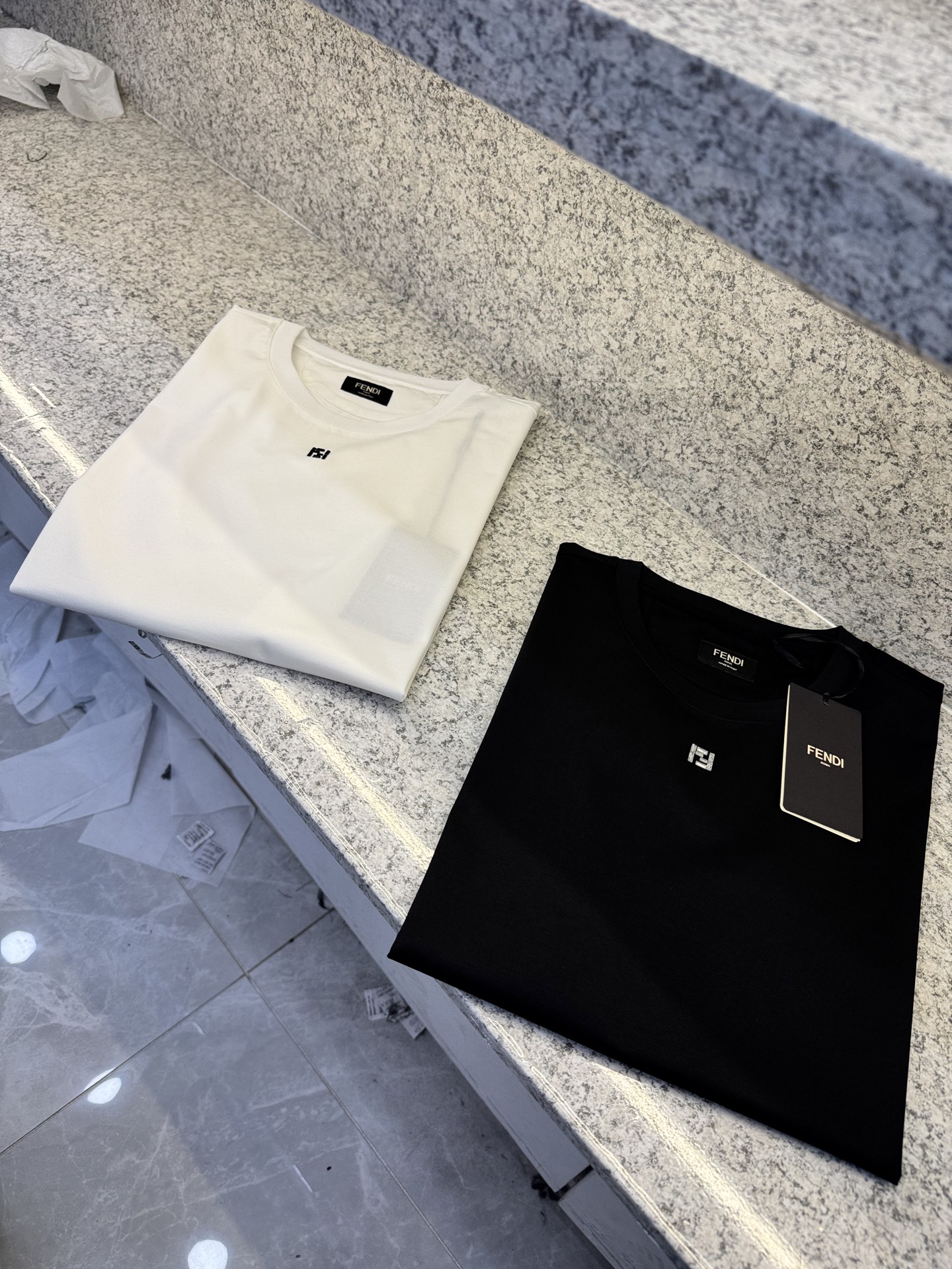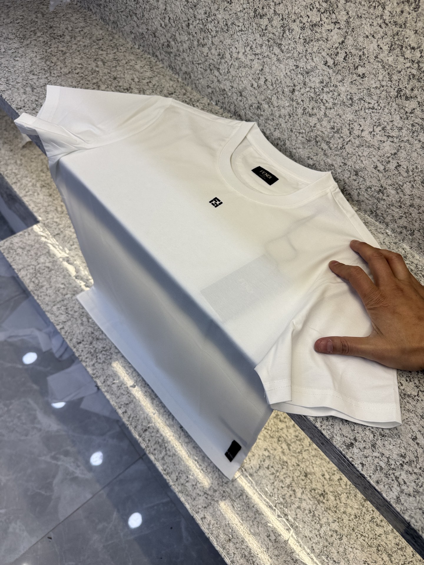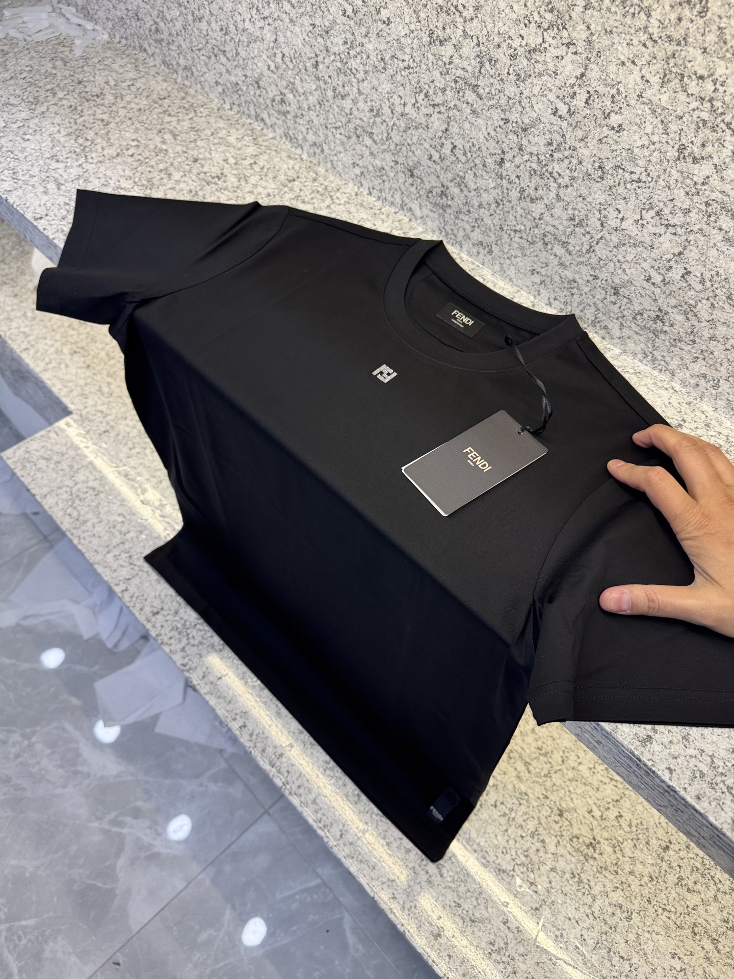 这款衣服是AAAAA 1:1 质量 (非常棒). 使用了和原版一模一样的材料. 商标部分也保持了和芬迪/Fendi一样. 图片拍摄是实物衣服拍摄, 您所收到的实物保证和我们图片一模一样.
