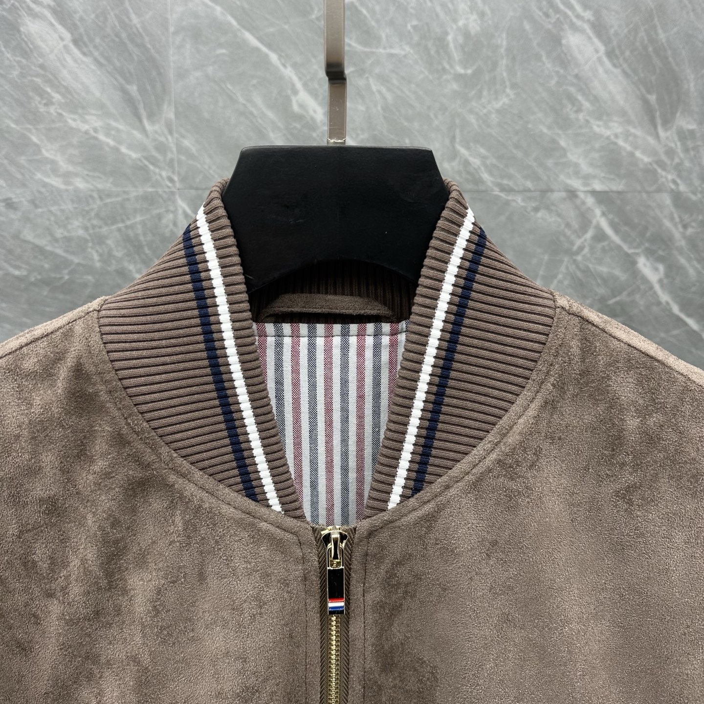 这款衣服是AAAAA 1:1 质量 (非常棒). 使用了和原版一模一样的材料. 商标部分也保持了和汤姆布朗/Thom Browne一样. 图片拍摄是实物衣服拍摄, 您所收到的实物保证和我们图片一模一样.