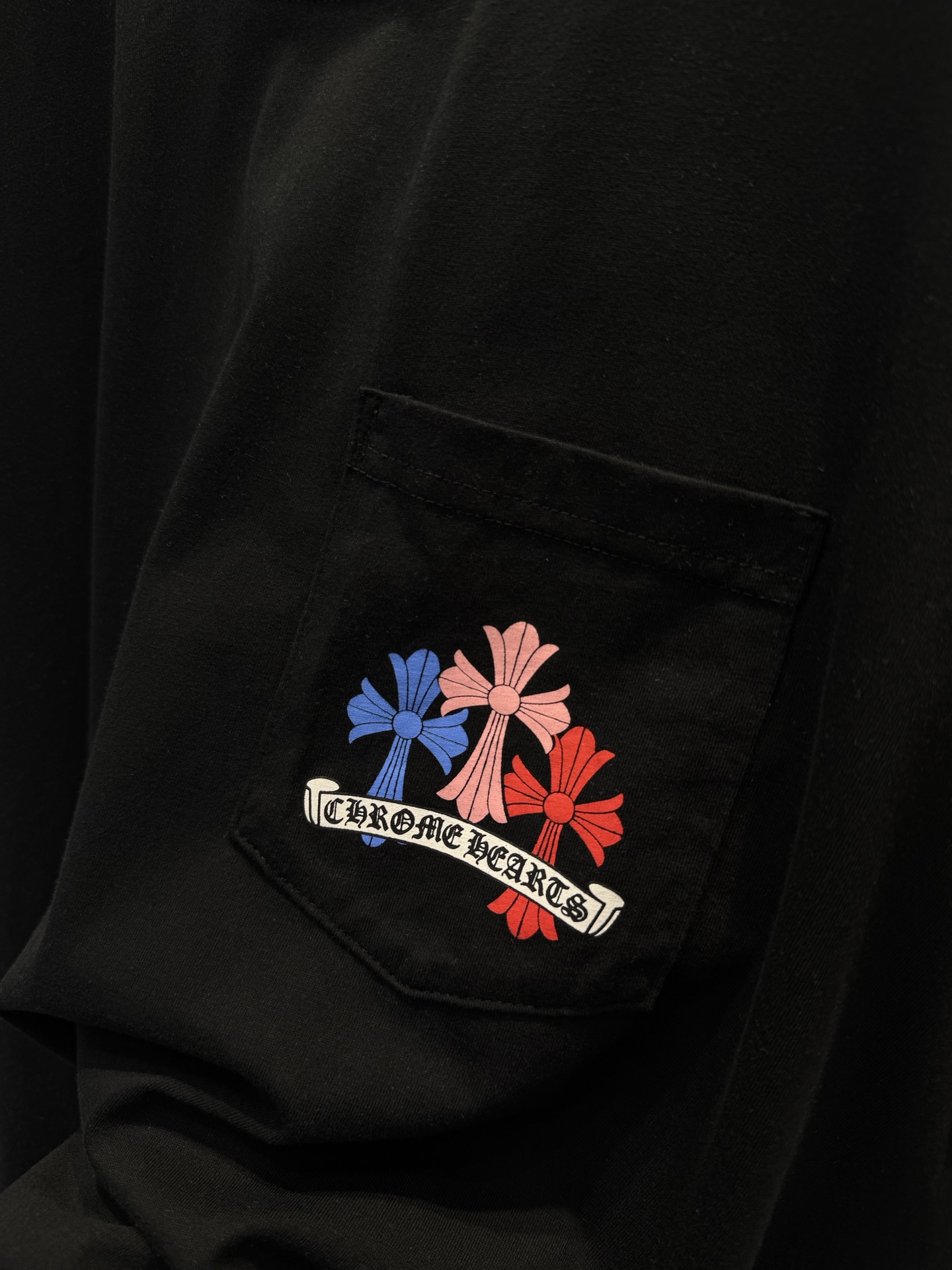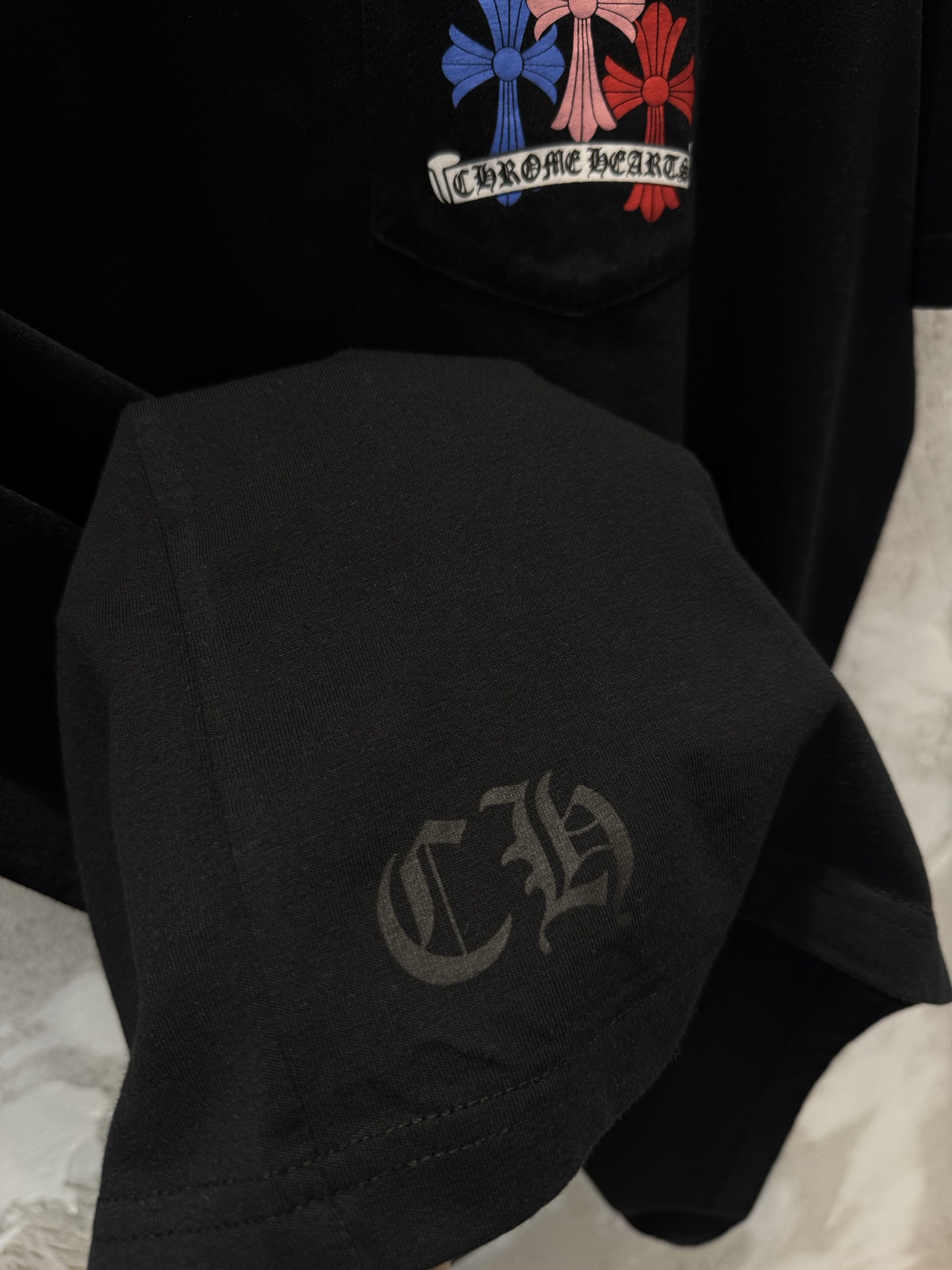 这款衣服是AAAAA 1:1 质量 (非常棒). 使用了和原版一模一样的材料. 商标部分也保持了和克罗心/Chrome Hearts一样. 图片拍摄是实物衣服拍摄, 您所收到的实物保证和我们图片一模一样.