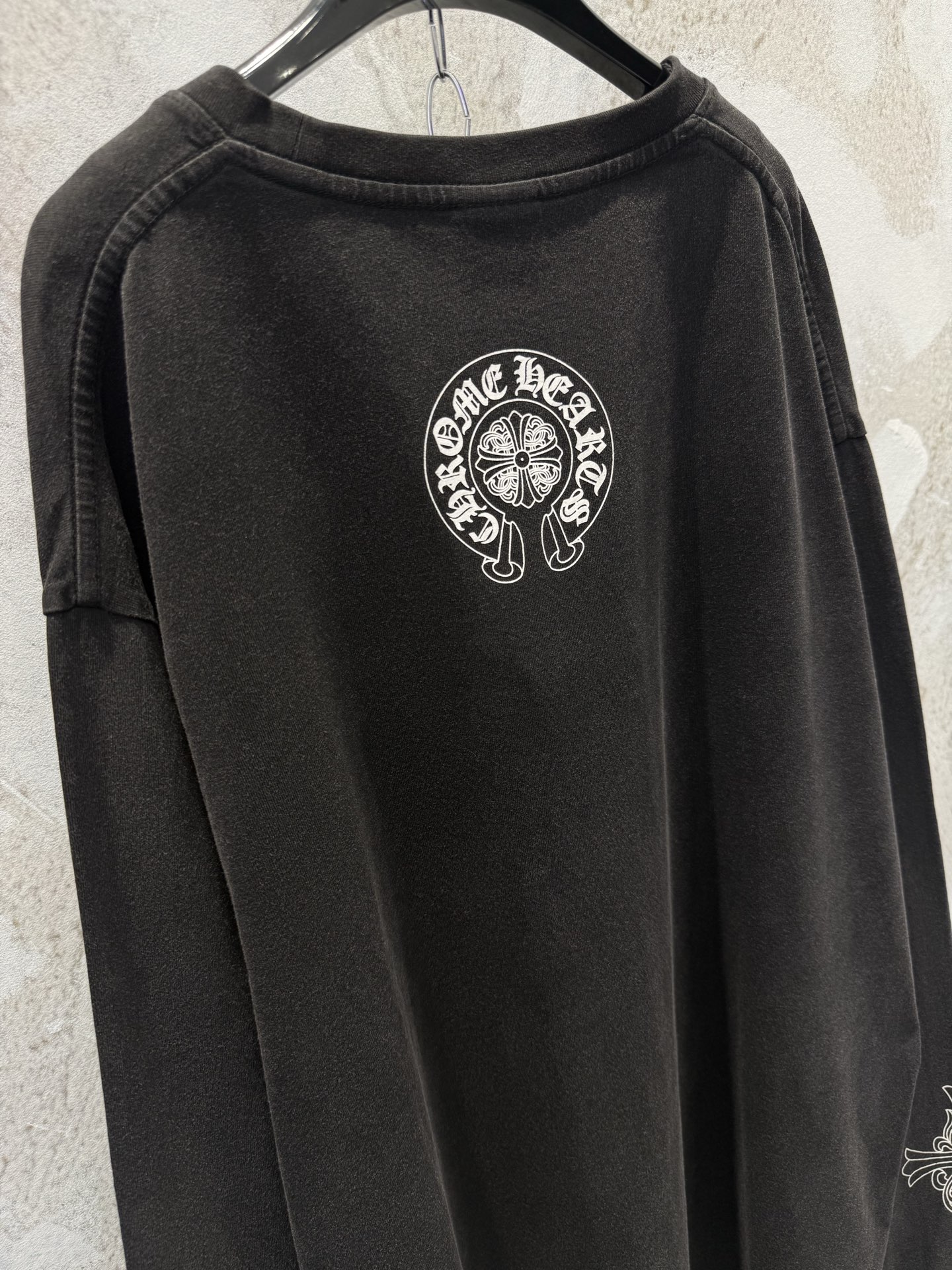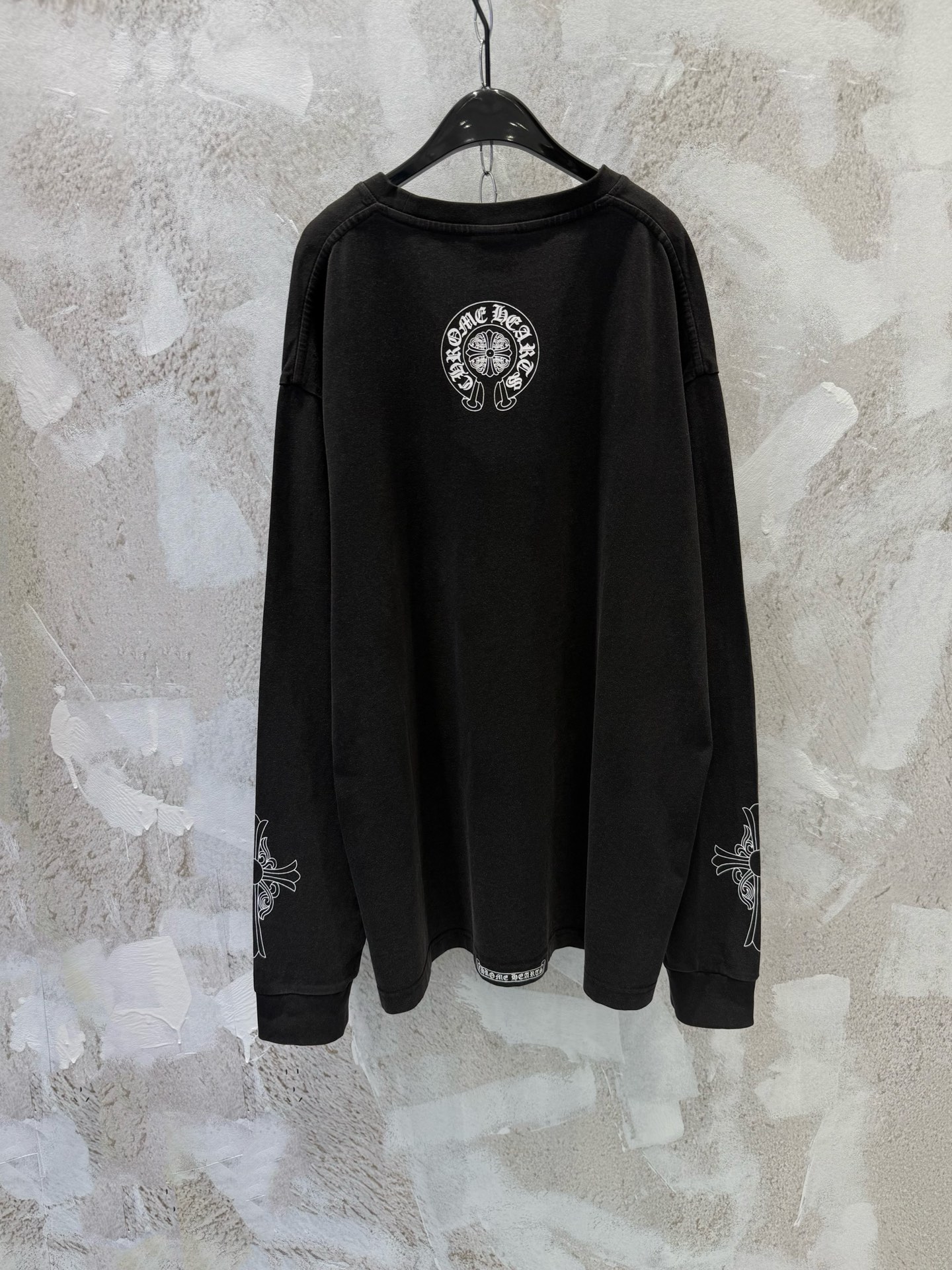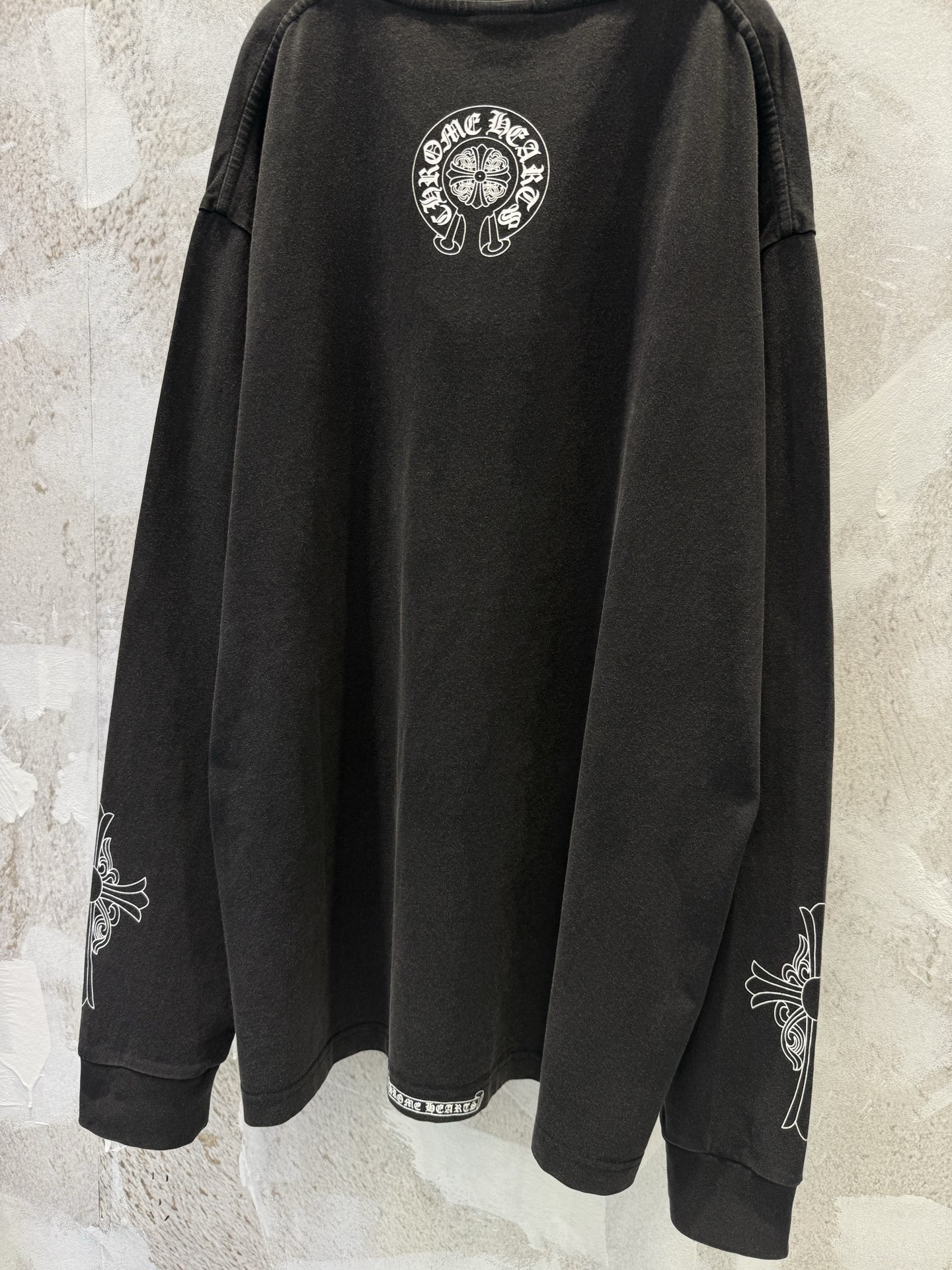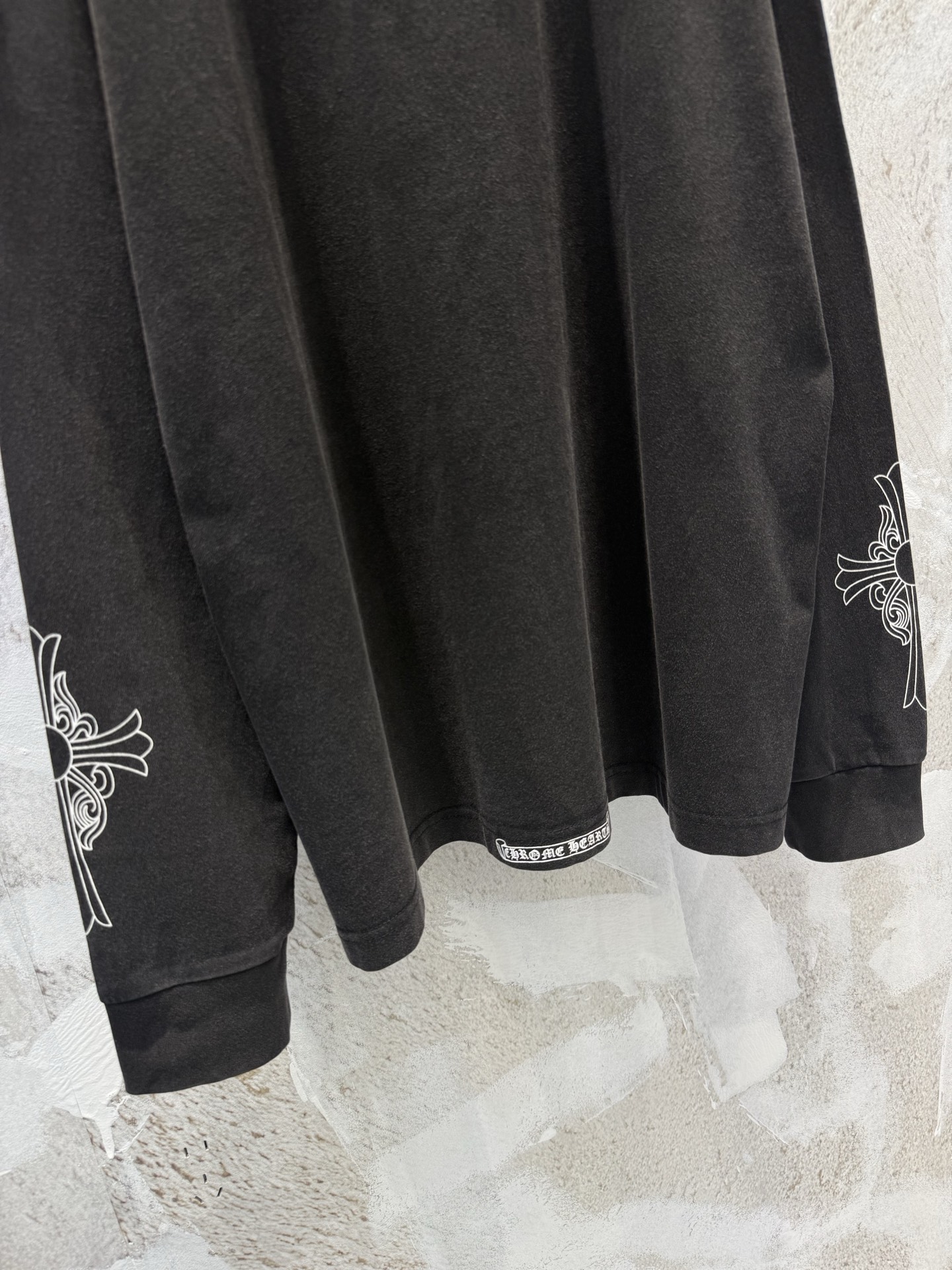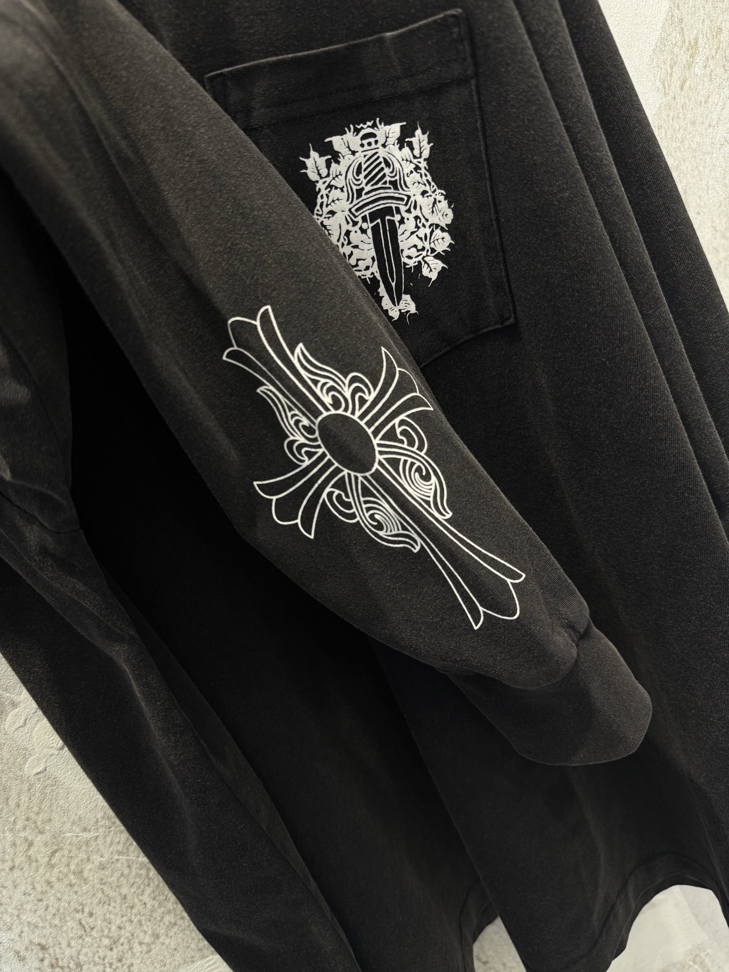 这款衣服是AAAAA 1:1 质量 (非常棒). 使用了和原版一模一样的材料. 商标部分也保持了和克罗心/Chrome Hearts一样. 图片拍摄是实物衣服拍摄, 您所收到的实物保证和我们图片一模一样.