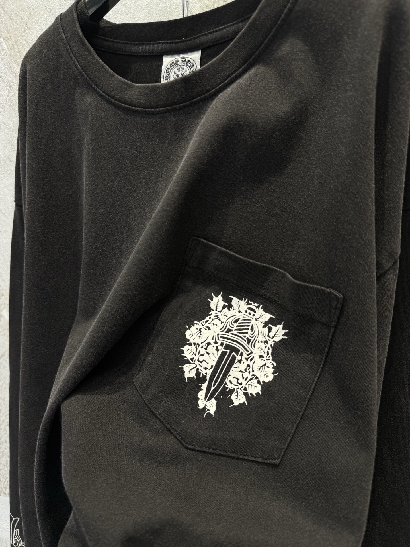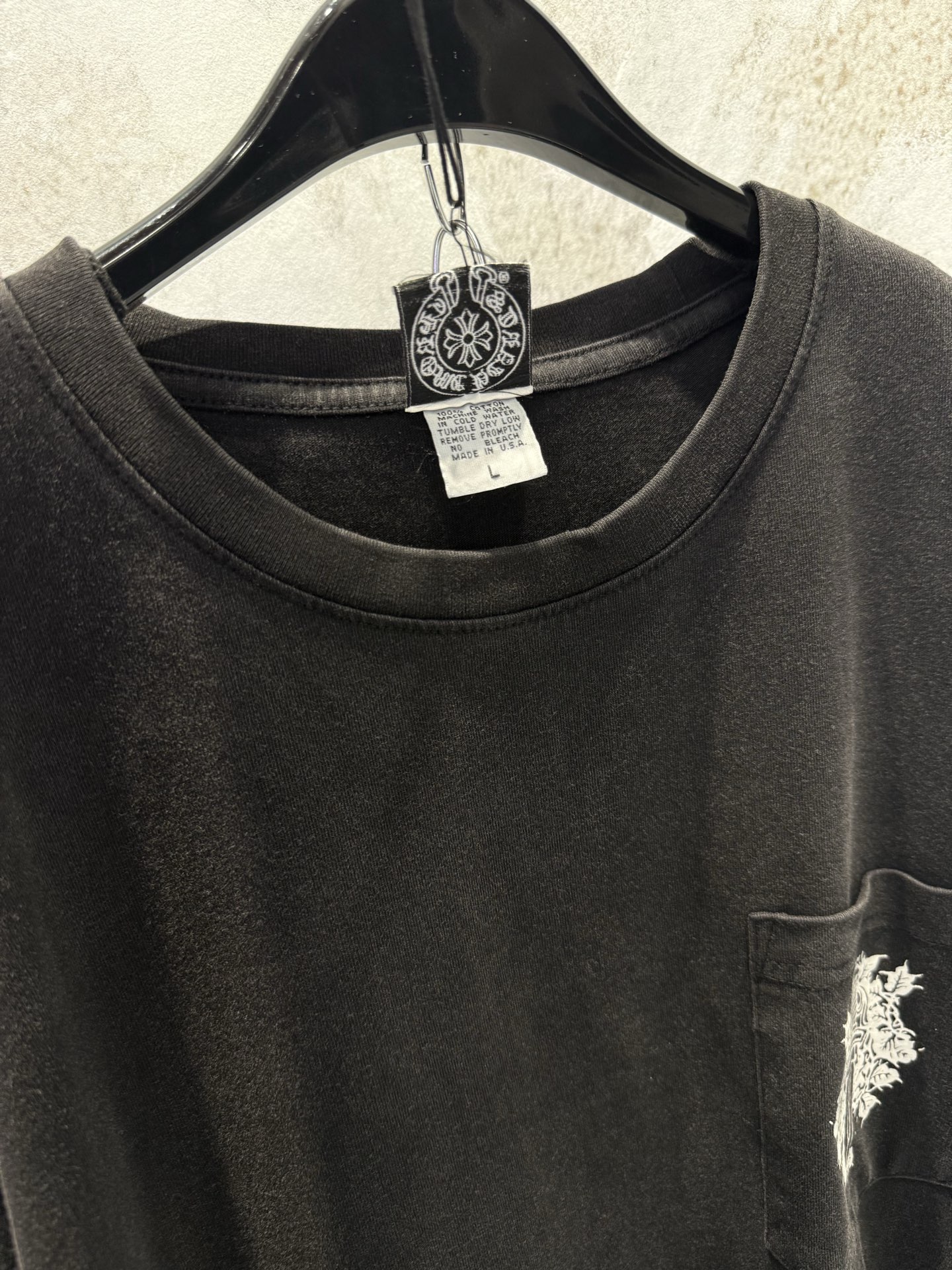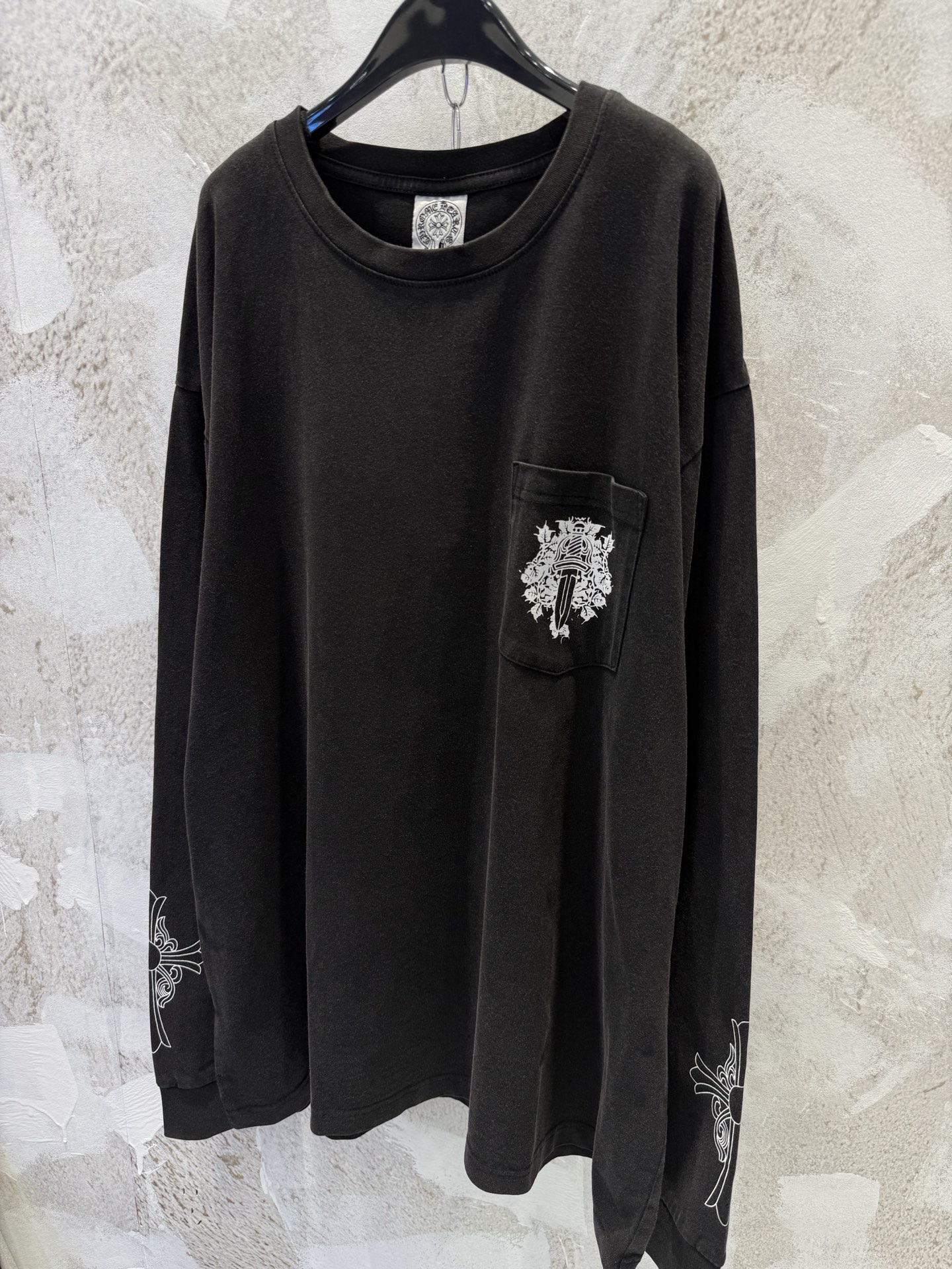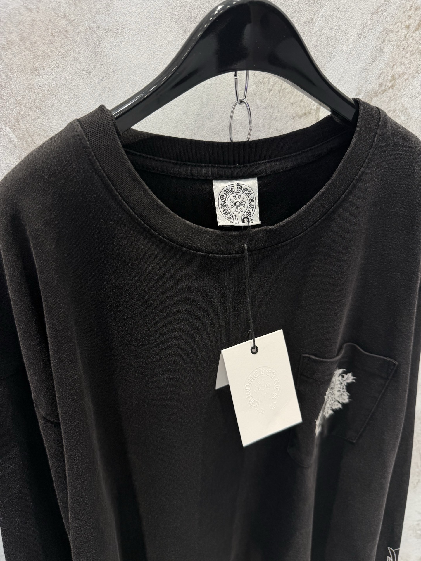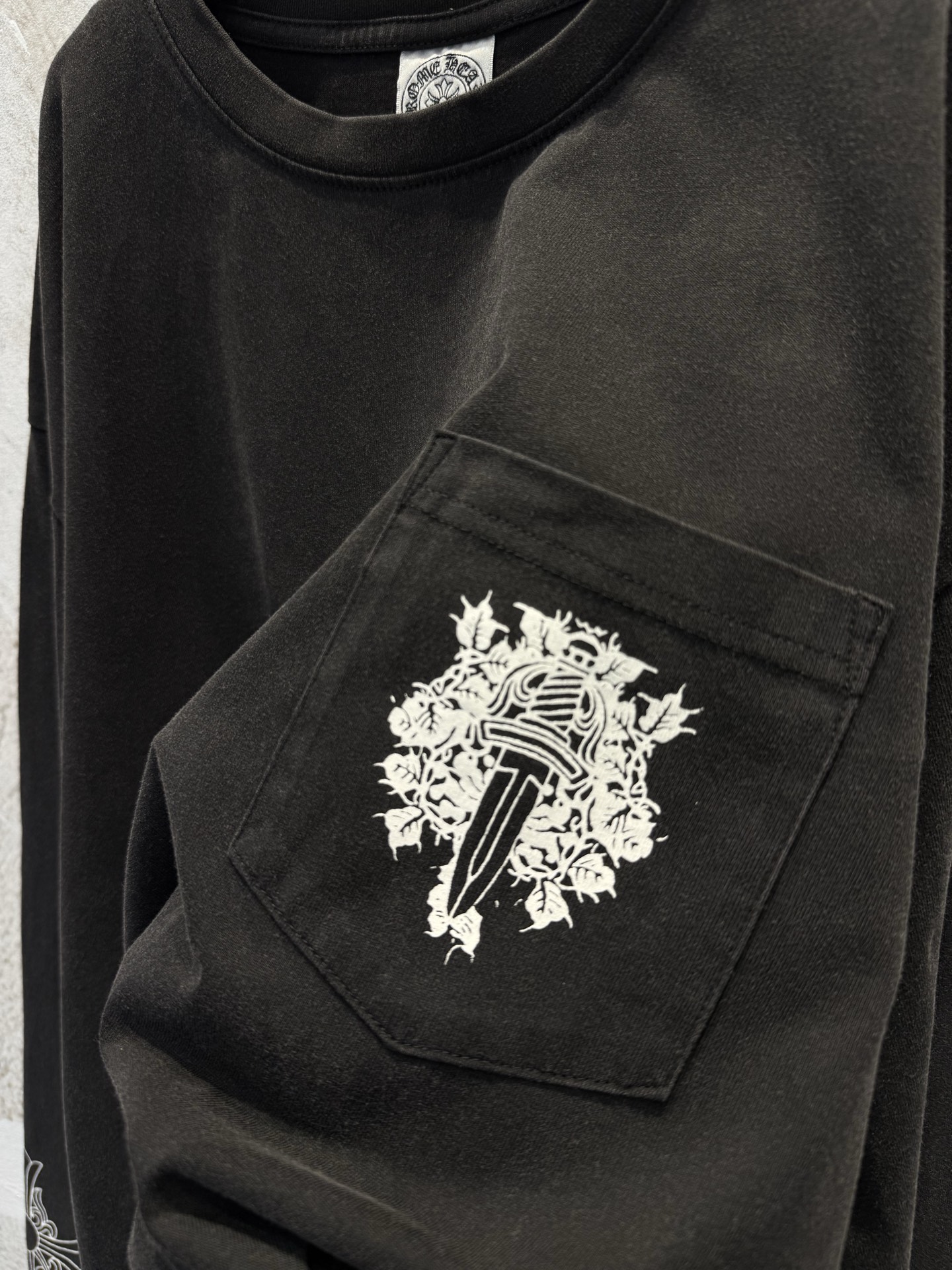 这款衣服是AAAAA 1:1 质量 (非常棒). 使用了和原版一模一样的材料. 商标部分也保持了和克罗心/Chrome Hearts一样. 图片拍摄是实物衣服拍摄, 您所收到的实物保证和我们图片一模一样.