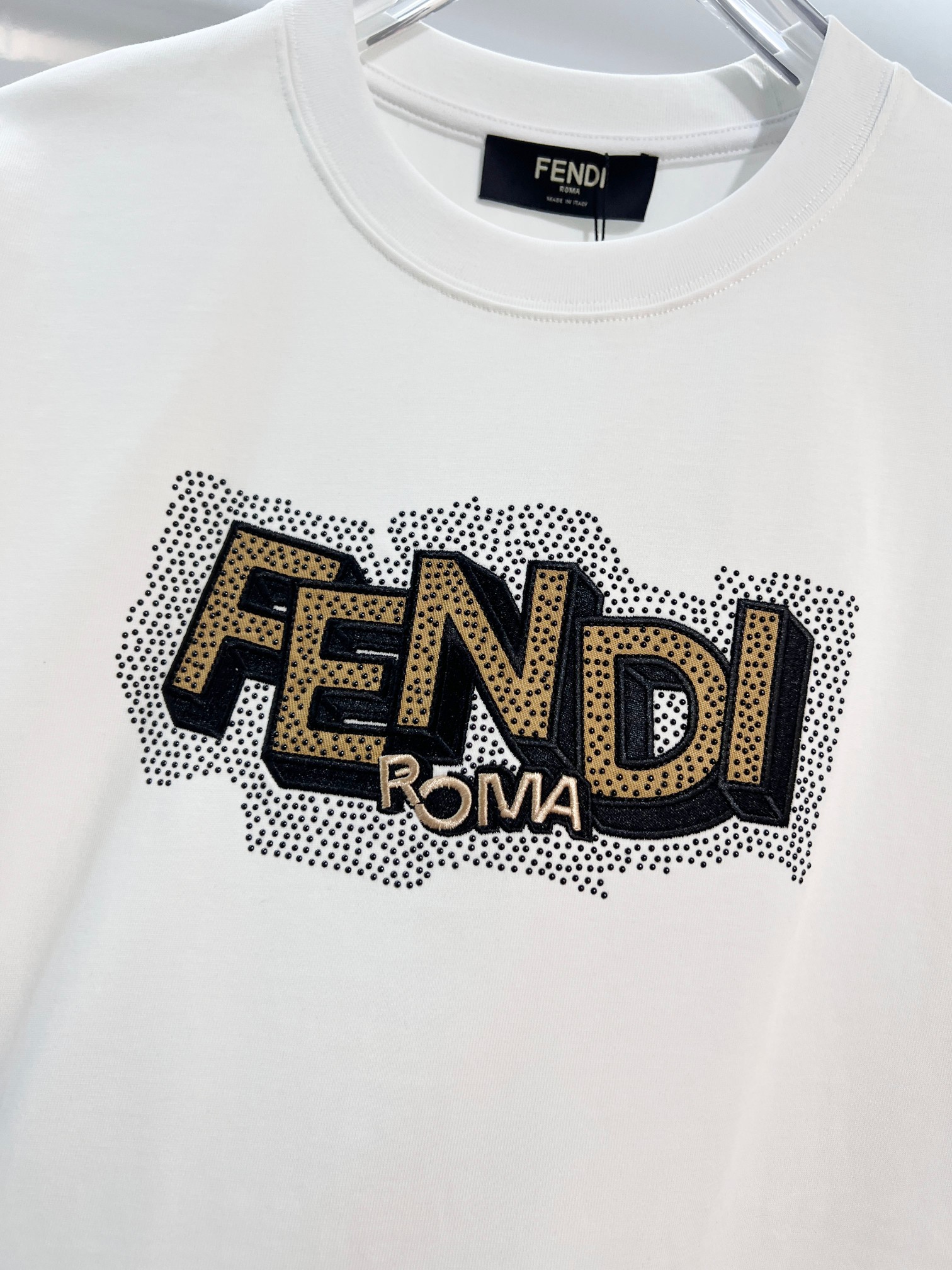 这款衣服是AAAAA 1:1 质量 (非常棒). 使用了和原版一模一样的材料. 商标部分也保持了和芬迪/Fendi一样. 图片拍摄是实物衣服拍摄, 您所收到的实物保证和我们图片一模一样.