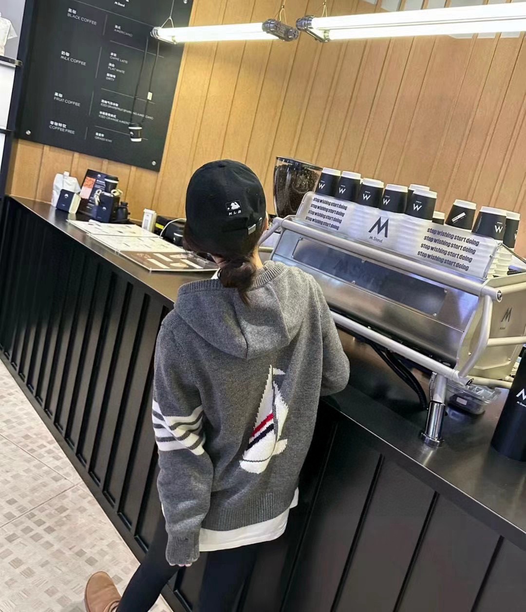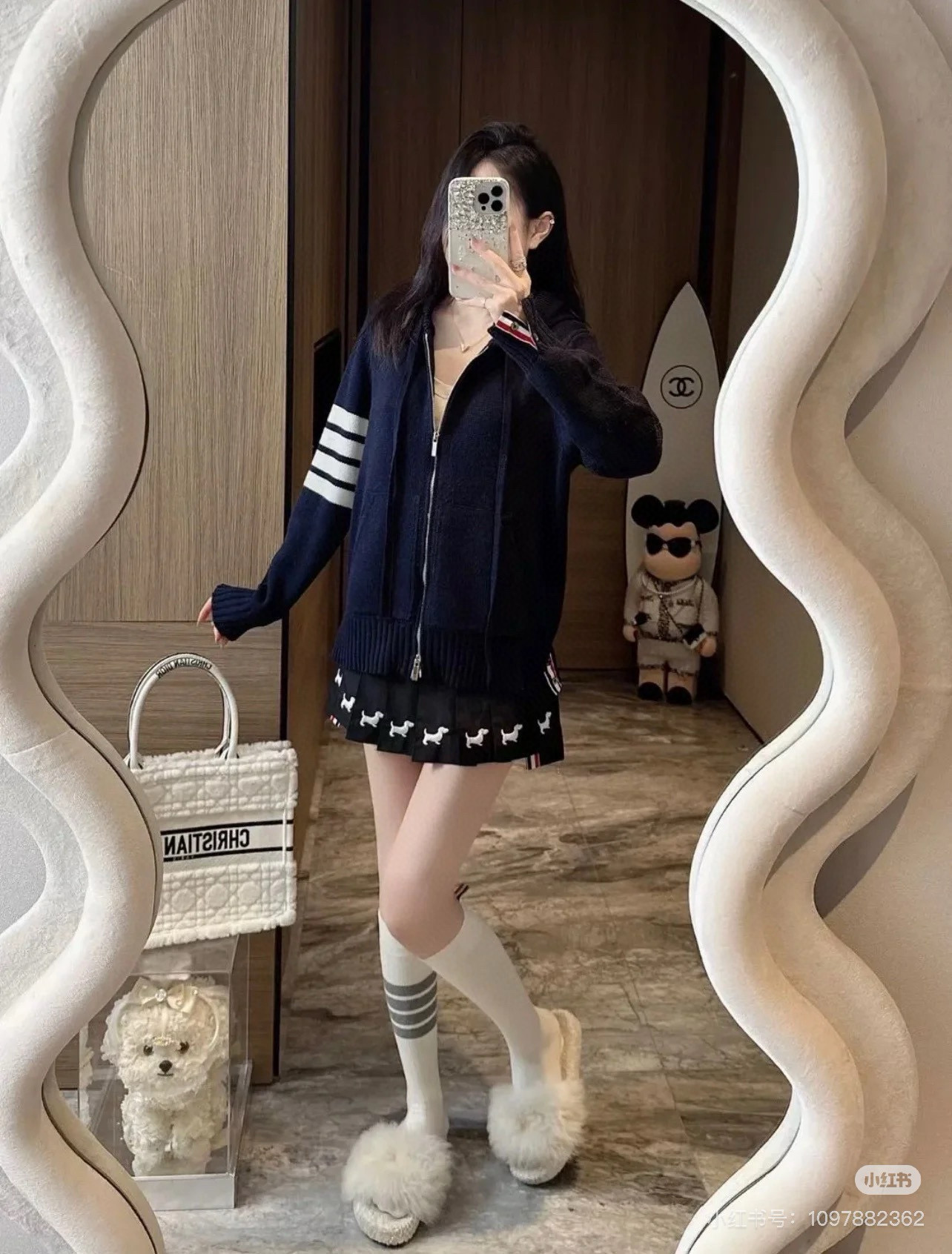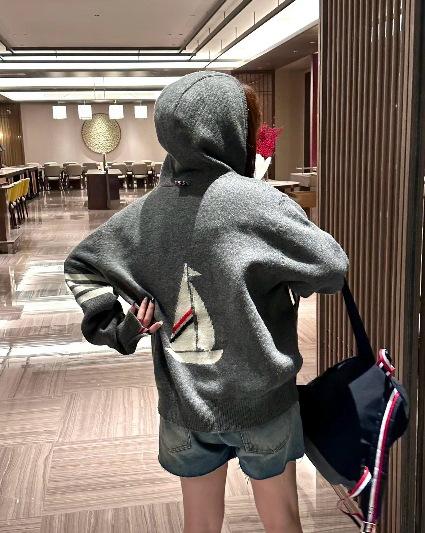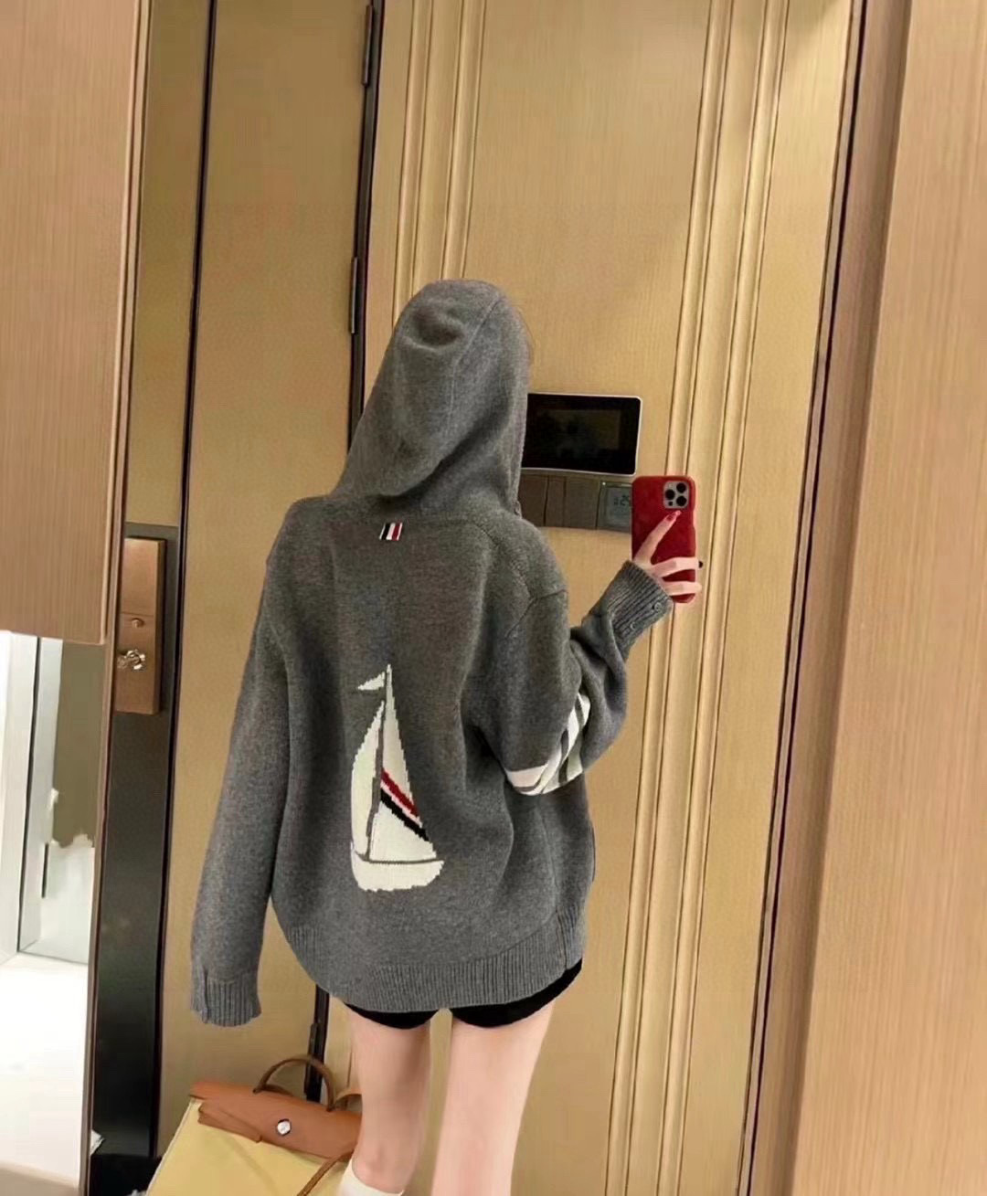 这款衣服是AAAAA 1:1 质量 (非常棒). 使用了和原版一模一样的材料. 商标部分也保持了和汤姆布朗/Thom Browne一样. 图片拍摄是实物衣服拍摄, 您所收到的实物保证和我们图片一模一样.