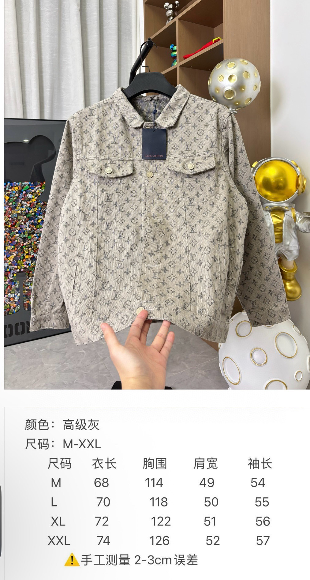 这款衣服是AAAAA 1:1 质量 (非常棒). 使用了和原版一模一样的材料. 商标部分也保持了和路易威登/Louis Vuitton一样. 图片拍摄是实物衣服拍摄, 您所收到的实物保证和我们图片一模一样.