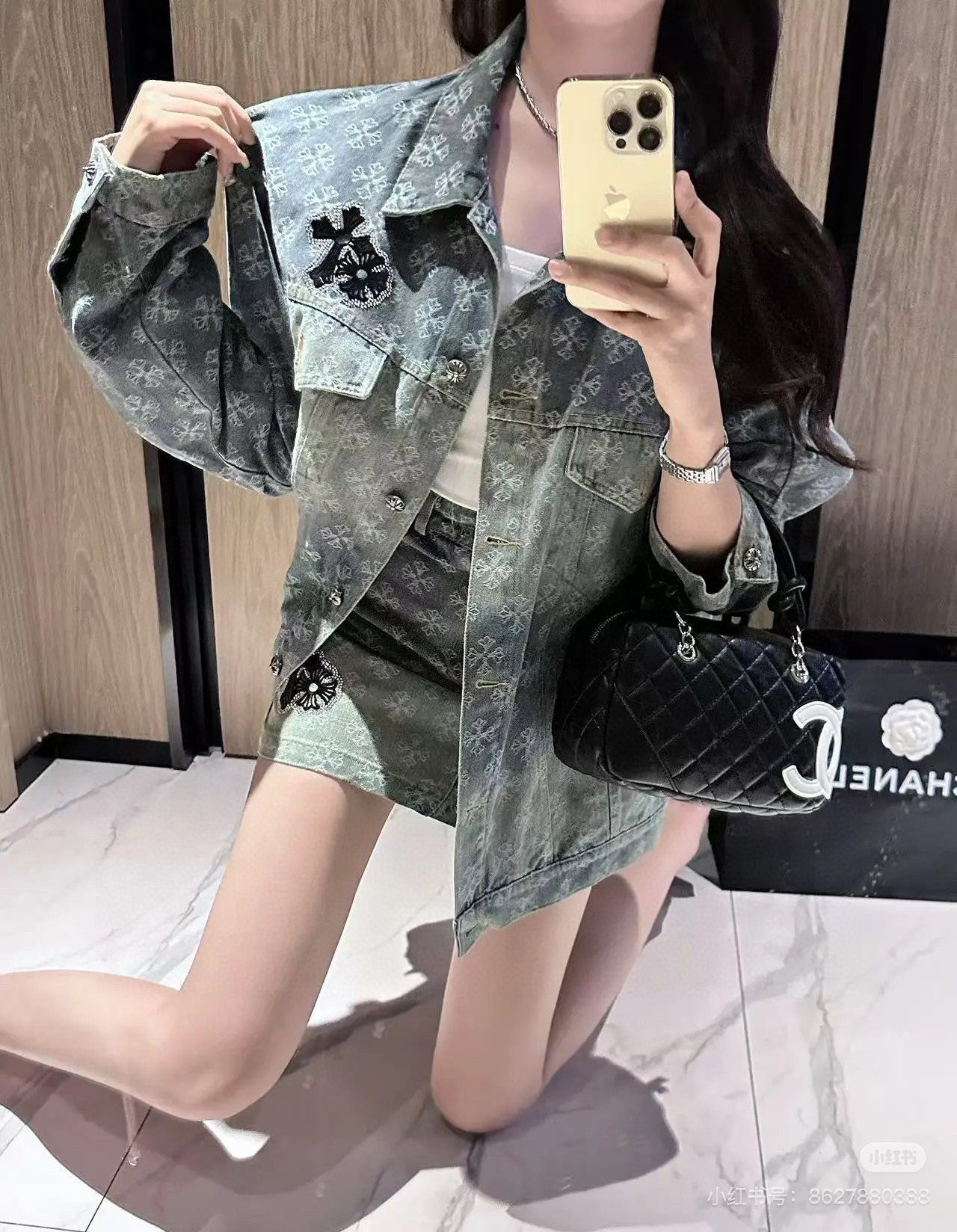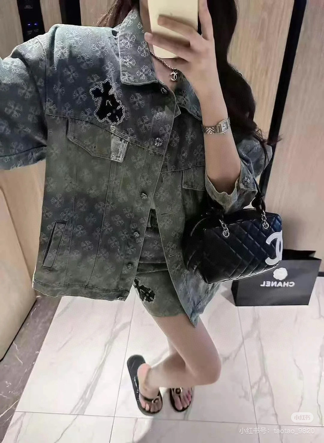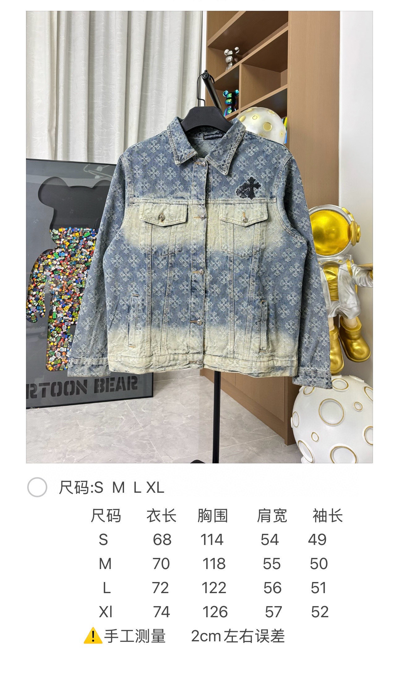 这款衣服是AAAAA 1:1 质量 (非常棒). 使用了和原版一模一样的材料. 商标部分也保持了和克罗心/Chrome Hearts一样. 图片拍摄是实物衣服拍摄, 您所收到的实物保证和我们图片一模一样.