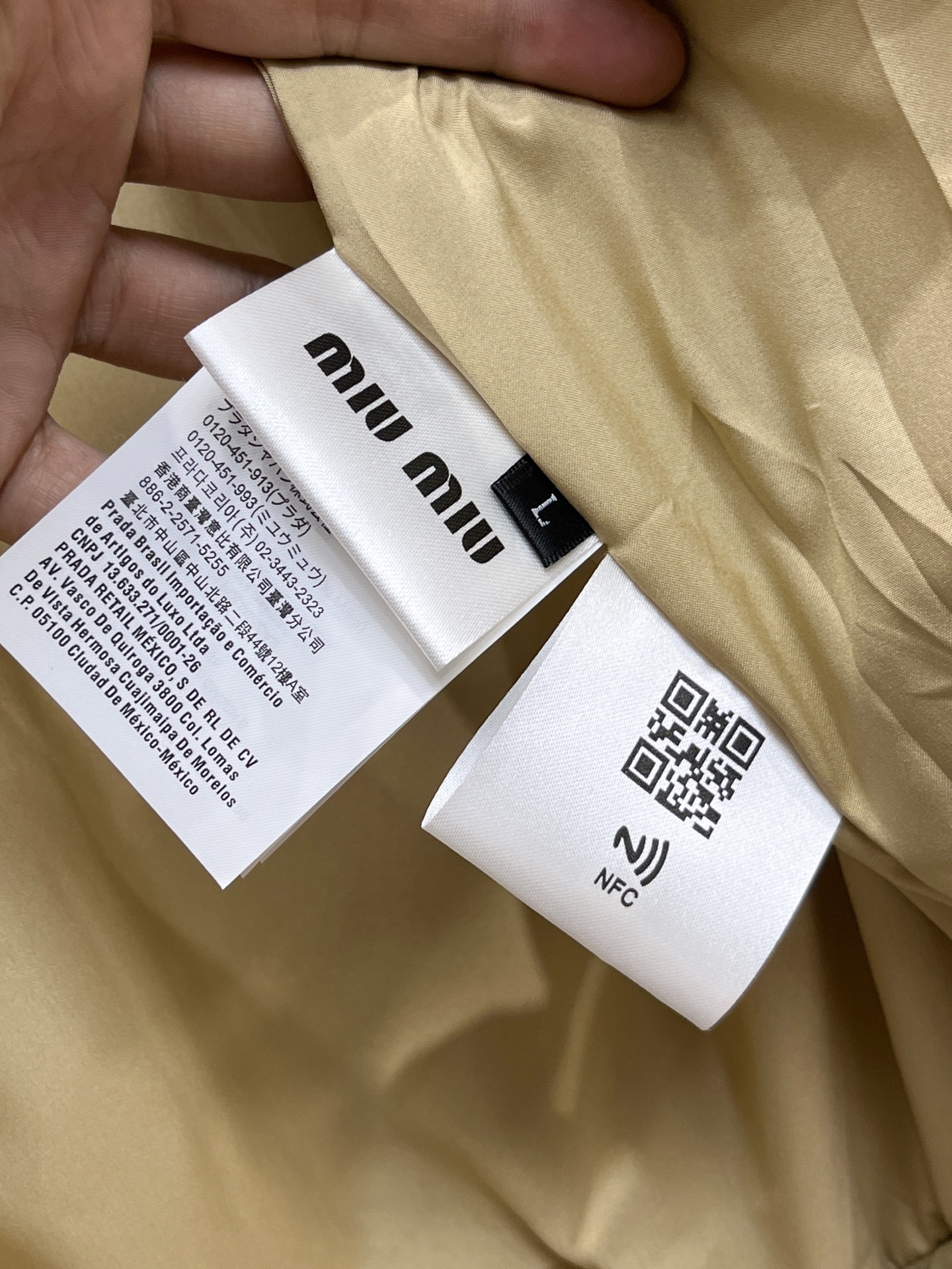 这款衣服是AAAAA 1:1 质量 (非常棒). 使用了和原版一模一样的材料. 商标部分也保持了和缪缪/Miu Miu一样. 图片拍摄是实物衣服拍摄, 您所收到的实物保证和我们图片一模一样.
