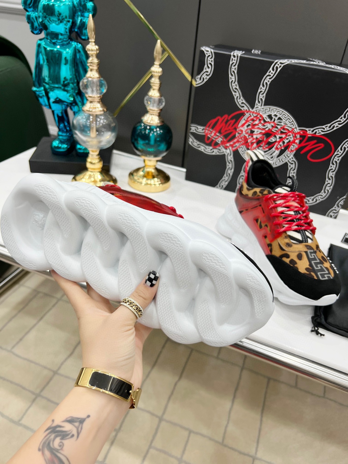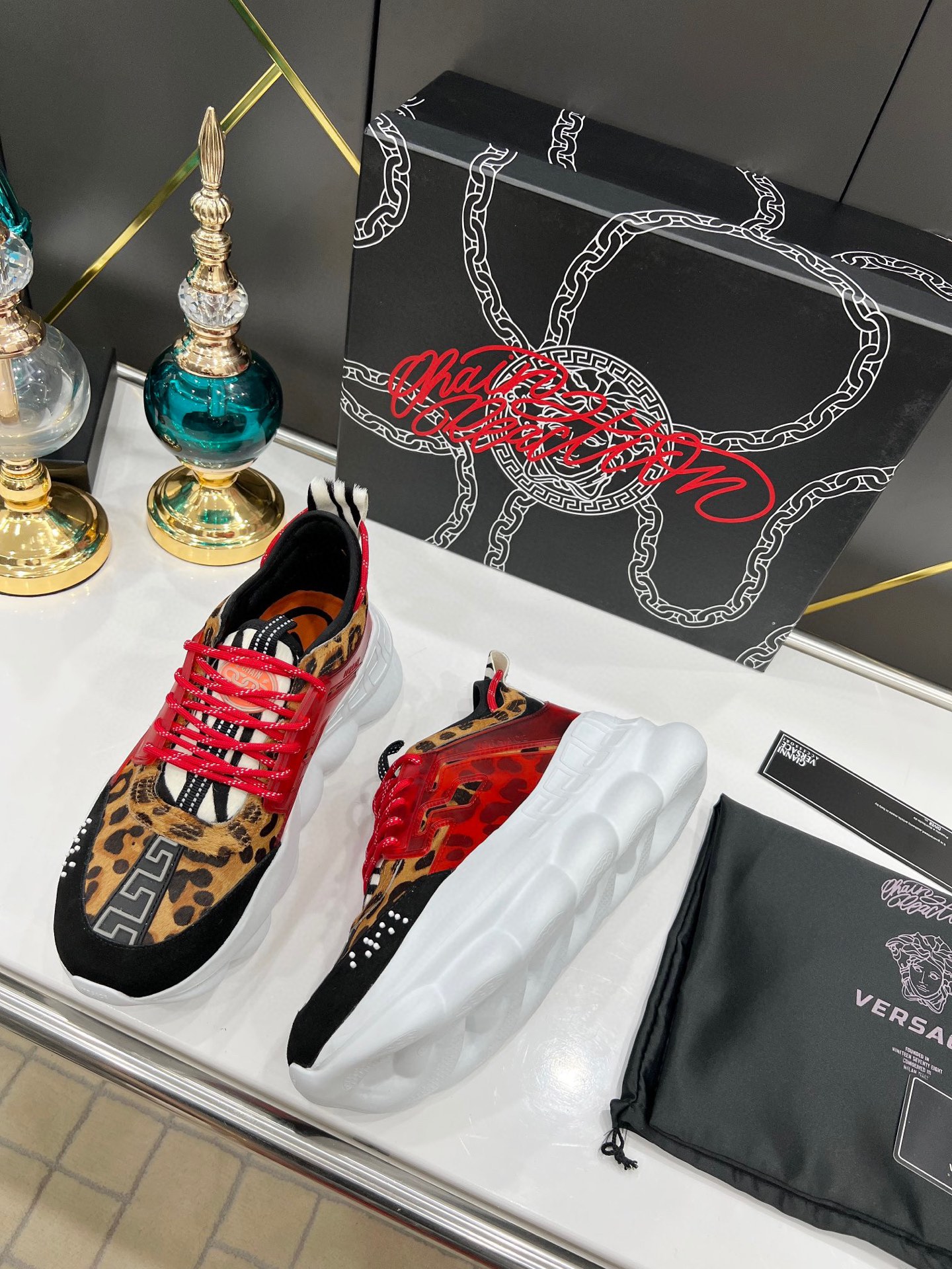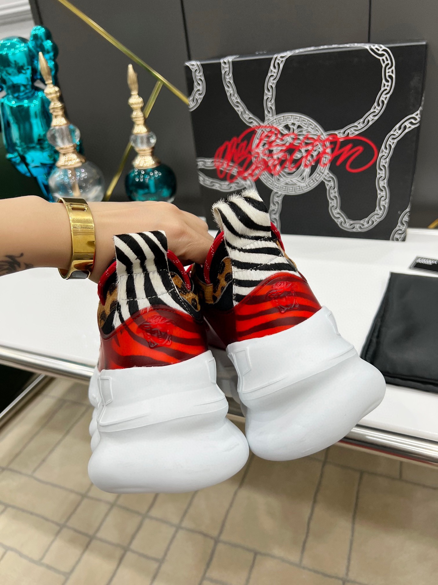 这款鞋子是AAAAA 1:1 质量 (非常棒). 使用了和原版一模一样的材料. 商标部分也保持了和范思哲/Versace一样. 图片拍摄是实物鞋子拍摄, 您所收到的实物保证和我们图片一模一样.