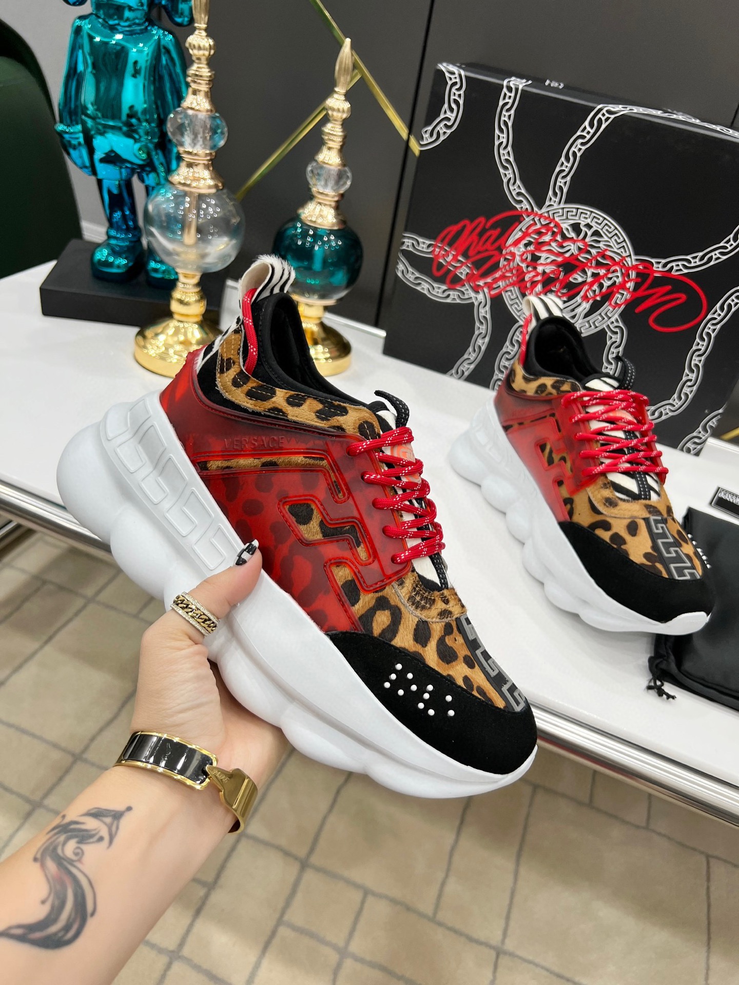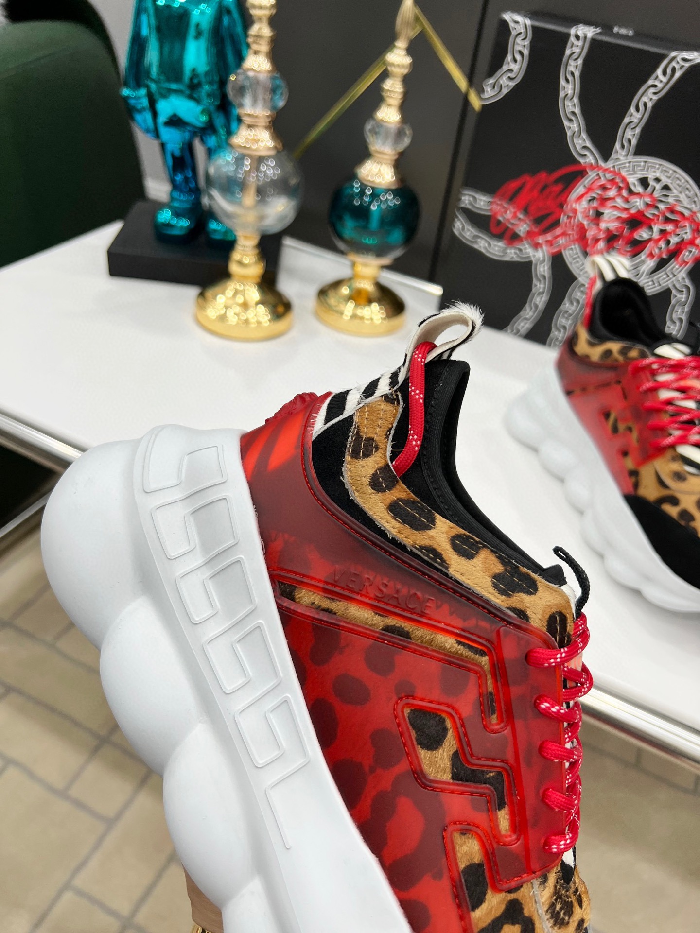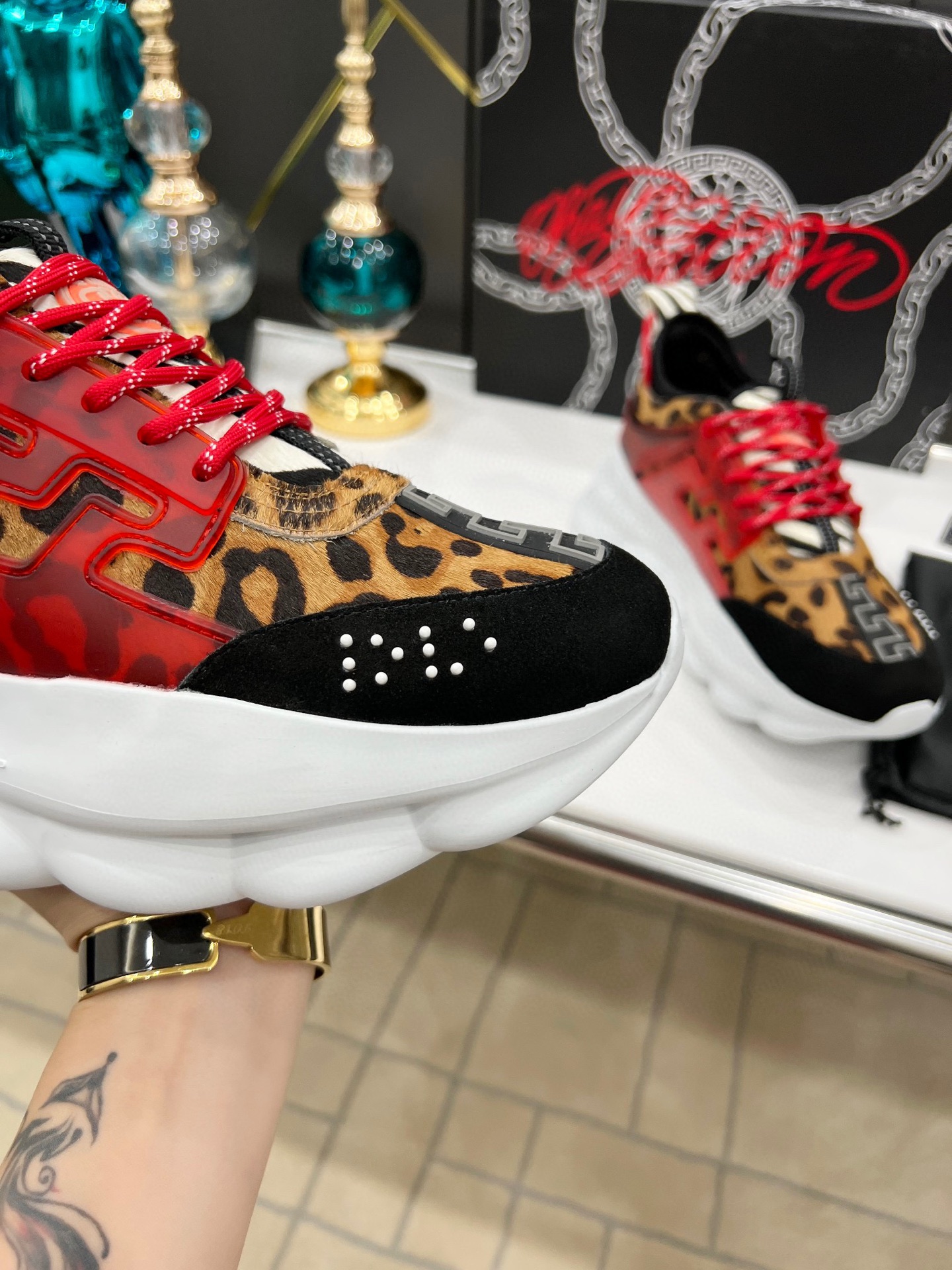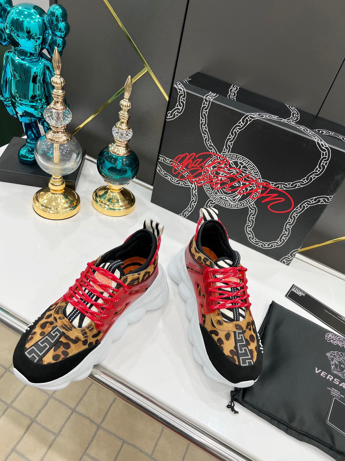 这款鞋子是AAAAA 1:1 质量 (非常棒). 使用了和原版一模一样的材料. 商标部分也保持了和范思哲/Versace一样. 图片拍摄是实物鞋子拍摄, 您所收到的实物保证和我们图片一模一样.