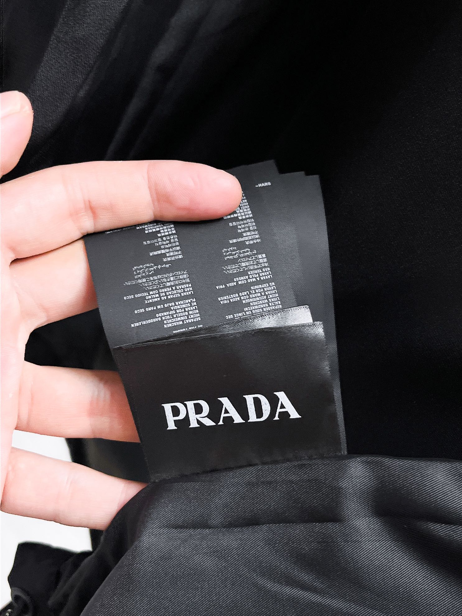 这款衣服是AAAAA 1:1 质量 (非常棒). 使用了和原版一模一样的材料. 商标部分也保持了和普拉达/Prada一样. 图片拍摄是实物衣服拍摄, 您所收到的实物保证和我们图片一模一样.