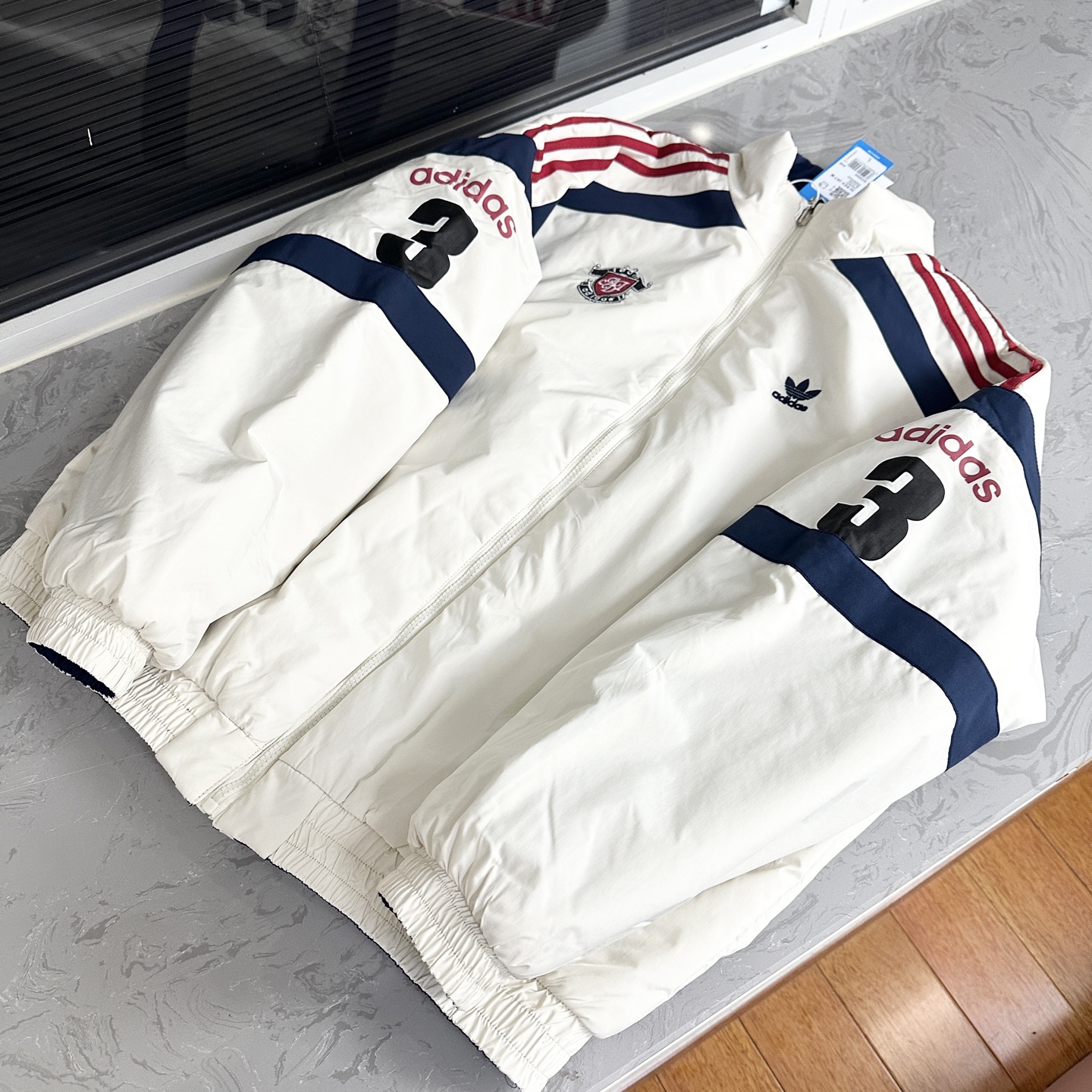 这款衣服是AAAAA 1:1 质量 (非常棒). 使用了和原版一模一样的材料. 商标部分也保持了和阿迪达斯/Adidas一样. 图片拍摄是实物衣服拍摄, 您所收到的实物保证和我们图片一模一样.