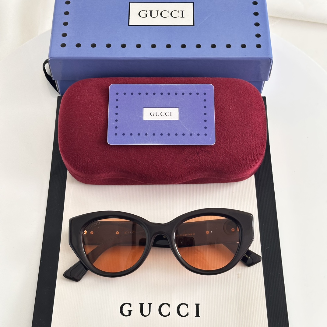 这款太阳眼镜是AAAAA 1:1 质量 (非常棒). 使用了和原版一模一样的材料. 商标部分也保持了和古奇/Gucci一样. 图片拍摄是实物太阳眼镜拍摄, 您所收到的实物保证和我们图片一模一样.
