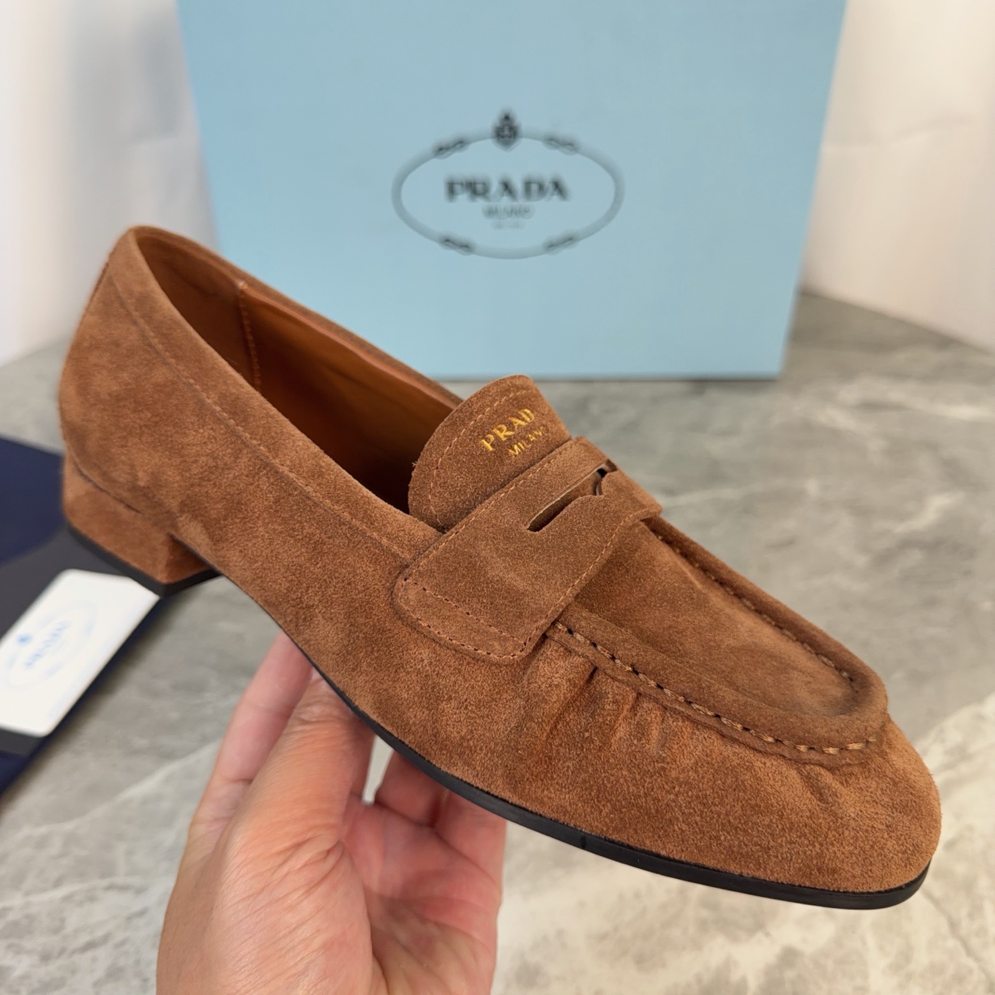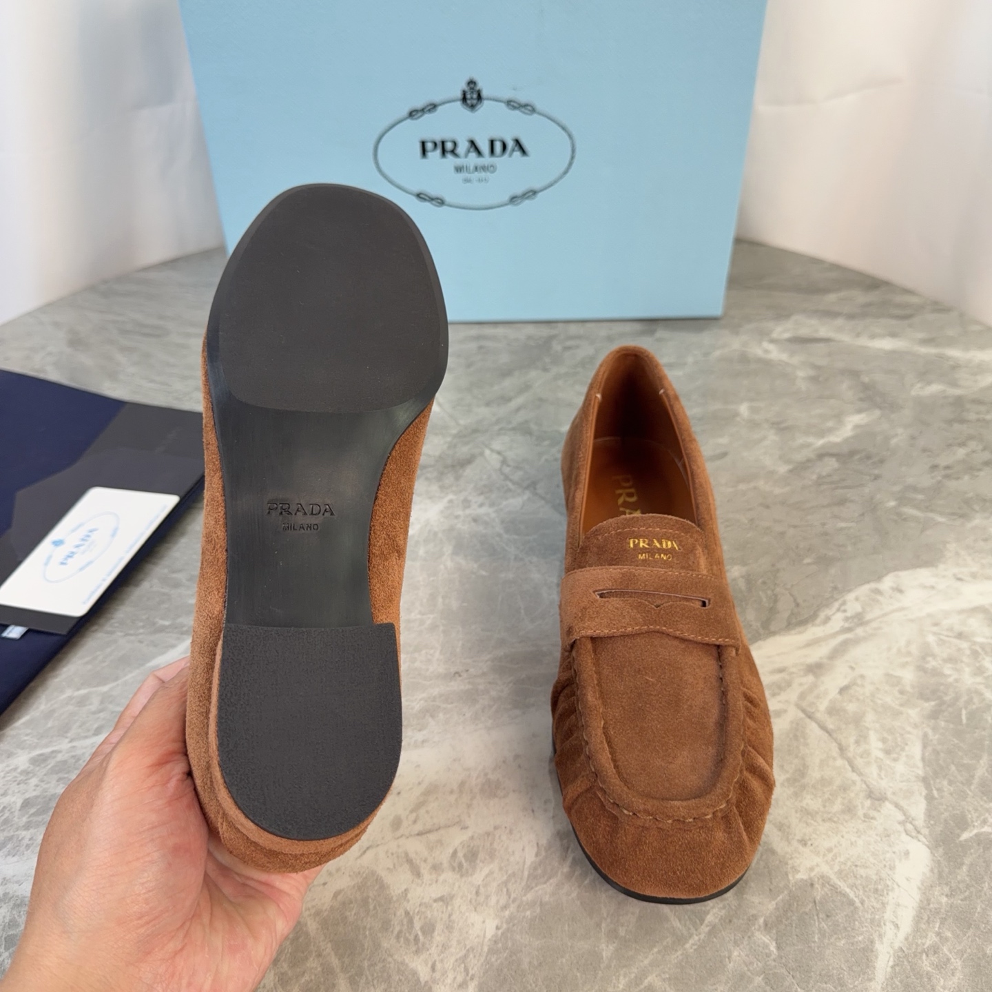 这款鞋子是AAAAA 1:1 质量 (非常棒). 使用了和原版一模一样的材料. 商标部分也保持了和普拉达/Prada一样. 图片拍摄是实物鞋子拍摄, 您所收到的实物保证和我们图片一模一样.