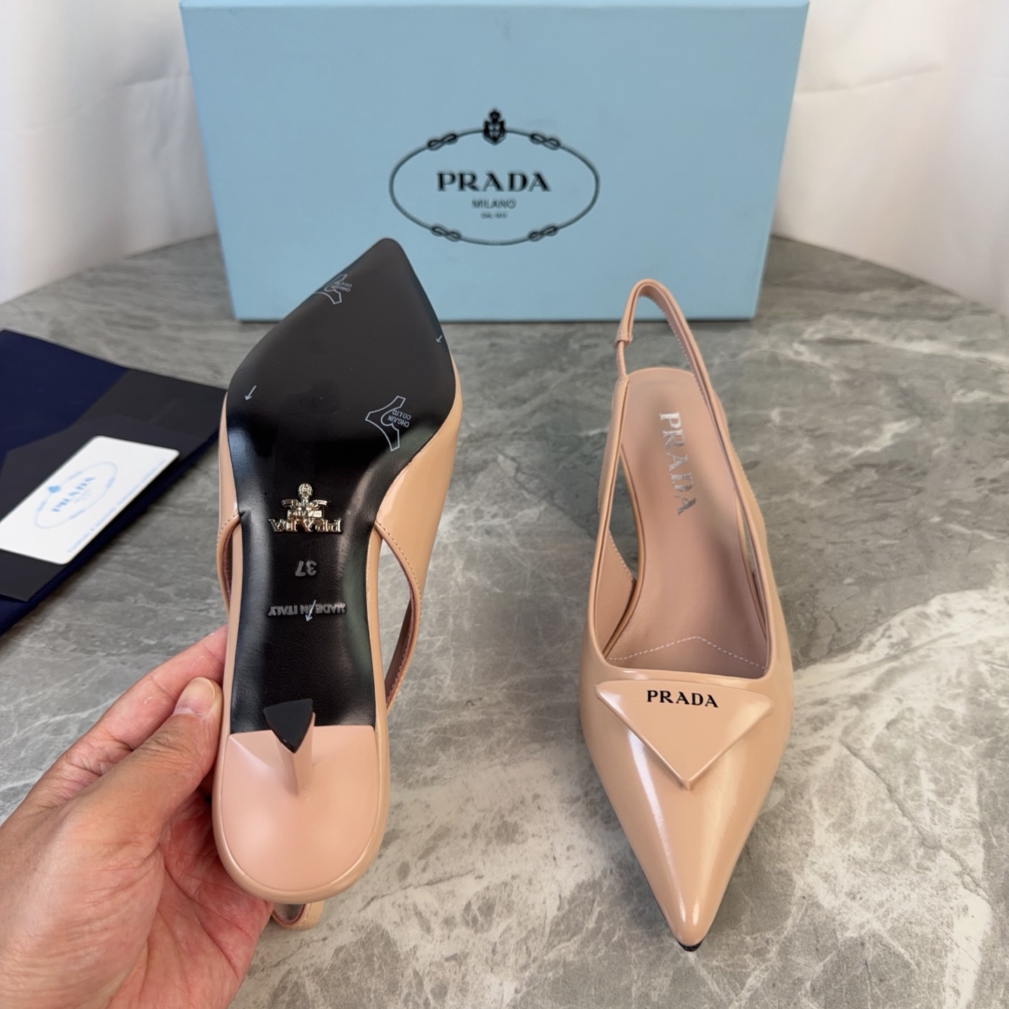 这款鞋子是AAAAA 1:1 质量 (非常棒). 使用了和原版一模一样的材料. 商标部分也保持了和普拉达/Prada一样. 图片拍摄是实物鞋子拍摄, 您所收到的实物保证和我们图片一模一样.