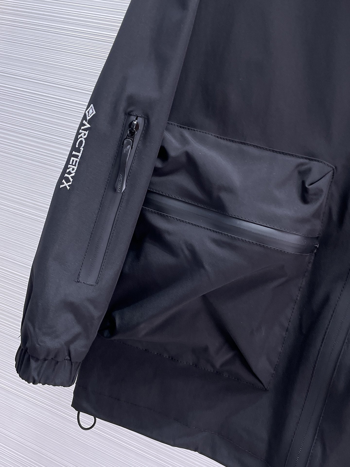 这款衣服是AAAAA 1:1 质量 (非常棒). 使用了和原版一模一样的材料. 商标部分也保持了和ARC'TERYX一样. 图片拍摄是实物衣服拍摄, 您所收到的实物保证和我们图片一模一样.