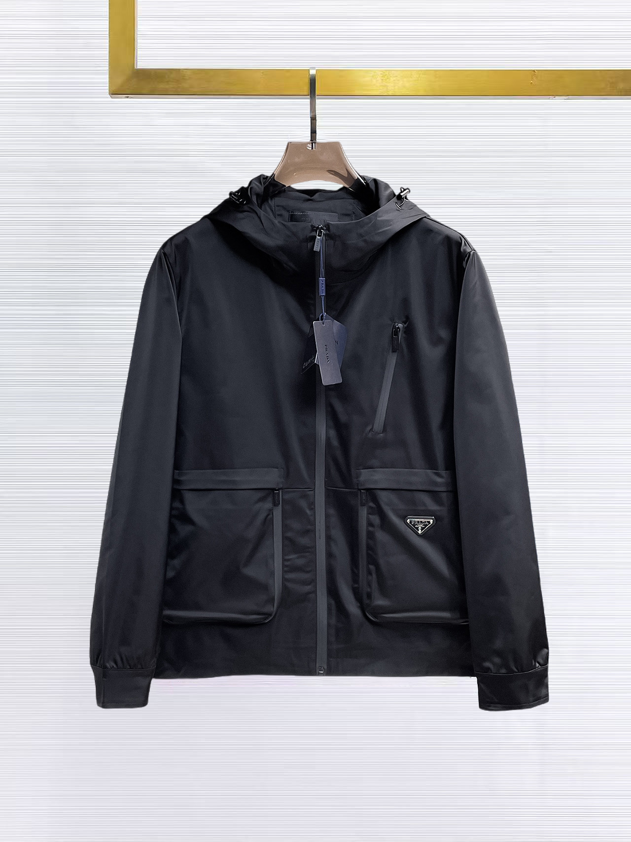 这款衣服是AAAAA 1:1 质量 (非常棒). 使用了和原版一模一样的材料. 商标部分也保持了和普拉达/Prada一样. 图片拍摄是实物衣服拍摄, 您所收到的实物保证和我们图片一模一样.