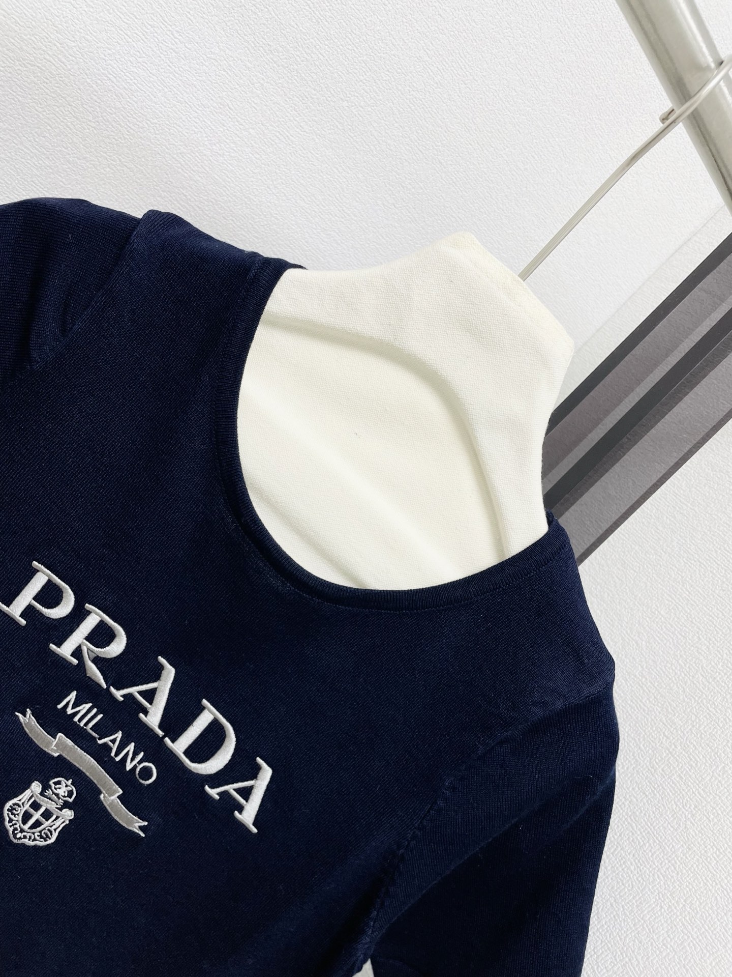 这款衣服是AAAAA 1:1 质量 (非常棒). 使用了和原版一模一样的材料. 商标部分也保持了和普拉达/Prada一样. 图片拍摄是实物衣服拍摄, 您所收到的实物保证和我们图片一模一样.
