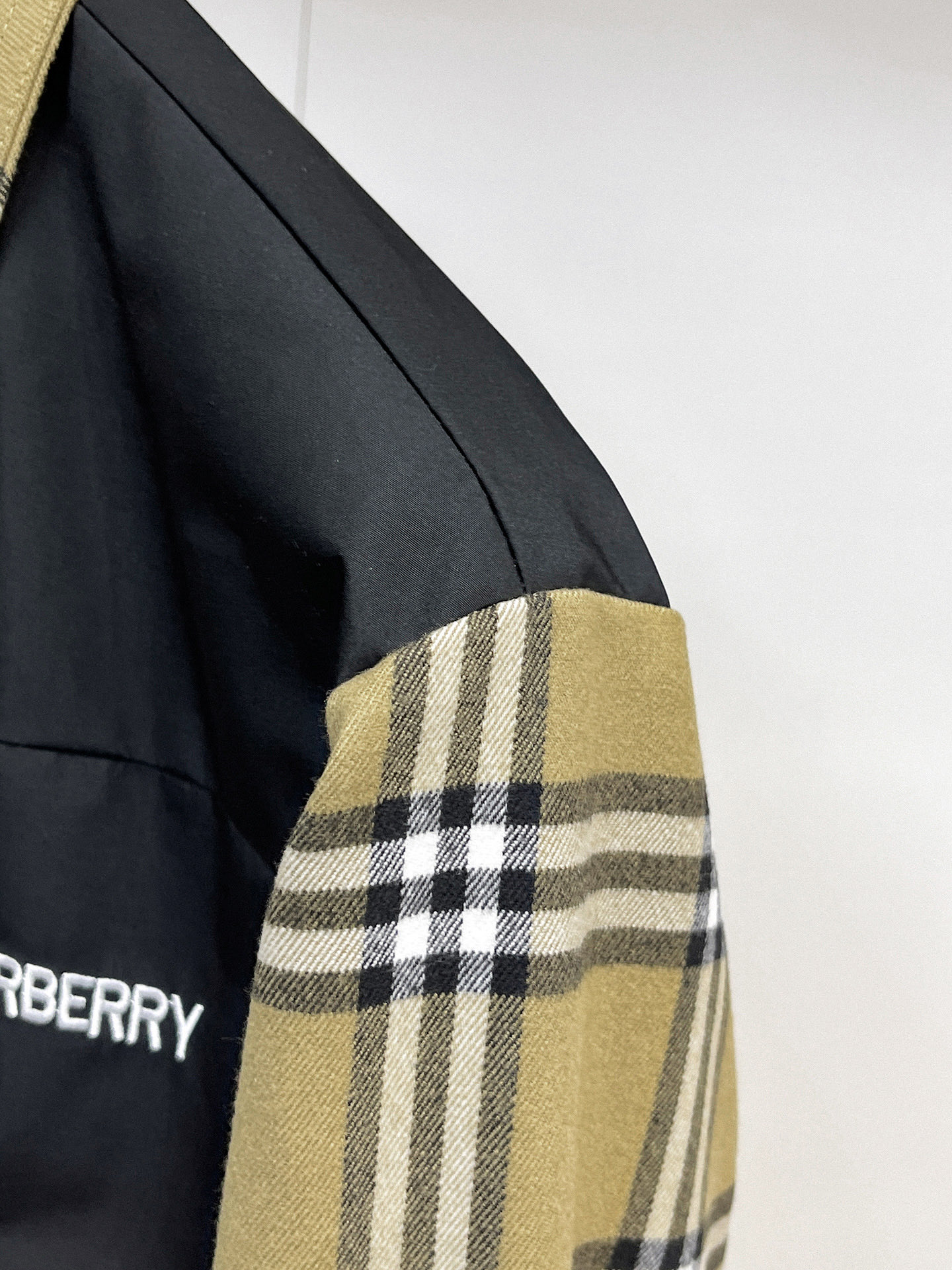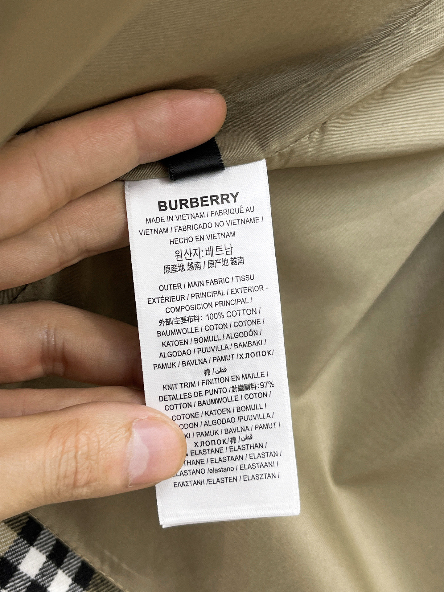 这款衣服是AAAAA 1:1 质量 (非常棒). 使用了和原版一模一样的材料. 商标部分也保持了和巴宝莉/Burberry一样. 图片拍摄是实物衣服拍摄, 您所收到的实物保证和我们图片一模一样.